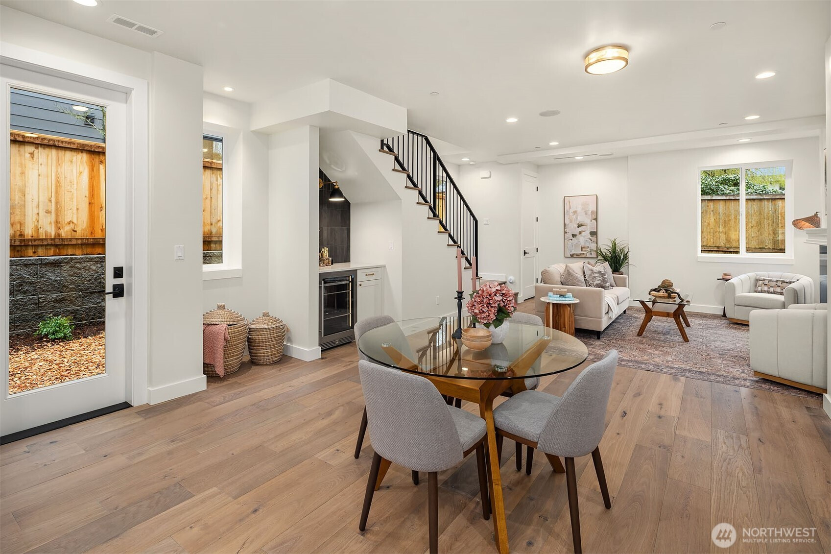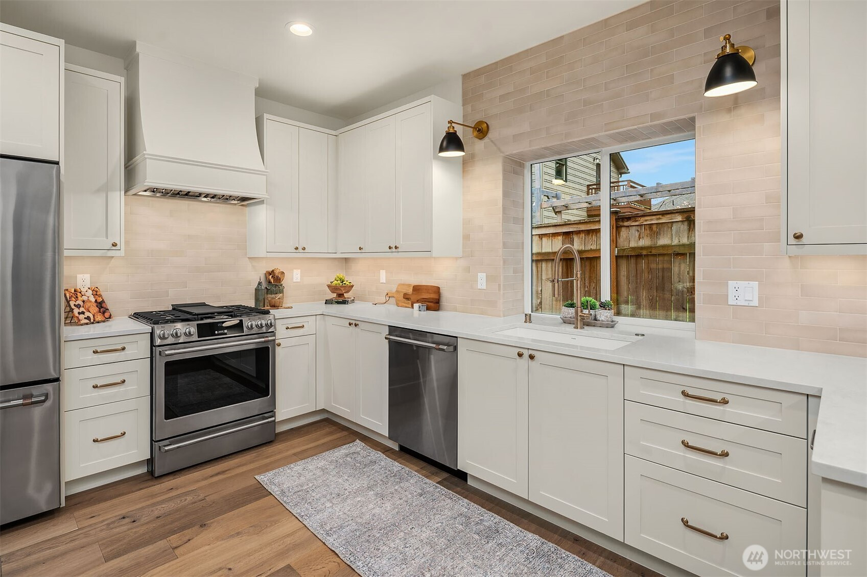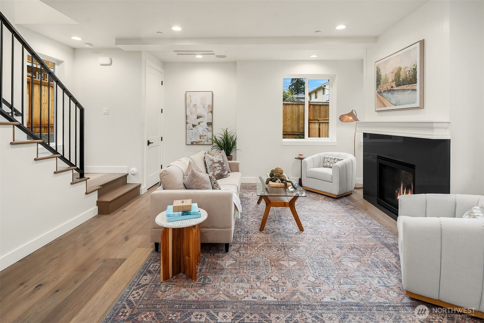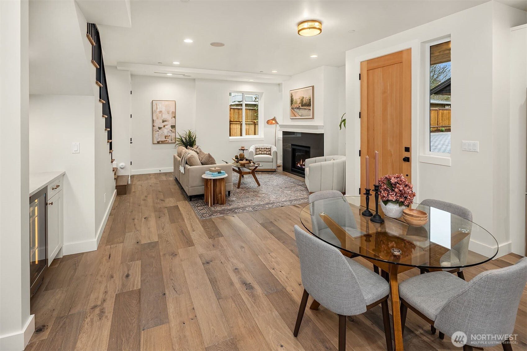 New construction by Granger and Company, this charming Kirkland cottage offers thoughtful design in a peaceful neighborhood setting. The bright, open main floor features a cozy fireplace and an inviting layout ideal for everyday living and entertaining. A custom kitchen provides ample space for a dining table and chairs, while the conveniently located powder room sits just off the backyard. Step outside to a rare, fully fenced yard—perfect for relaxing with a pair of chaise lounges or giving your pup room to roam. Upstairs, you’ll find two bedrooms and two bathrooms, including a serene primary suite. The primary bath showcases a romantic arched shower with beautiful tilework, and a private deck off the suite offers a pleasant retreat for morning coffee or evening unwinding. The home also features an easy, flat driveway with two generous parking spaces—an added convenience that’s hard to find. Situated in Kirkland’s desirable Highlands neighborhood, this home is surrounded by peaceful, well-kept streets, lush green spaces, and excellent schools. Enjoy quick access to the waterfront, dining, and shopping in Downtown Kirkland. A wonderful opportunity to own a beautifully crafted new home in a sought-after location.