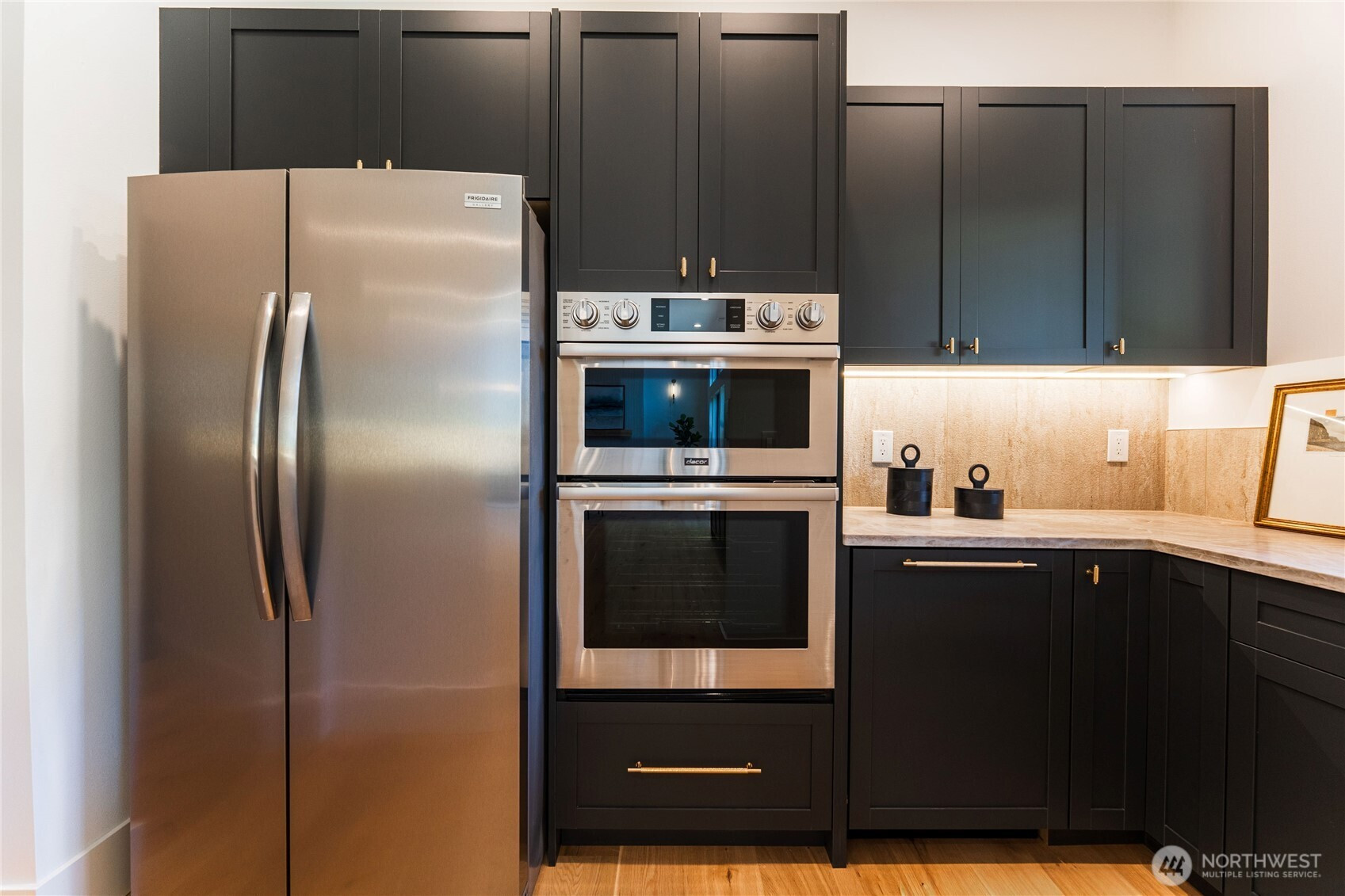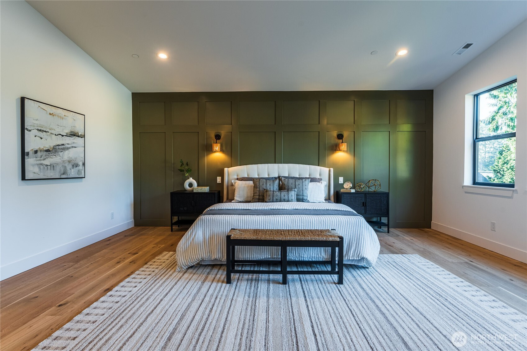Welcome to a stunning contemporary masterpiece in South Juanita where design meets functionality. You are greeted by dramatic, two-story volume ceilings in the great room, creating an airy ambiance that begs for gatherings. The culinary center is a showstopper, boasting Dacor appliances and natural quartzite Taj Mahal, supported by a convenient second working kitchen to keep your main space pristine while hosting. Step through sliding glass doors to your private outdoor sanctuary, featuring a covered patio with infrared heaters that allow for alfresco dining in any season. Upstairs, the primary suite serves as a spa-like escape with a deep soaking tub, massive shower and heated floor. With a coveted main-floor guest suite, solar panels, metal roof, and a location within the acclaimed Lake Washington School District, this home offers an uncompromising lifestyle of modern elegance.