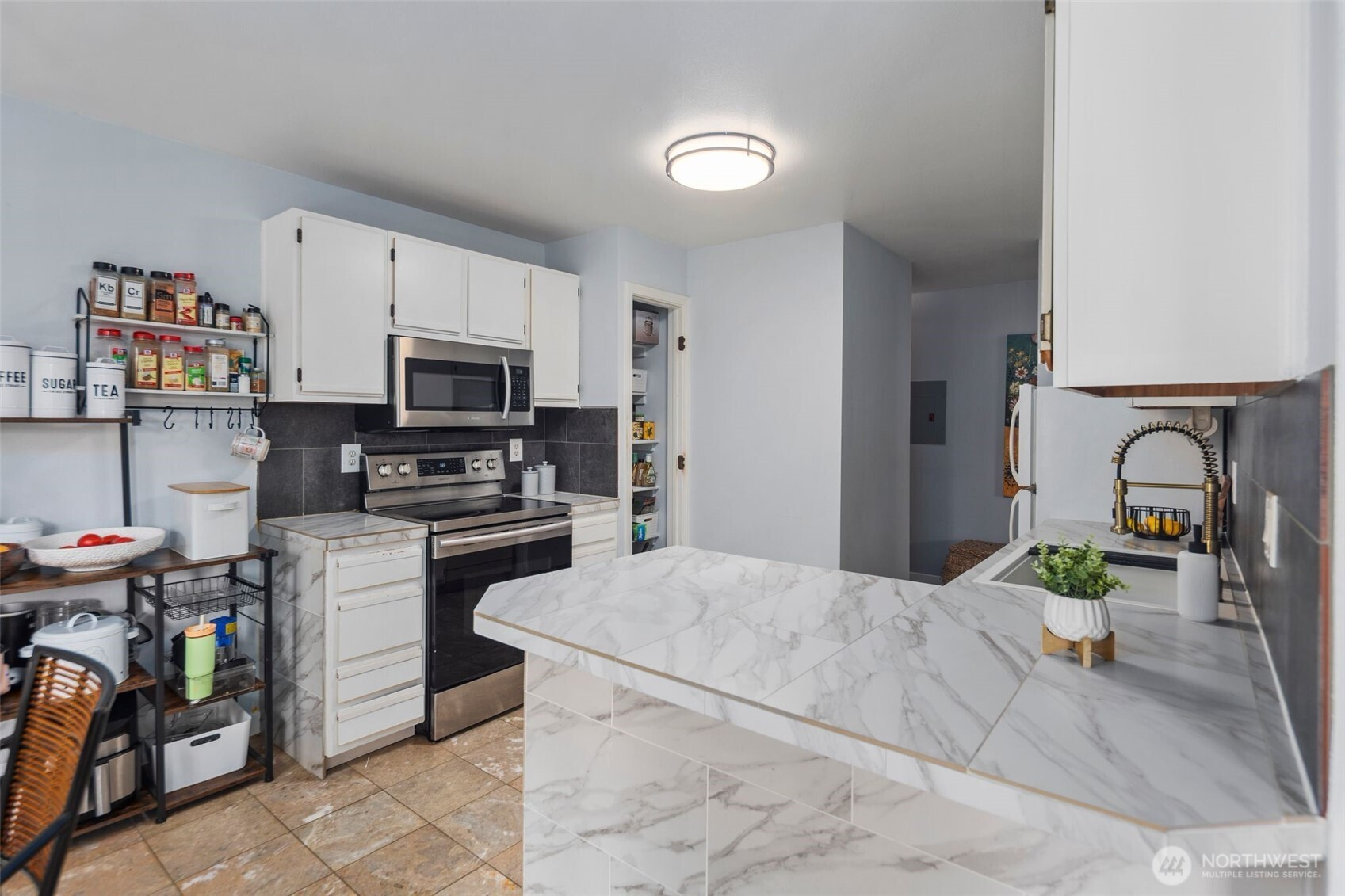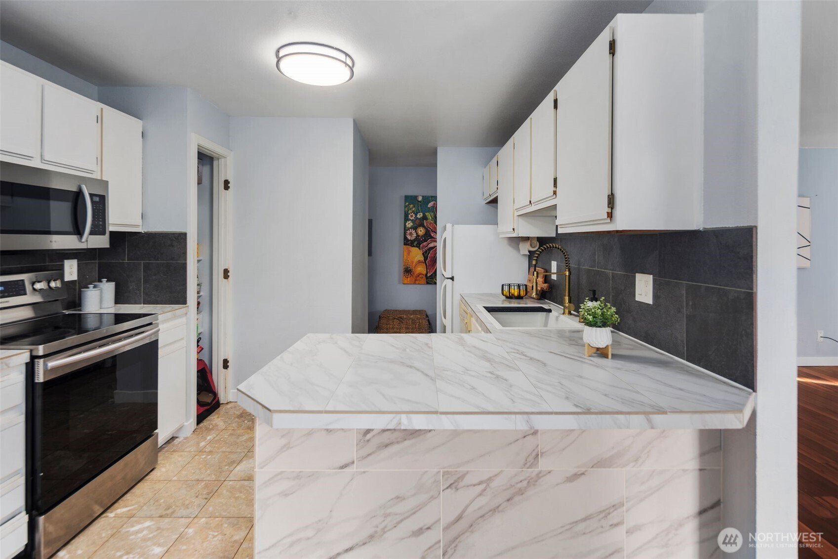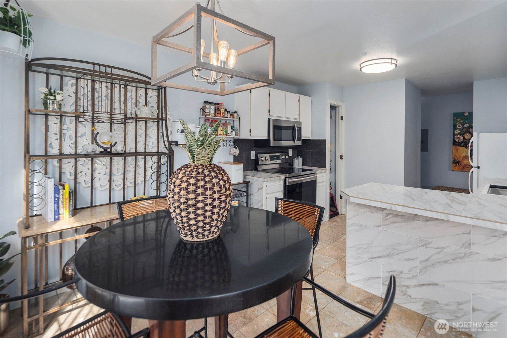 Captivating 1-level condo w/abundant natural light nestled in the heart of desirable Juanita. No Rental Cap! The floor plan boasts an open layout w/bright & airy atmosphere. new LVP flooring throughout + baseboard molding! kitchen features newer ss cooking range, microwave, tile flooring, plenty of storage in cabinets, convenient pantry & breakfast bar. in-unit washer & dryer! Renovated Bathrooms! primary bedroom w/ ensuite bathroom & walk-in closet. Large 2nd bedroom w/spacious closet. Step outside onto the expansive deck leading to lush green grounds, serene views & beautiful sunsets. well run HOA! short walk to Juanita Beach/Juanita Village & Bay Parks! easy access to I-405, beaches, restaurants, shopping, library, Google, DT Kirkland. assigned carport + extra evening parking