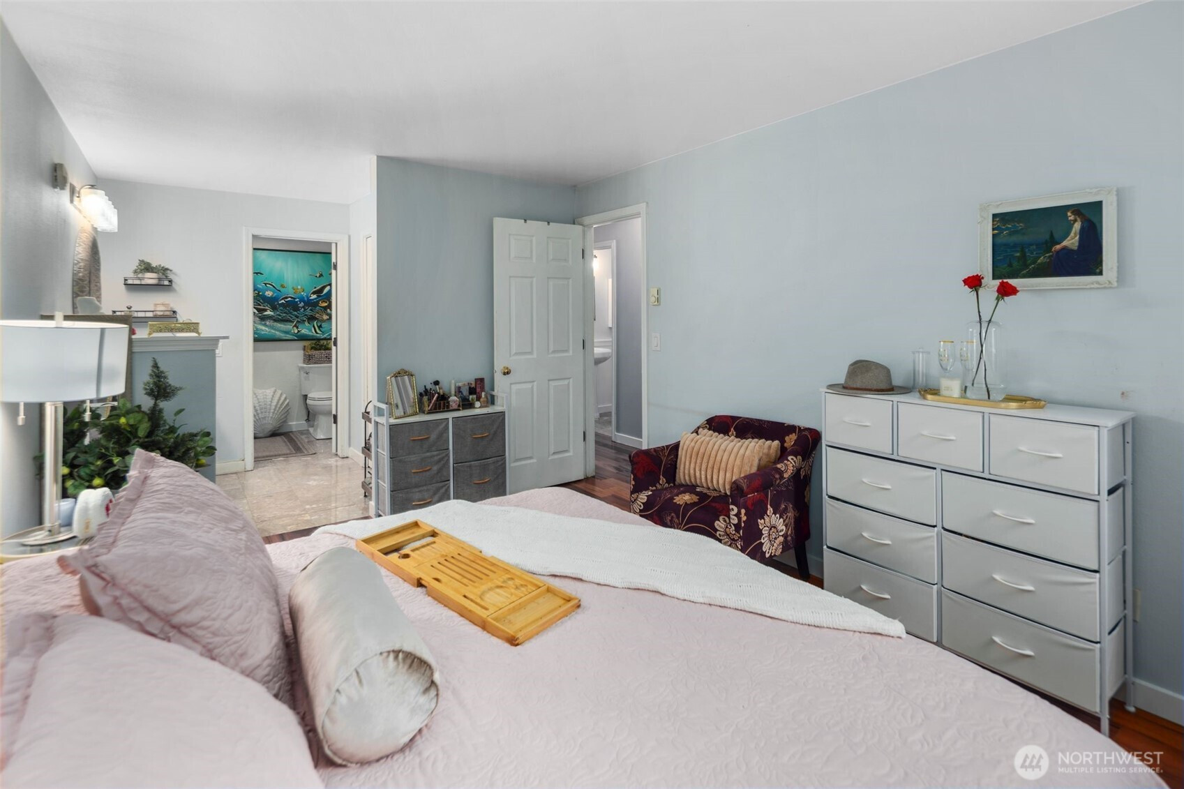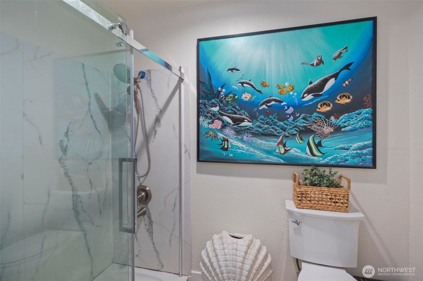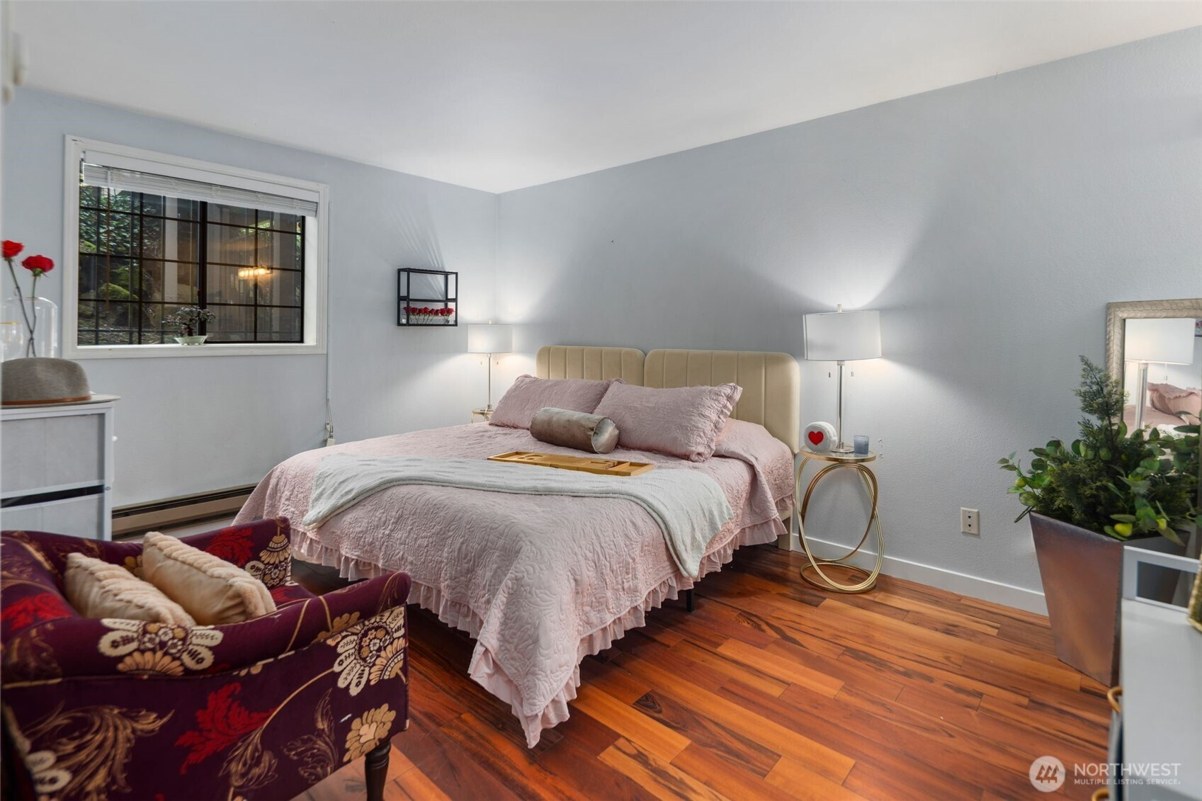 Captivating 1-level condo w/abundant natural light nestled in the heart of desirable Juanita. No Rental Cap! The floor plan boasts an open layout w/bright & airy atmosphere. new LVP flooring throughout + baseboard molding! kitchen features newer ss cooking range, microwave, tile flooring, plenty of storage in cabinets, convenient pantry & breakfast bar. in-unit washer & dryer! Renovated Bathrooms! primary bedroom w/ ensuite bathroom & walk-in closet. Large 2nd bedroom w/spacious closet. Step outside onto the expansive deck leading to lush green grounds, serene views & beautiful sunsets. well run HOA! short walk to Juanita Beach/Juanita Village & Bay Parks! easy access to I-405, beaches, restaurants, shopping, library, Google, DT Kirkland. assigned carport + extra evening parking