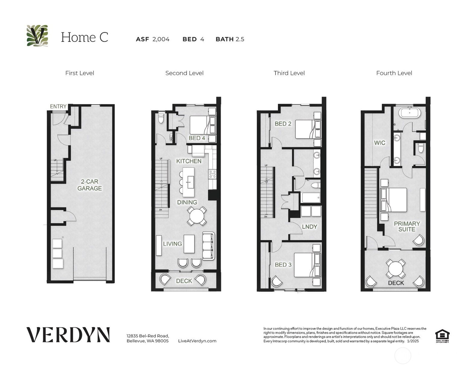 Ask about seller funded 3.5% mortgage rate* Your elevated respite awaits at Verdyn Townhomes. Conveniently located in East Bellevue, just a short walk to the BelRed light rail station and easy freeway access. Bellevue Schools. This new construction home offers contemporary architecture with thoughtfully designed floor plans. This extraordinary home features 4BRs, 2.5BAs, a gourmet kitchen with quartz countertops, stainless appliances, modern cabinetry, and a seated island. Luxurious primary suite features a vaulted ceiling, spacious walk-in closet, dual vanity, free standing soaking tub, tile shower, and decorative tile accents. Top floor deck, 2-car garage, central heat and A/C, whole-house networking.