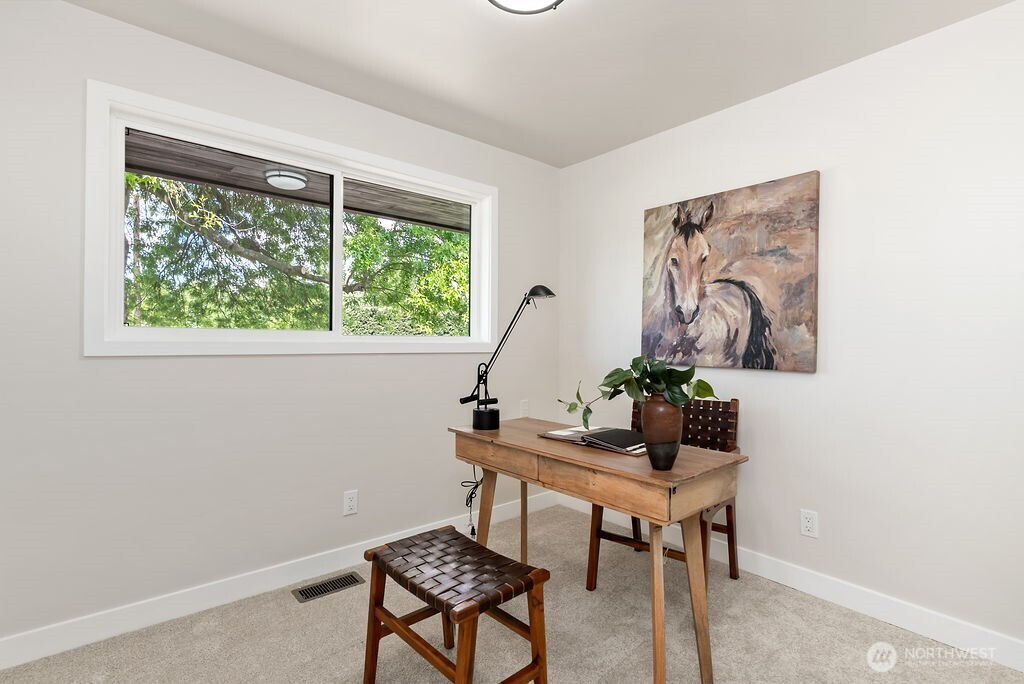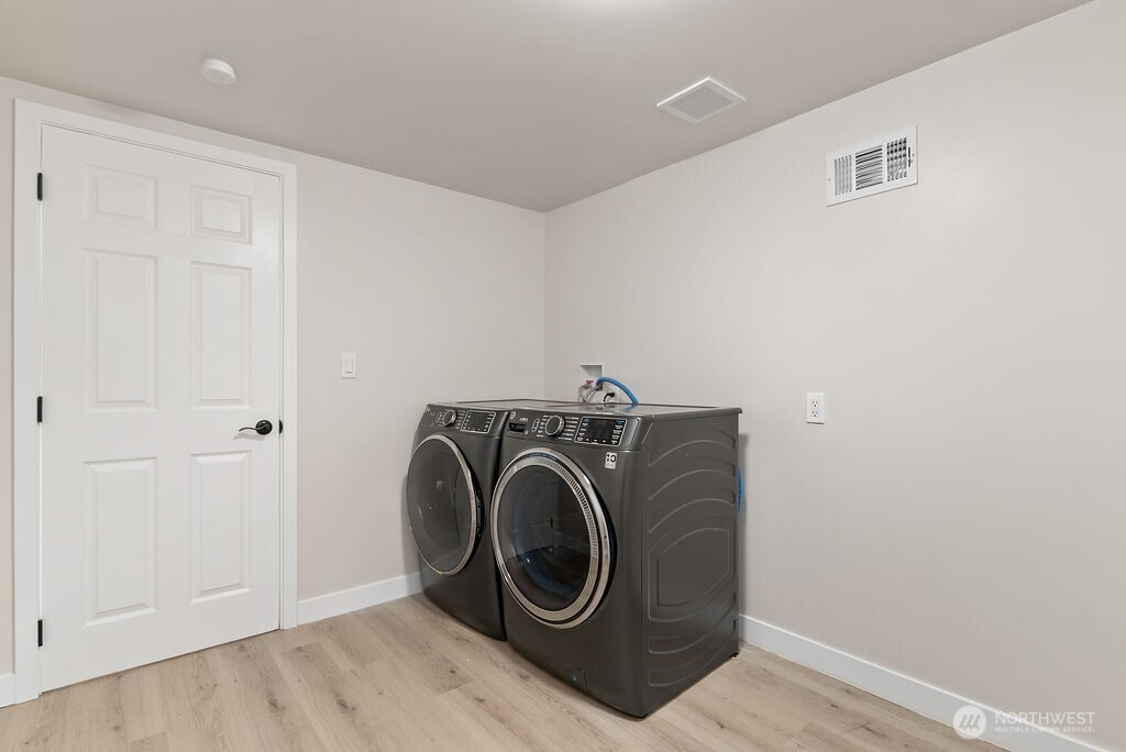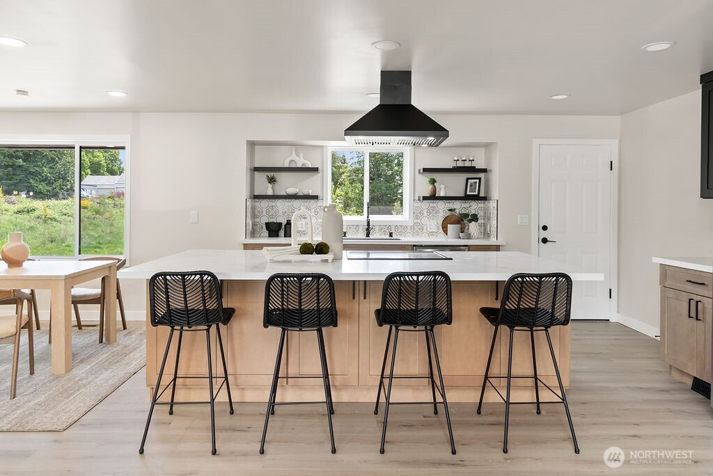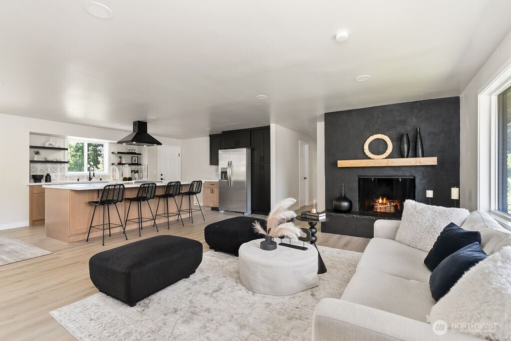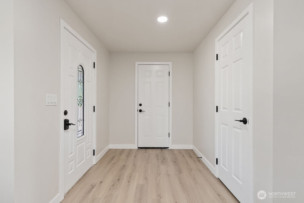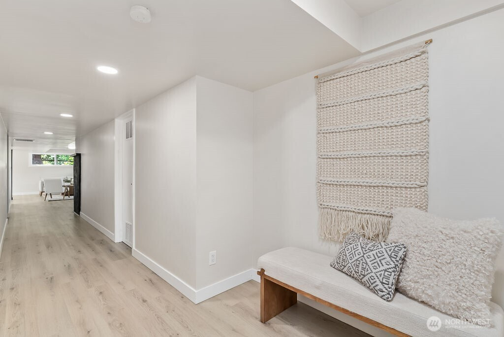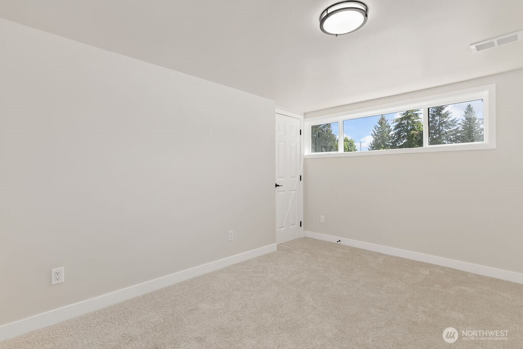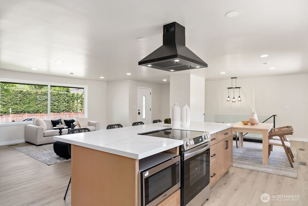 Thoughtfully remodeled 5BD/2.5BA home with daylight basement on a quiet street,backing to a greenbelt.Featuring a brand-new kitchen with soft-close cabinetry,floating shelves,XL island with additional storage&eating area.Custom glass railings add a modern touch to the open living space.Bathrooms throughout the home showcase floating vanities,LED mirrors,custom tilework with niches, and h floors. The primary suite offers a spa-like retreat with an oversized LED-lit shower,double vanities, and tile underfoot. The daylight basement is fully finished with a spacious family room,2 additional bedrooms, full bath, laundry with new washer & dryer, large storage & patio access. New roof & furnace, new sewer connection.Large backyard & ample parking!