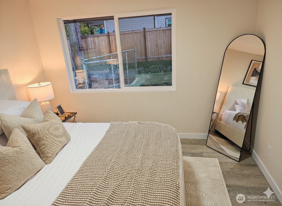 Fully remodeled Kennydale home blends modern style & prime loc! 2BD/1BA, 770 sqft move-in ready. Open living w/ new laminate floors, LED light pkg & fresh paint in/out. Stunning kitchen w/quartz counters, shaker cabs, SS apps incl fridge, stove, MW & DW. Spacious BD w/ oversize new windows flood home w/ light; updated BA w/designer tile & new fixtures. Every detail refreshed: new doors, hdwr, trim. Exterior shines w/new HardiPlank siding, crisp landscaping, clean driveway & new fence. All work pro done for low-maintenance living. Enjoy Lake WA’s Gene Coulon Park, The Landing dining/shopping, easy I-405 commute to Bellevue/Seattle. Virtual tour’s a glimpse—feel the warmth in person! Perfect condo alt or first home-rare turn-key in Kennydale!