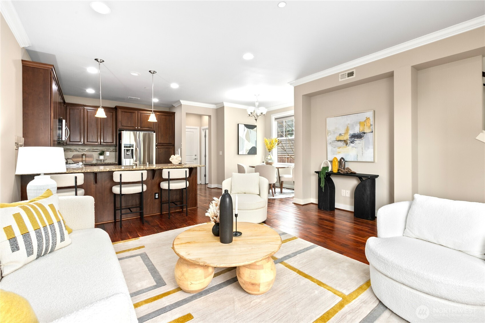 Exceptionally maintained Toll Brothers single-family home in the sought-after Sequoia Glen community. This east-facing corner lot home offers 3 bedrooms + loft and 2.5 baths, with multiple upgraded skylights on the second level. The home features a covered entry and an open-concept great room filled with natural light. Beautiful hardwood flooring runs throughout the main level. The gourmet kitchen boasts granite countertops, stainless steel appliances, and ample cabinetry, flowing seamlessly for everyday living and entertaining. The upper level offers a spacious primary suite with a walk-in closet and ensuite bath featuring a soaking tub, dual-sink vanity, and separate glass-enclosed shower. A versatile loft provides ideal space for a home office, media room, or play area. Convenient upper-level laundry. Community features include 1.3 acres of open space, park, and play structure. Prime location—minutes to a 60-acre park, Bella Bottega, Totem Lake Village, Downtown Redmond, light rail, and major tech employers including Microsoft, Google, Amazon, and Meta. Easy access to SR-520 and I-405. Top-rated Lake Washington School District with proximity to Norman Rockwell Elementary without crossing any roads. Pre-Inspected. Move-in ready.