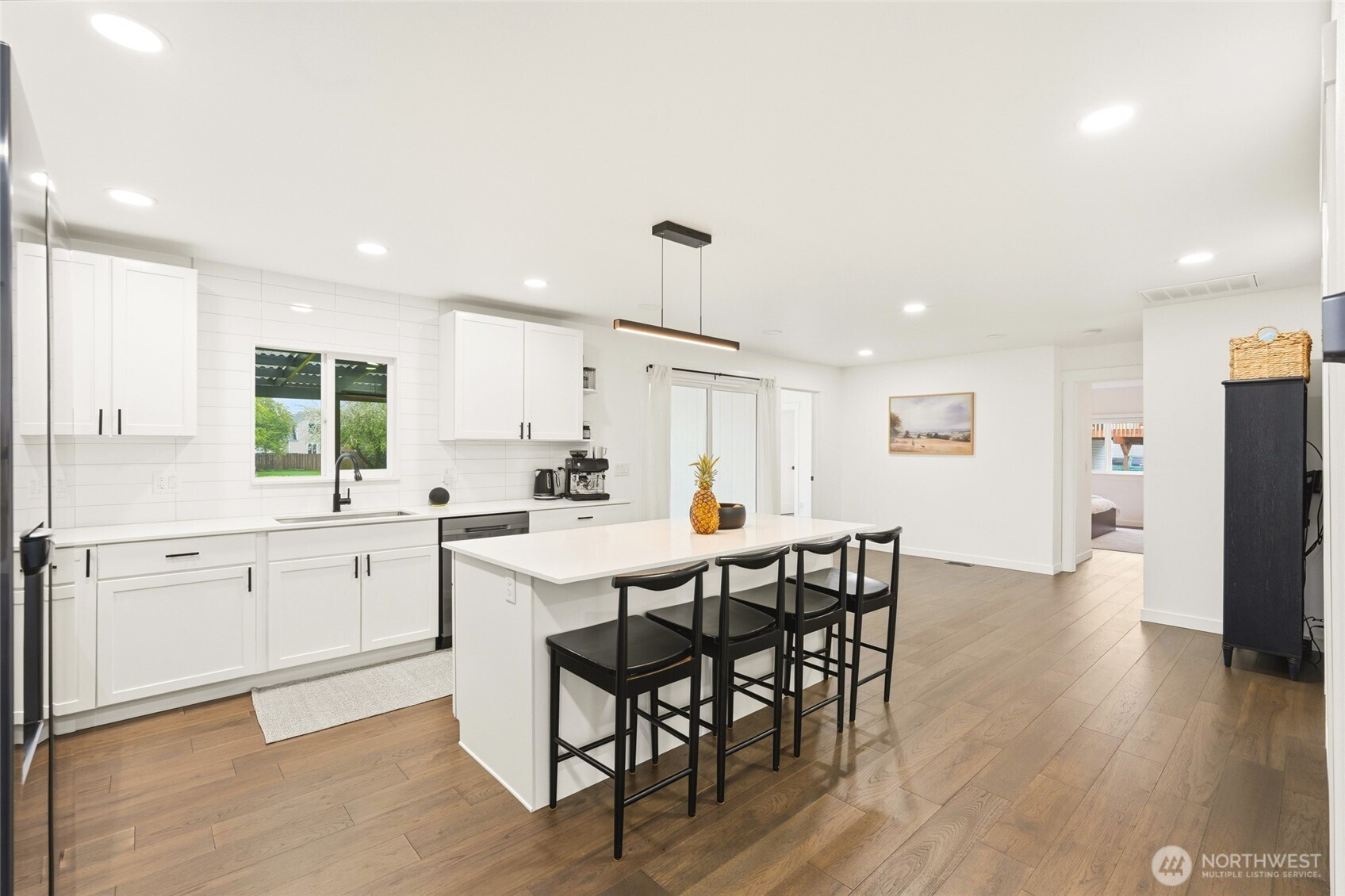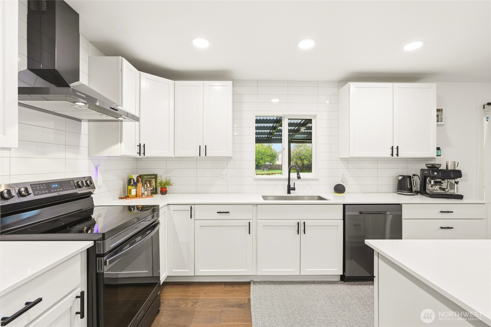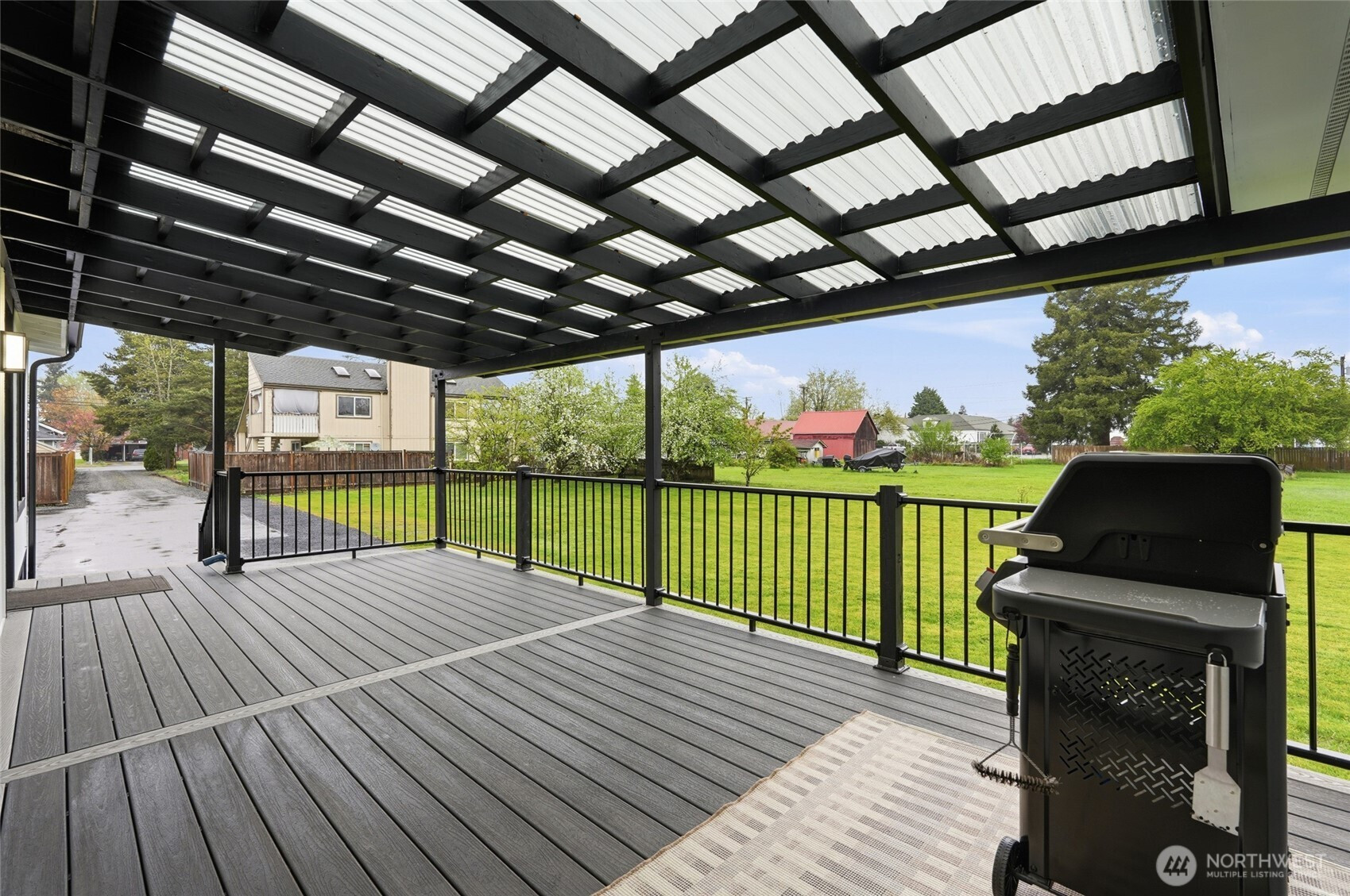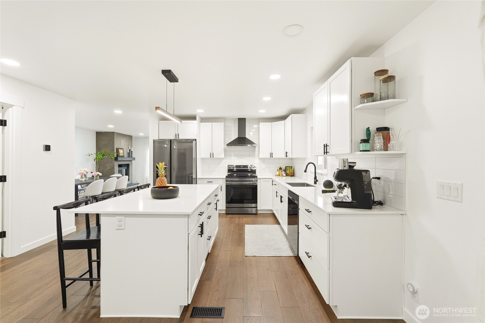 Beautifully remodeled manufactured home offering 3 bedrooms plus bonus/office room with 2.5 bath, designed for flexible living. The high-end remodel shines with updated cabinetry, a large kitchen island and a cozy wood fireplace that anchors the main living space. Custom built-in closets add both style and function. Situated on a large, oversized lot with a mix of private and shared driveway access. The property includes a detached garage for extra storage or workspace. Enjoy outdoor living year-round on the covered back patio with durable Trex decking. Conveniently located near everyday amenities, this home blends modern updates with practical living in a great setting.