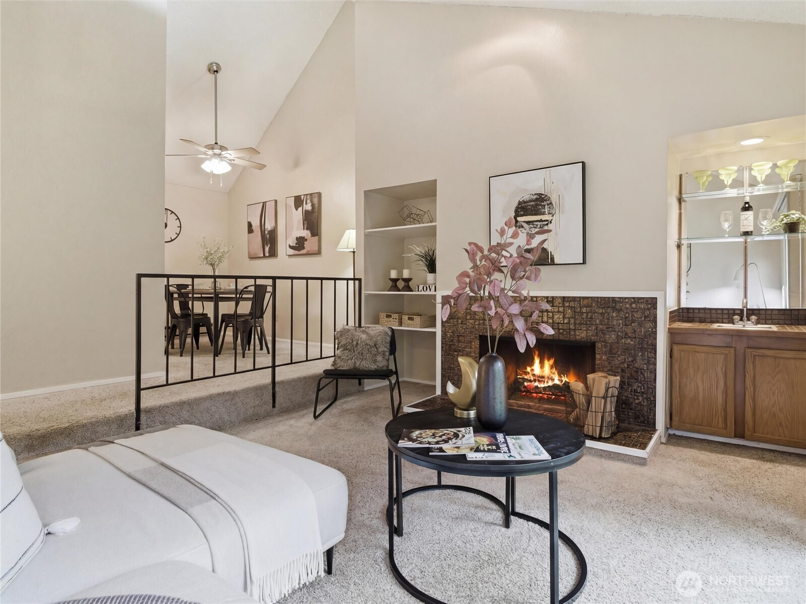 Welcome home to this charming townhome condo in the lovely Gainsborough Commons community. Surrounded by a park-like setting, this single story unit is not your typical condo. Step inside and enjoy the spacious layout with vaulted ceilings, large windows filled with natural light and a sunken living room including a wet-bar for entertaining and a cozy fireplace. Catch some sun and relax on the private back patio and enjoy the peaceful yard bordered by lush NW foliage. Not only does this unit include a full kitchen and separate dining room, 2 bedrooms and 2 bathrooms, but there are many storage spaces and closets throughout as well as a private outdoor patio storage room. The attached garage includes the washer and dryer and also comes with bonus storage space while comfortably parking a vehicle + there is plenty of parking room in the driveway. Parking is not an issue here! The Gainsborough Commons HOA features walking trails, community center, well maintained and heated outdoor pool, cedar sauna and sport court. Community is pet-friendly as well. Condos in this neighborhood rarely come up for sale and often sell swiftly! The location is STELLAR: walking distance to shops, restaurants and a short drive to hop on the freeway or downtown Renton or Kent.