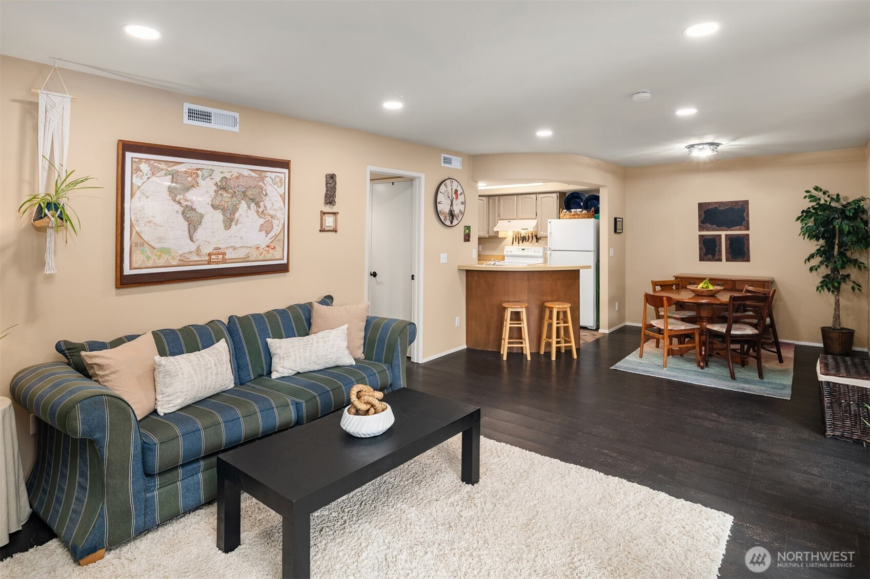 Discover the perfect blend of comfort, lifestyle, and location in this charming 2-bedroom, 1-bath corner condo tucked in the heart of Kirkland. This inviting ground-floor, one-level home features an open floor plan with newer cork and tile flooring throughout, a cozy wood-burning fireplace, and a private covered patio—ideal for morning coffee, relaxing evenings, and additional storage. In the summer months, kick back and relax by the community outdoor pool and hot tub. Located just moments from The Village at Totem Lake, you have convenient access to popular destinations like Whole Foods Market and Trader Joe's, along with a variety of dining, fitness, and retail options. Outdoor enthusiasts will appreciate nearby Totem Lake Park and Juanita Beach Park, offering trails, waterfront access, and open green space. Commuting is streamlined with easy access to public transit, I-405 and proximity to major employers such as Google and Microsoft. Healthcare and essential services are close by at EvergreenHealth Medical Center. The HOA is pet-friendly with no rental cap, providing flexibility for both homeowners and investors. Your assigned covered parking space and storage unit is conveniently located just outside your unit. FHA and VA approved. Enjoy effortless living with everyday conveniences, outdoor escapes, and vibrant Kirkland amenities just moments from your door!