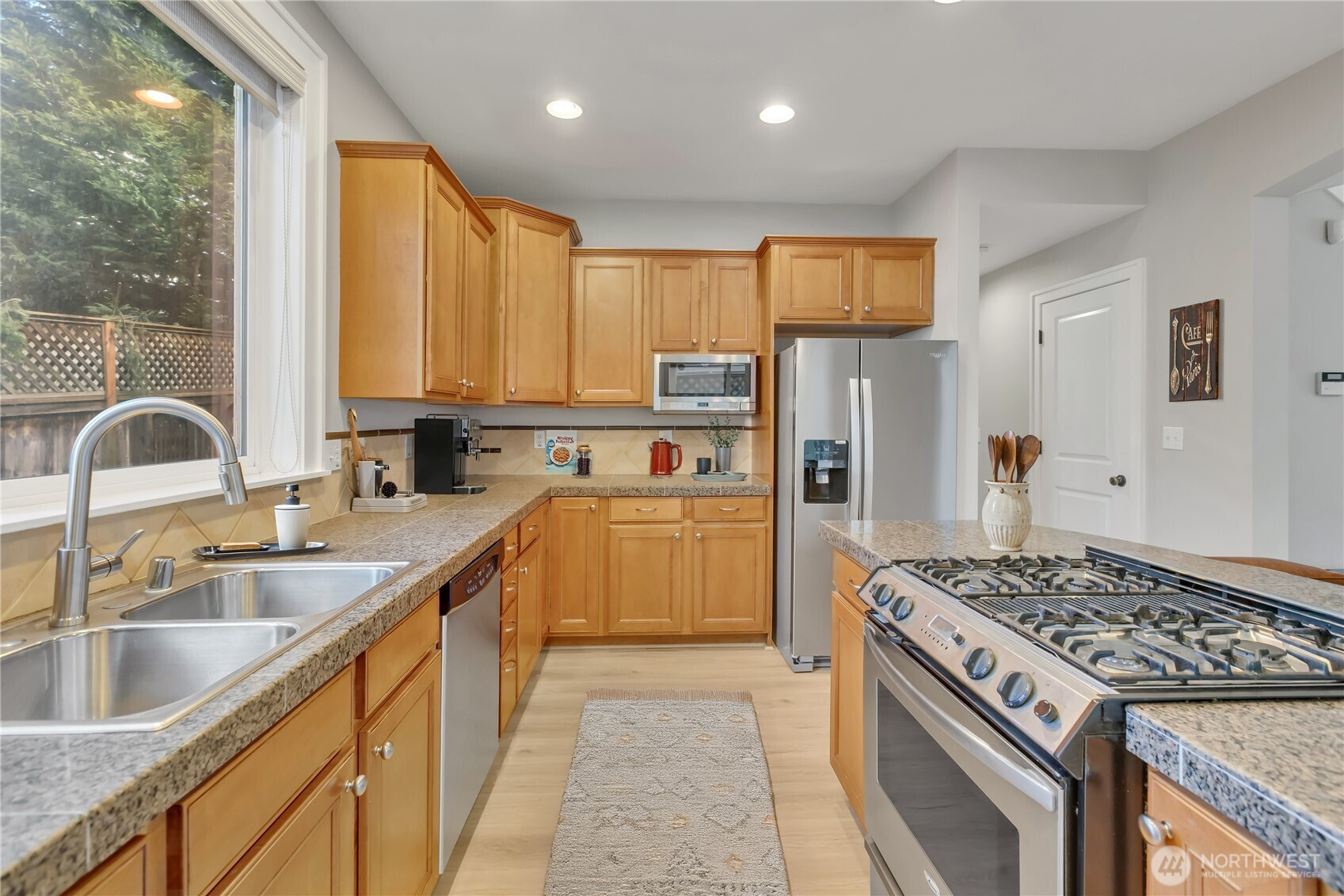 Welcome home to your cozy townhouse in the private gated community of Selbourne Lane in Kent's East Hill. Freshly painted open floor plan with new honey colored LVT flooring throughout the main floor. Modern kitchen with granite counters, new refrigerator & garbage disposal, lots of cabinet space and a separate walk in pantry. Main level bedroom & full bath which could easily be a second primary. Open floor plan with living & family rooms lead to a private patio with room for grilling and entertaining. AC will keep you cool in the summer! Upstairs the large primary suite features a walk-in closet & a spa-style bath. Versatile bonus room/office loft for a second tv room. Convenient second floor laundry room. Attached 2-car garage and 2 car pad in front. Low-maintenance living, the home is designed for entertaining & enjoyment. Just minutes to shopping, dining, public transit, parks, & quick access to I-5 & Hwy 167 for easy commuting.