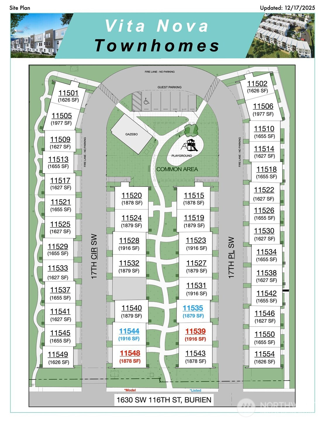 Vita Nova Townhomes in Shorewood showcases collaboration, creativity & craftsmanship. Developed by American Dream Home Group & built by TP Home, this 43-townhomes community blends modern comfort, timeless design & everyday function. Each home offers 3-4 Beds, 2.5 Baths, approx. 1,626 to 1,977 SqFt, 2-Car Garage, covered deck. Interiors feature porcelain tile, durable LVP, quartz counters & custom cabinets. Innovative layouts maximize light, storage & overall flow. Community amenities include an upcoming private playground + gazebo w/benches, 5 guest parking + handicap spot. Minutes to Fauntleroy Ferry & Lincoln Park, & est. 15 min drive to SeaTac Airport & Westfield Southcenter. GPS: 1630 SW 116th St, Burien. 1-Yr Home Warranty provided.