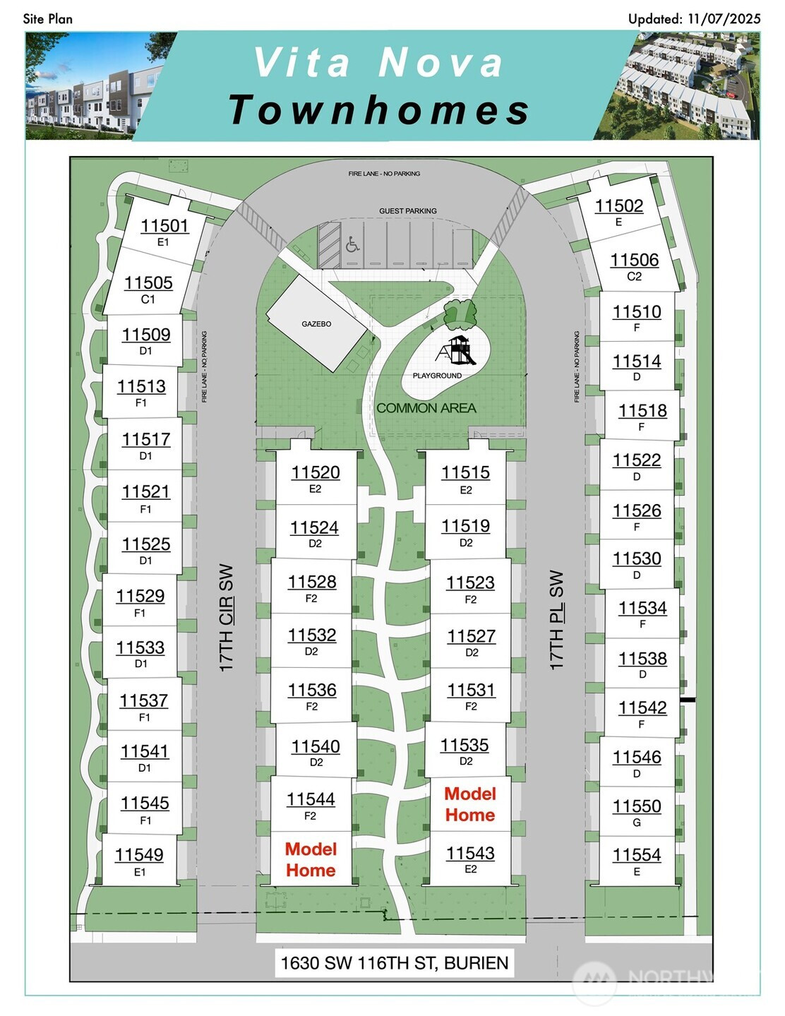 Vita Nova Townhomes in Shorewood showcases collaboration, creativity & craftsmanship. Developed by American Dream Home Group & built by TP Home, this 43-townhomes community blends modern comfort, timeless design & everyday function. Each home offers 3-4 Beds, 2.5 Baths, approx. 1,626 to 1,977 SqFt, 2-Car Garage, covered deck. Interiors feature porcelain tile, durable LVP, quartz counters & custom cabinets. Innovative layouts maximize light, storage & overall flow. Community amenities include an upcoming private playground + gazebo w/benches, 5 guest parking + handicap spot. Minutes to Fauntleroy Ferry & Lincoln Park, & est. 15 min drive to SeaTac Airport & Westfield Southcenter. GPS: 1630 SW 116th St, Burien. 1-Yr Home Warranty provided.
