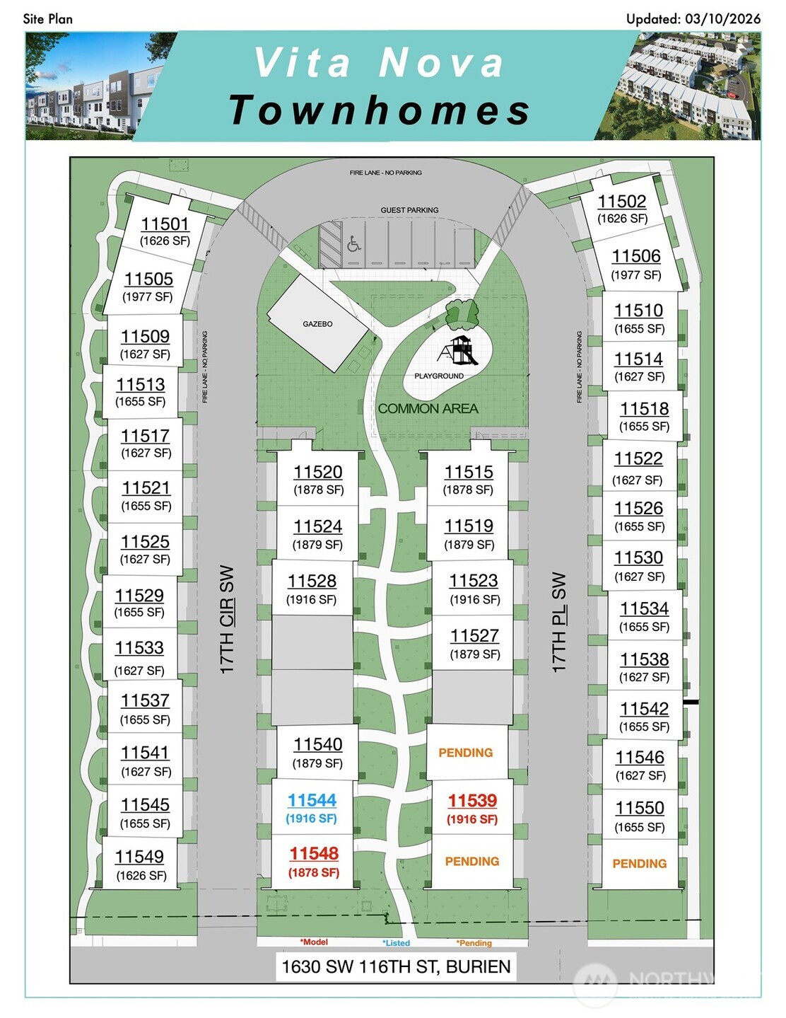 Vita Nova Townhomes in Shorewood showcases collaboration, creativity & craftsmanship. Developed by American Dream Home Group & built by TP Home, this 43-townhomes community blends modern comfort, timeless design & everyday function. Each home offers 3-4 Beds, 2.5 Baths, approx. 1,626 to 1,977 SqFt, 2-Car Garage, covered deck. Interiors feature porcelain tile, durable LVP, quartz counters & custom cabinets. Innovative layouts maximize light, storage & overall flow. Community amenities include an upcoming private playground + gazebo w/benches, 5 guest parking + handicap spot. Minutes to Fauntleroy Ferry & Lincoln Park, & est. 15 min drive to SeaTac Airport & Westfield Southcenter. GPS: 1630 SW 116th St, Burien. 1-Yr Home Warranty provided.