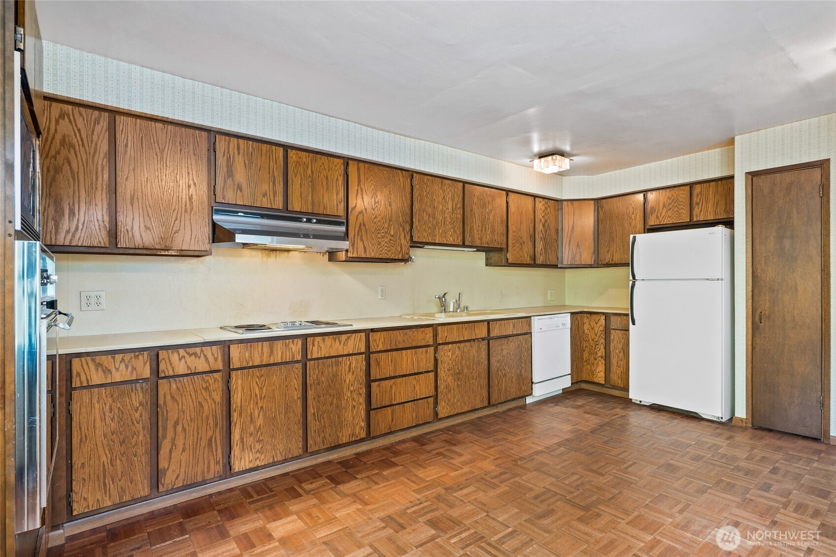 Once in a great while, an opportunity arises like this one. On the market for the first time in over 68 years, this well cared for and cherished home is your blank canvas for renovation and renewal and its starts with the perfect location across from the Seattle Golf Club. Unique and thougtfully designed 1946 rambler features 2 bedrooms, both with ensuite full baths. Spacious living areas include a long counter kitchen area, large bonus/rec room and an enclosed sunroom/atrium. Vintage hardwood floors, appliances, and wallpaper adorn the residence along with a newer roof and other systems updates. Generous lot size is over .25 acre and filled with mature landscaping, plants, flowers, and trees. Attached single car garage and fenced yard.