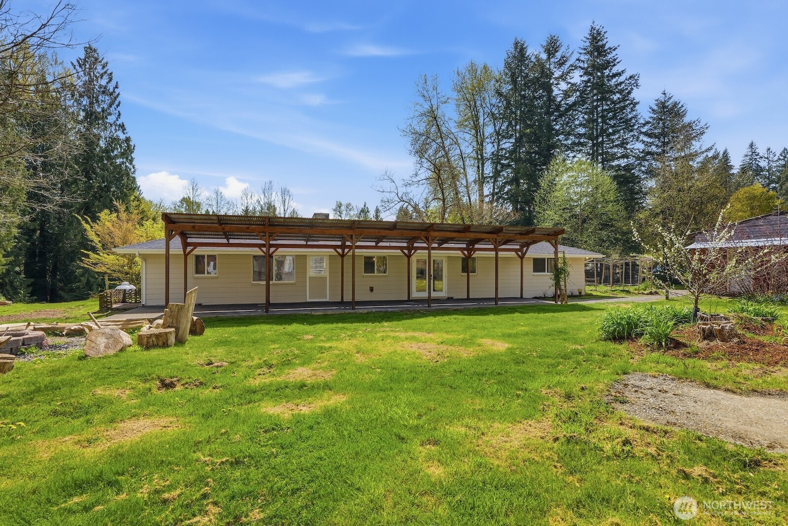 Acreage property on Carnation’s scenic Fay Road! Set on 3.59 spacious acres with room for animals, gardening, and play. One level living offers comfort and convenience. No HOA and plenty of RV parking. Refinished hardwood floors and fresh paint inside and out create a crisp, updated feel. New roof adds peace of mind. Cozy propane fireplace warms the living space. Updated kitchen offers style and function. Primary suite features a full bath. Relax or entertain year-round on the covered porch. Outbuildings include goat pens with pasture. Large detached carport and separate office space add flexibility. Fruit trees enhance the landscape. Enjoy privacy and rural living with quick access to Carnation, Duvall, and Redmond. Live your country dream here!