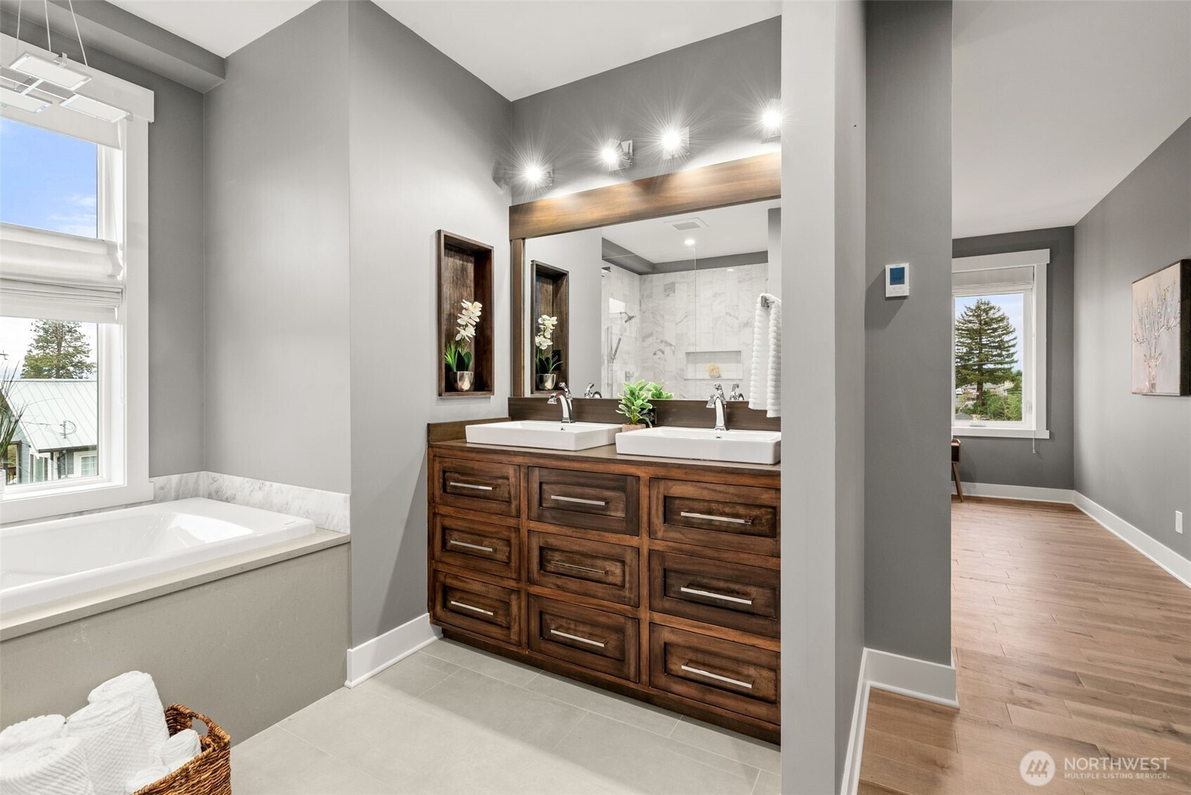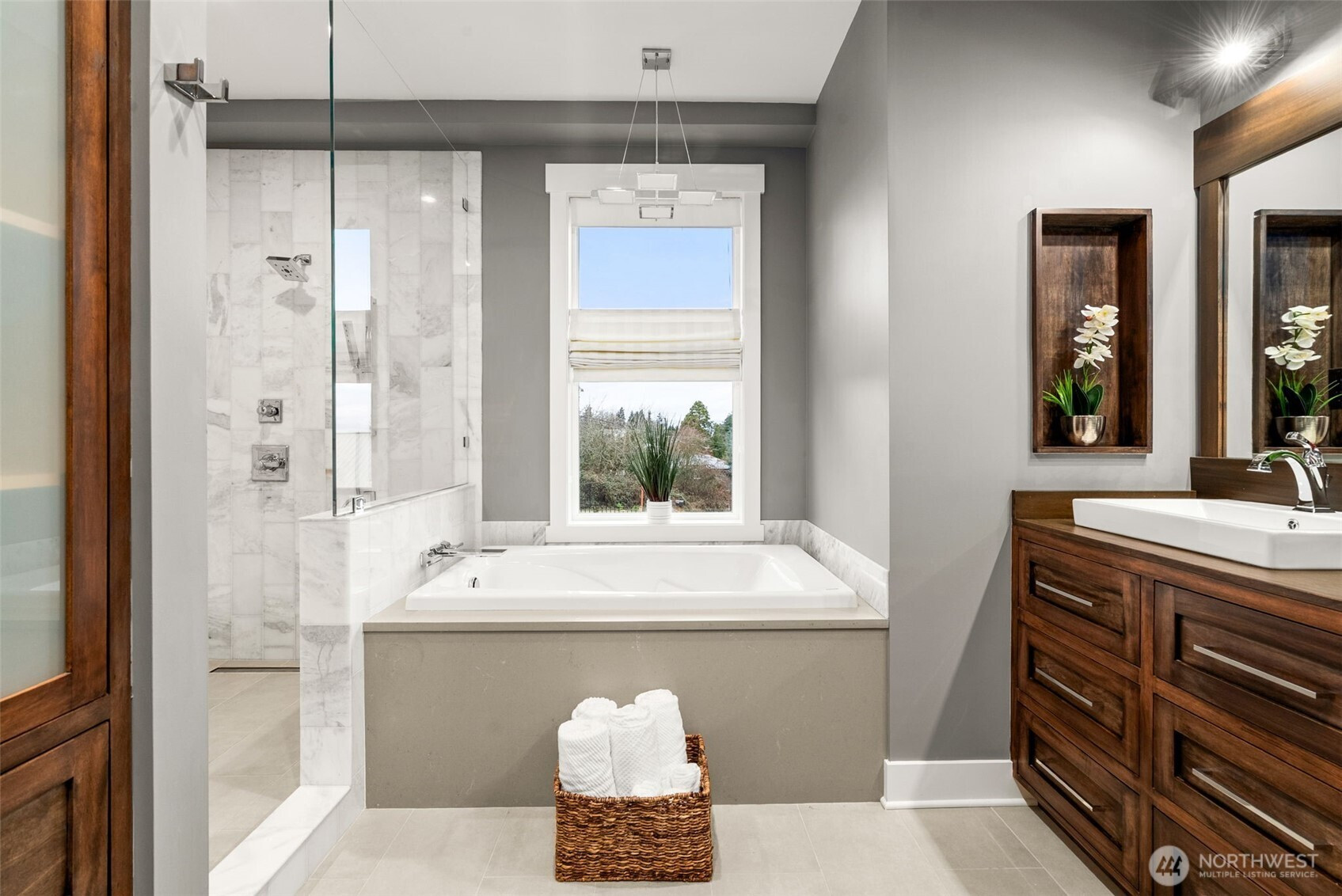 A rare blend of beauty, craftsmanship & modern comfort—this exceptional Burien home has been thoughtfully enhanced to impress. Thoughtfully reimagined from top to bottom, every detail has been carefully curated to create a home that lives beautifully & functions effortlessly. Offering 4 beds, 3.5 bathrooms, plus a dedicated office & bonus loft. Includes an incredible primary suite & a junior suite, ideal for guests or multi-generational living. The primary retreat is truly special, featuring heated floors, a jetted soaking tub, walk-in shower & custom built-in closets. The heart of the home is the stunning chef’s kitchen, highlighted by marble countertops, high-end finishes, top-of-the-line appliances; Wolf Range & Electrolux side by side Refrigerator/Freezer. Flows seamlessly into the living room; perfect for entertaining or everyday living. A 2nd living room downstairs adds flexibility for media, guests or a play area. You'll love the expansive laundry room with space for a pantry. Features a formal dining room. No detail was overlooked: R-60 insulation, very energy-efficient, newer roof, updated plumbing, electrical, water line & sewer. A fully finished 2-car garage with epoxy floors reflects the quality & care poured into this home. Lush grass, fully fenced, tulips & a garden shed for outdoor enjoyment. Ideally located with easy access to downtown Seattle & Boeing. Minutes to downtown Burien & North SeaTac Park. This home offers the perfect balance of convenience & style.