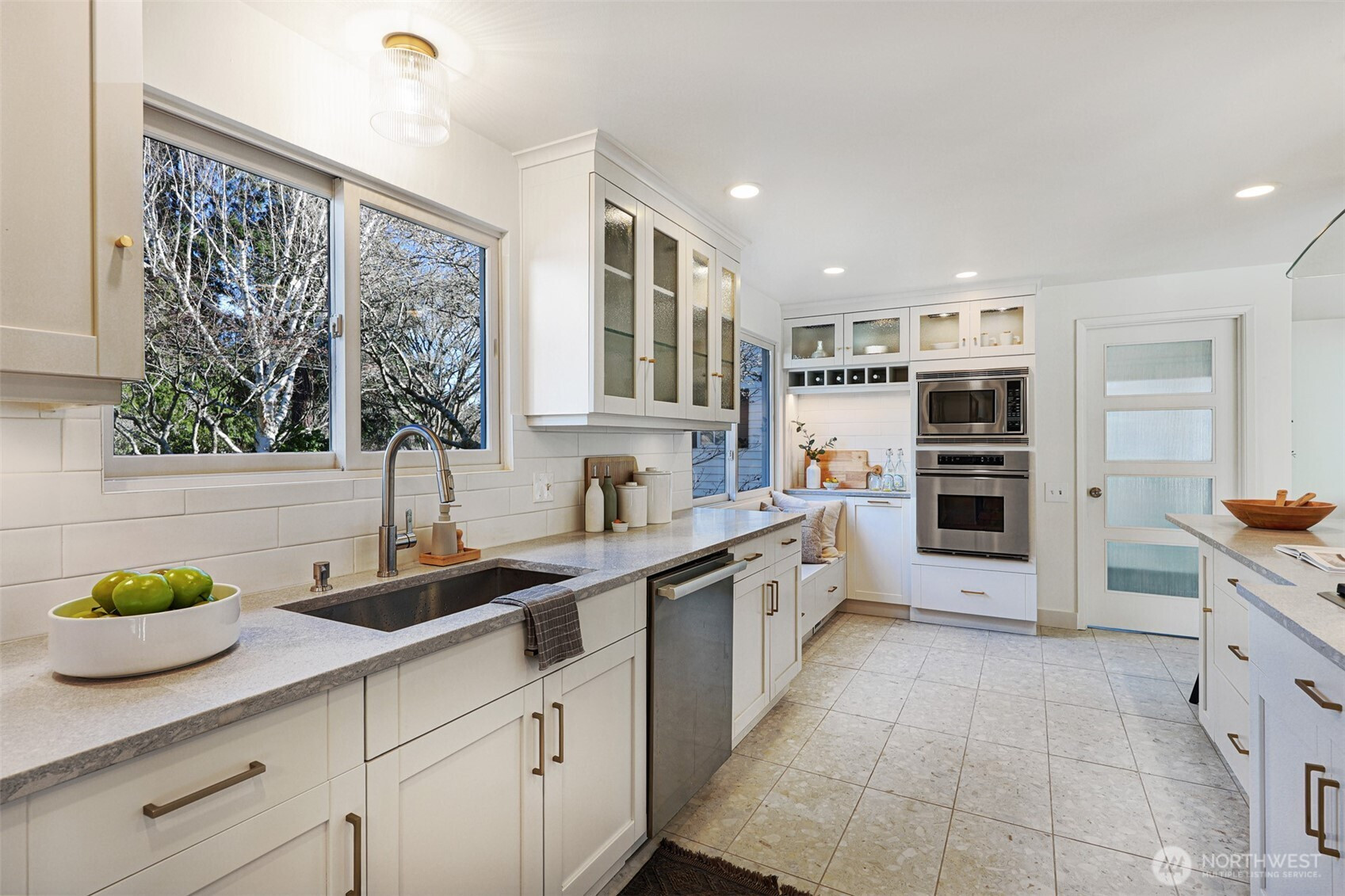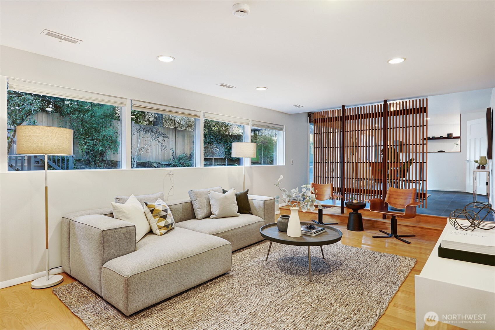 (503) 893-8874There aren't enough adjectives to describe this stunning, special & gorgeous, mid-century 4 bedroom, 3 bathroom Broadview home. Perfect for the most discerning buyer with a beautifully updated kitchen with high end appliances, 3 bedrooms on the same level, primary with en suite bathroom, gleaming refinished hardwoods, formal dining room & more! Large windows with abundant natural light, spacious rooms throughout, lower level with second kitchen, 2 car garage, lots of storage & private, quiet, fully fenced back yard with expansive decks. Steps to Carkeek Park & Puget Sound. You'll love this peaceful, one-of-a-kind spot!