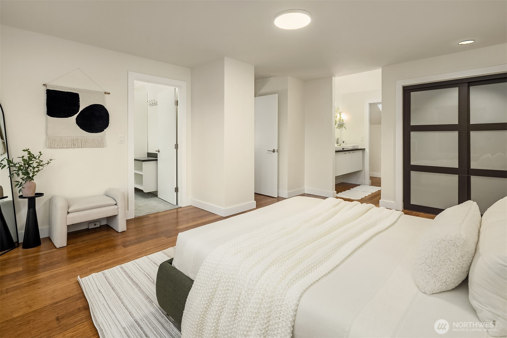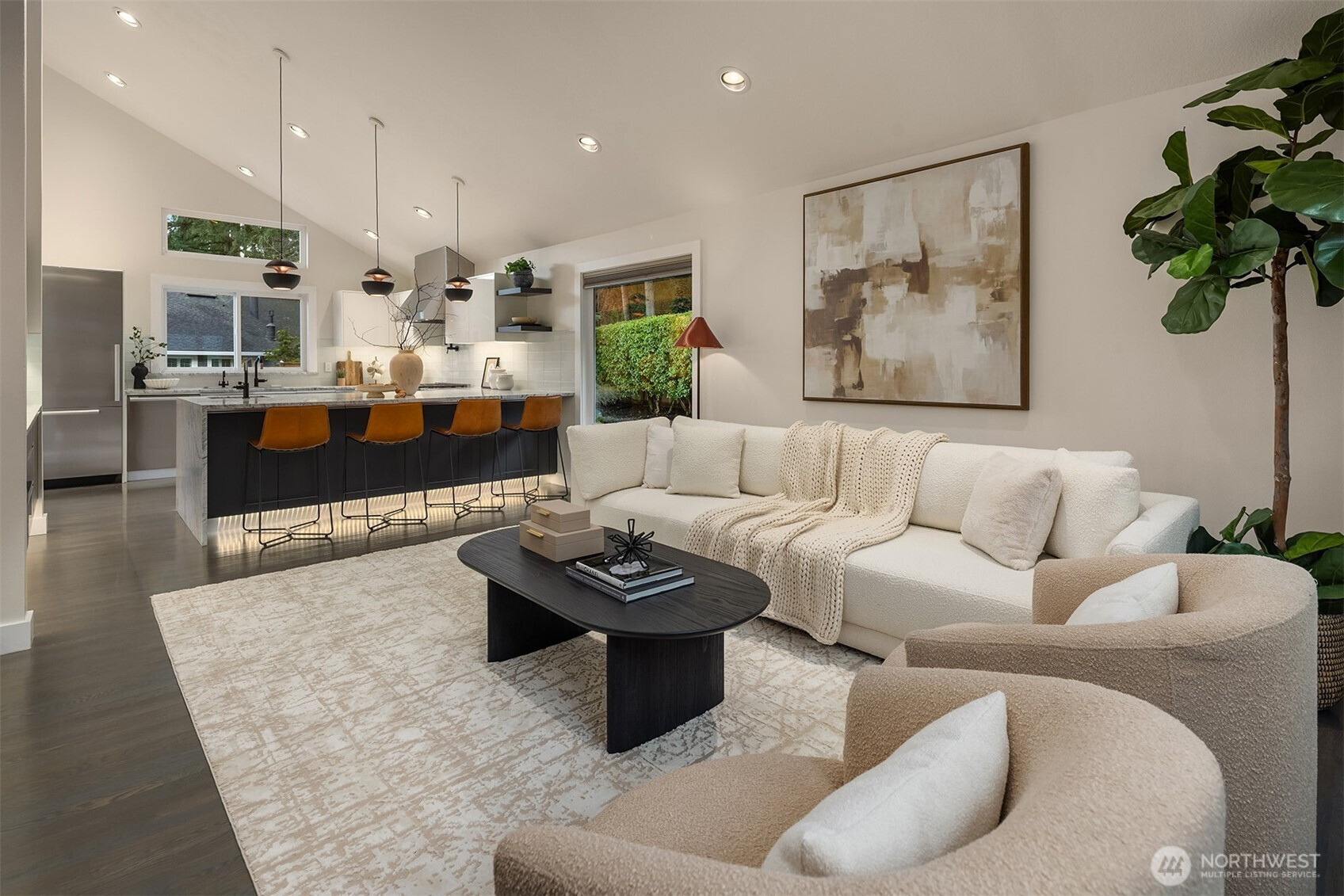 A redefined Kirkland Highlands residence, elevated through a complete, high-caliber renovation. A true showcase of design and craftsmanship, the home centers around a fully appointed Miele chef’s kitchen, where top-of-the-line appliances, Carrara marble slabs, and custom lacquer cabinetry create a space both luxurious and refined. The architectural floor plan offers a private primary suite upstairs, while two secondary bedrooms are positioned on the main level. Bathrooms are tastefully finished with quartz countertops, modern fixtures, and curated tile selections that enhance everyday living. From the dining room, doors open seamlessly to a private backyard retreat, an expansive outdoor setting designed for effortless indoor-outdoor living and entertaining. Residents also enjoy access to private neighborhood tennis and basketball courts. It’s a residence that delivers both comfort and convenience. Located minutes from the newly improved I-405 corridor, Downtown Bellevue, Kirkland’s waterfront, and award winning schools. The Forbes Creek community HOA provides full exterior maintenance including roof, paint, landscaping, and year-round grounds care, highlighted by a newly installed 50-year roof, allowing homeowners to live with ease.