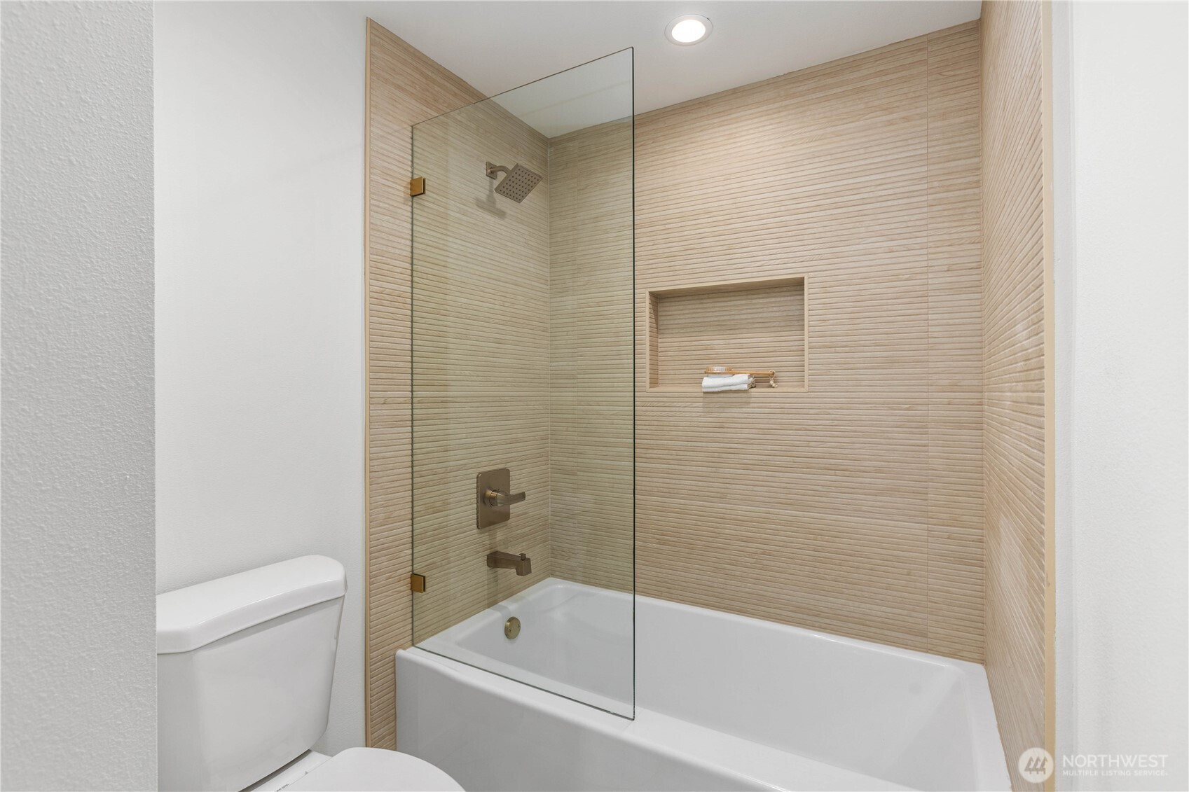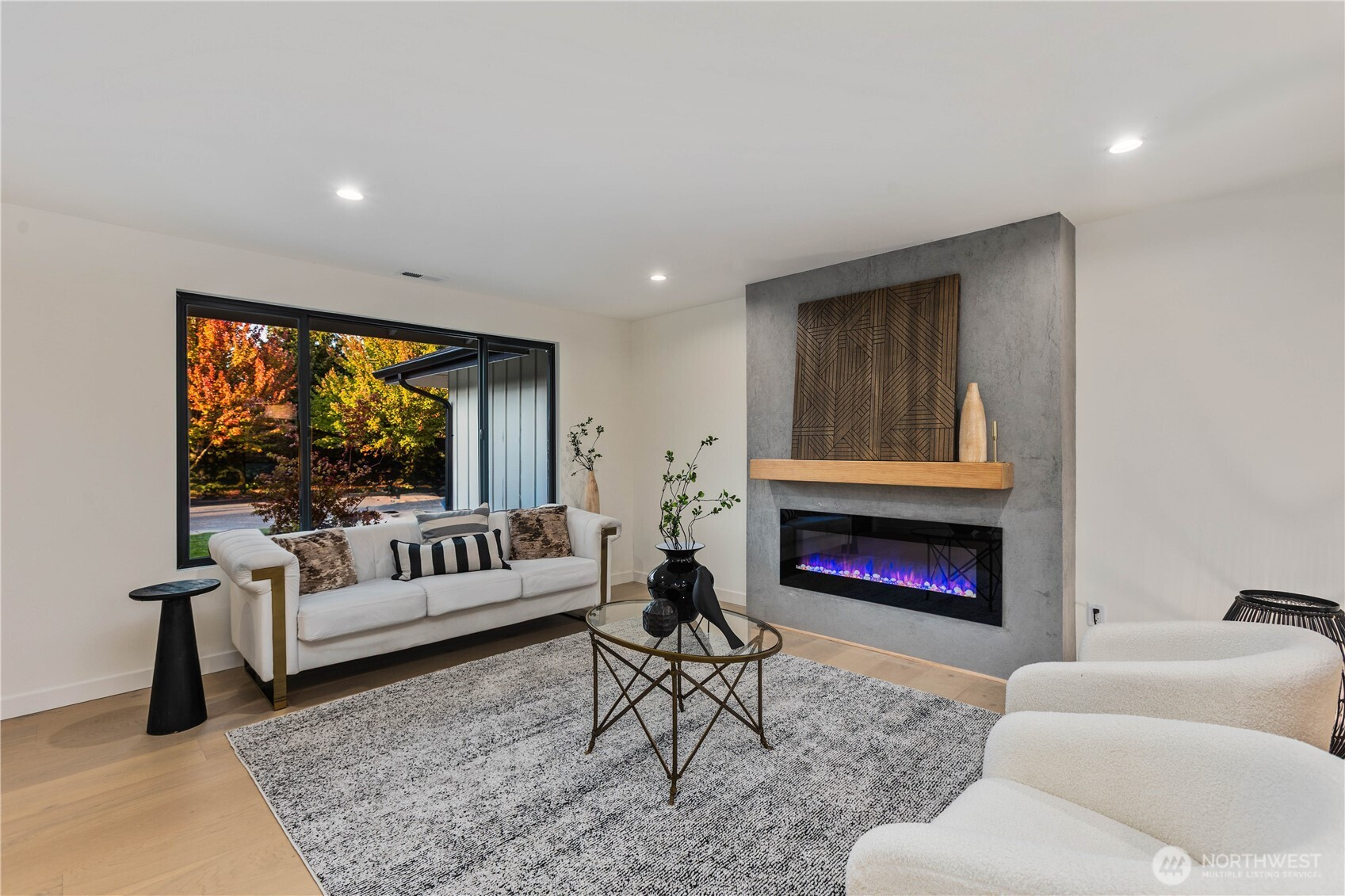 Come see this Stunning one of a kind Rambler in Newport Hills!Fully Remodeled down to the studs with all the permits, Open concept floor plan with engineered flooring throughout the home, beautiful electric fireplace in the living room area, designer kitchen w/ SS appliances, quartz counters & large island, tile throughout the bathrooms, Primary bedroom with its own ¾ bath. Large fully fenced private backyard with all new landscaping.Mins to I90/405, Newcastle Commons, Coal Creek Shopping & Factoria for shopping & dining! Eligible to apply to transfer to Bellevue School District (buyers to verify).