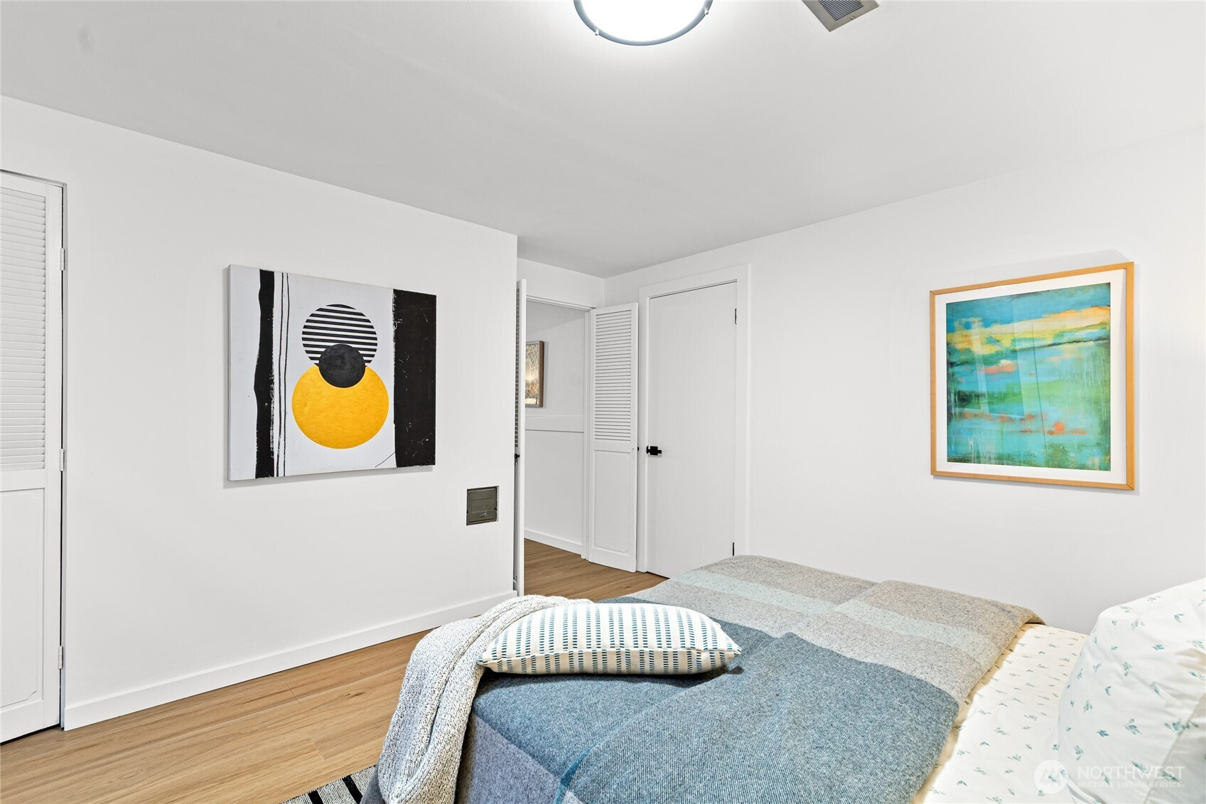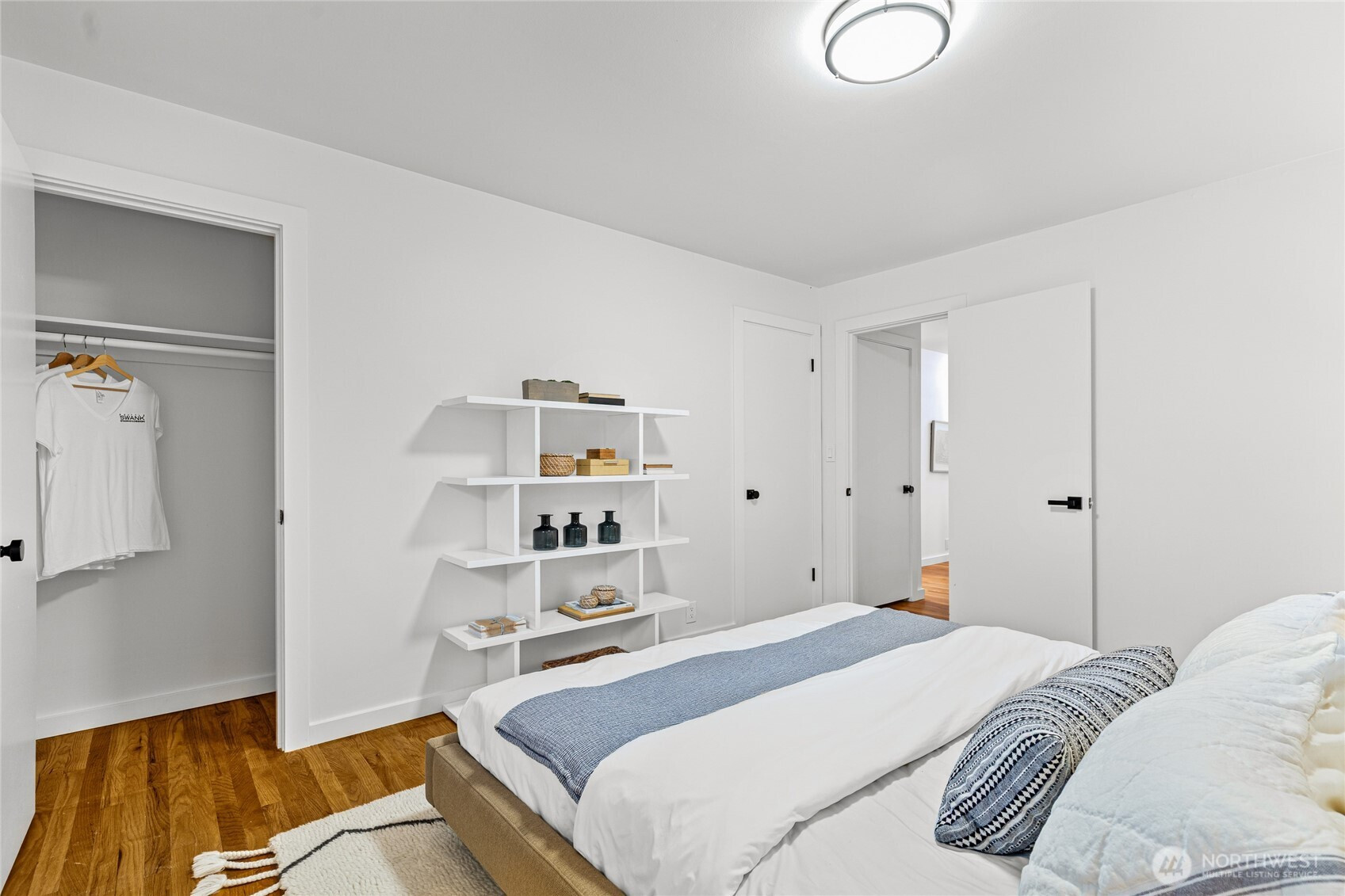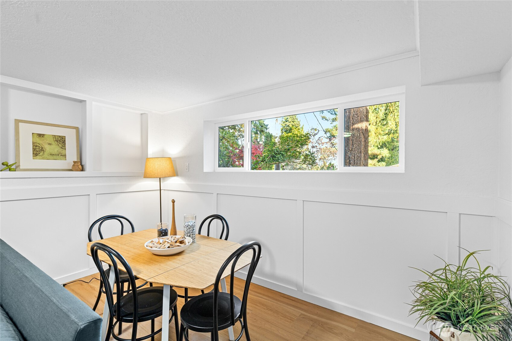 Stylishly refreshed and move-in-ready Victory Heights mid-century home situated on the higher side of a quiet street that spans only 1 block. Brand new kitchen with flat-panel oak grain cabinets, quartz counters, custom tile work and stainless steel appliances. Brand new designer bathrooms. fresh paint, refinished hardwood floors and new hard-surface flooring. Distinct living, dining and kitchen areas flow seamlessly together. Three bedrooms on the main level plus a lower-level bedroom and rec room (optional 5th bedroom). Stay cozy in winter with forced-air heat and cool in summer with new central A/C. Spacious backyard and large deck overlooking sunrise views. Attached one-car garage. Easy access to freeways, Northgate and DT Seattle.