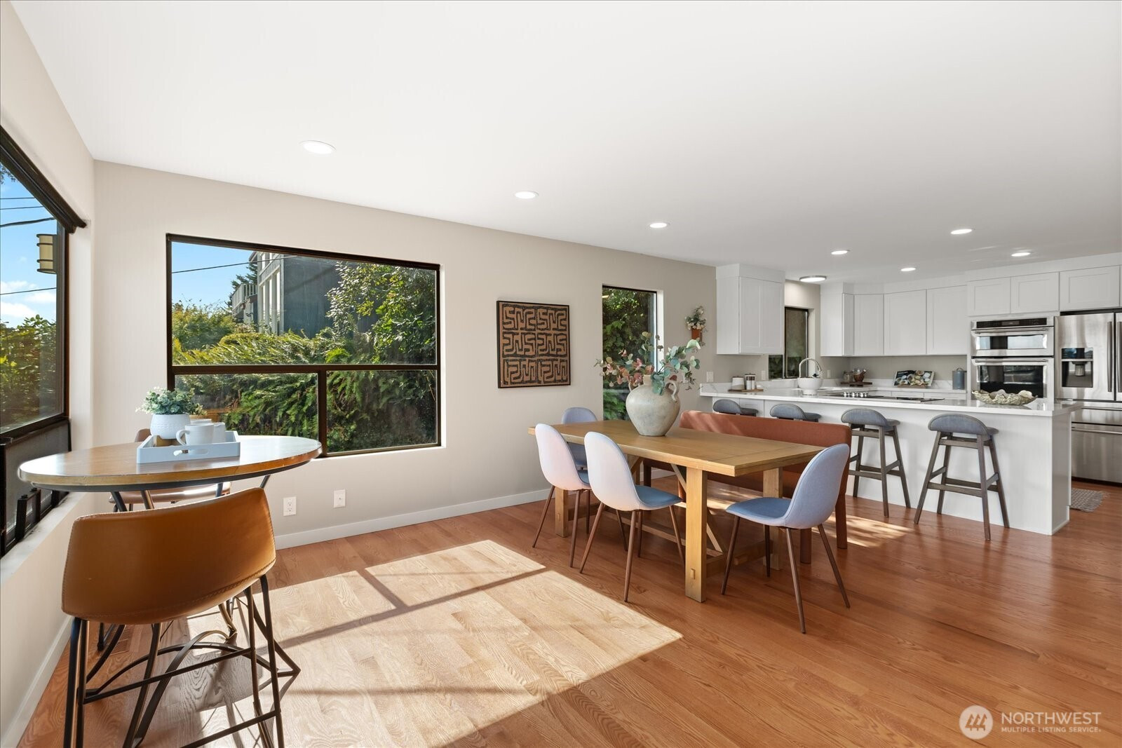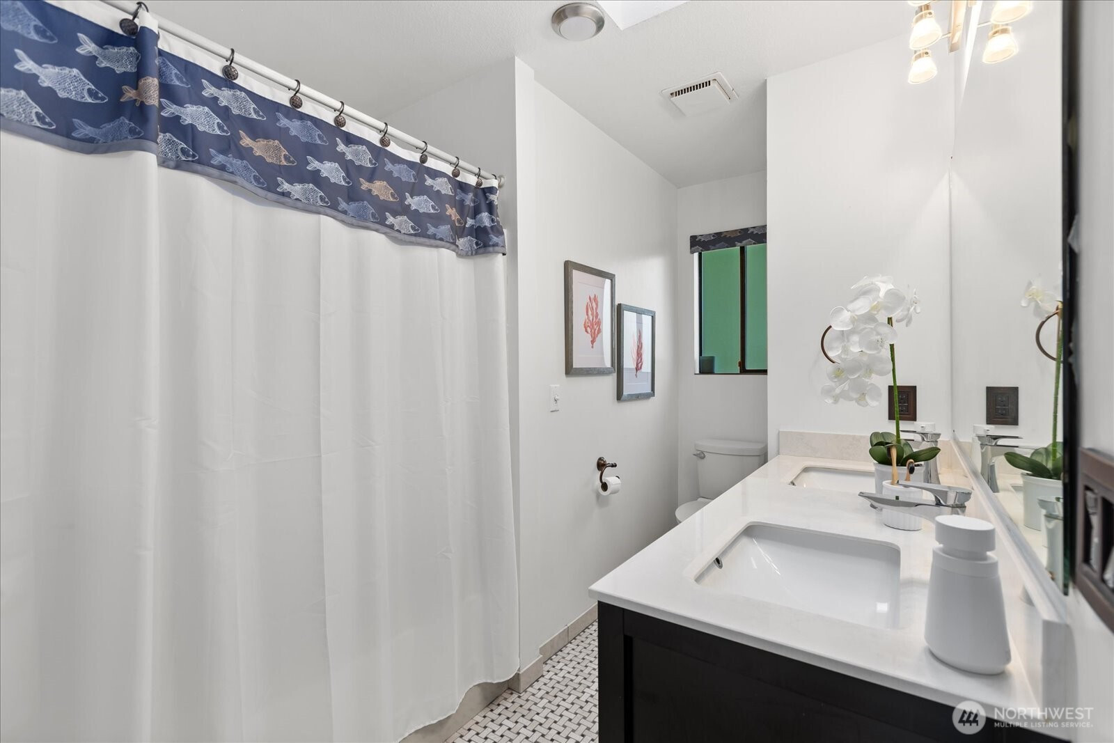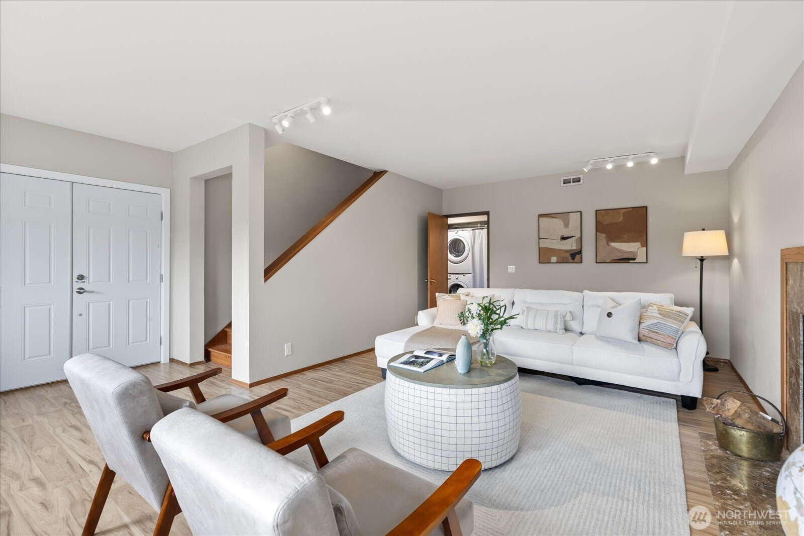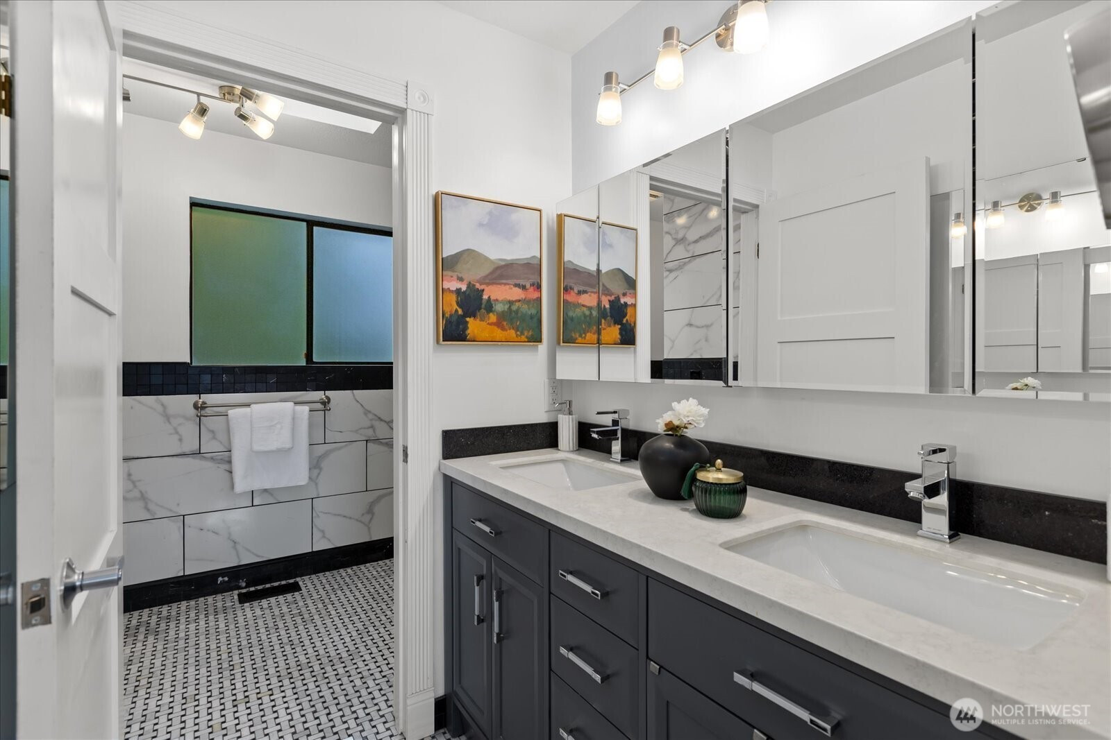 Stunning Lake Washington views from nearly every corner of this beautifully updated home! The main floor boasts a grand formal living room with soaring 20-foot ceilings, a formal dining room, great room with wet bar, and newly remodeled chef’s kitchen with quartz countertops, new cabinetry, & stainless steel appliances—ideal for both casual meals and gourmet entertaining. Gleaming hardwood floors flow throughout the main level, while oversized windows fill the home with natural light, creating warm spaces. Open staircase leads to the upper level with coveted three bedrooms, including a luxurious primary suite with Mt Rainier Views. Lower level features a spacious rec room, additional bedroom and full bath, and an oversized two-car garage.