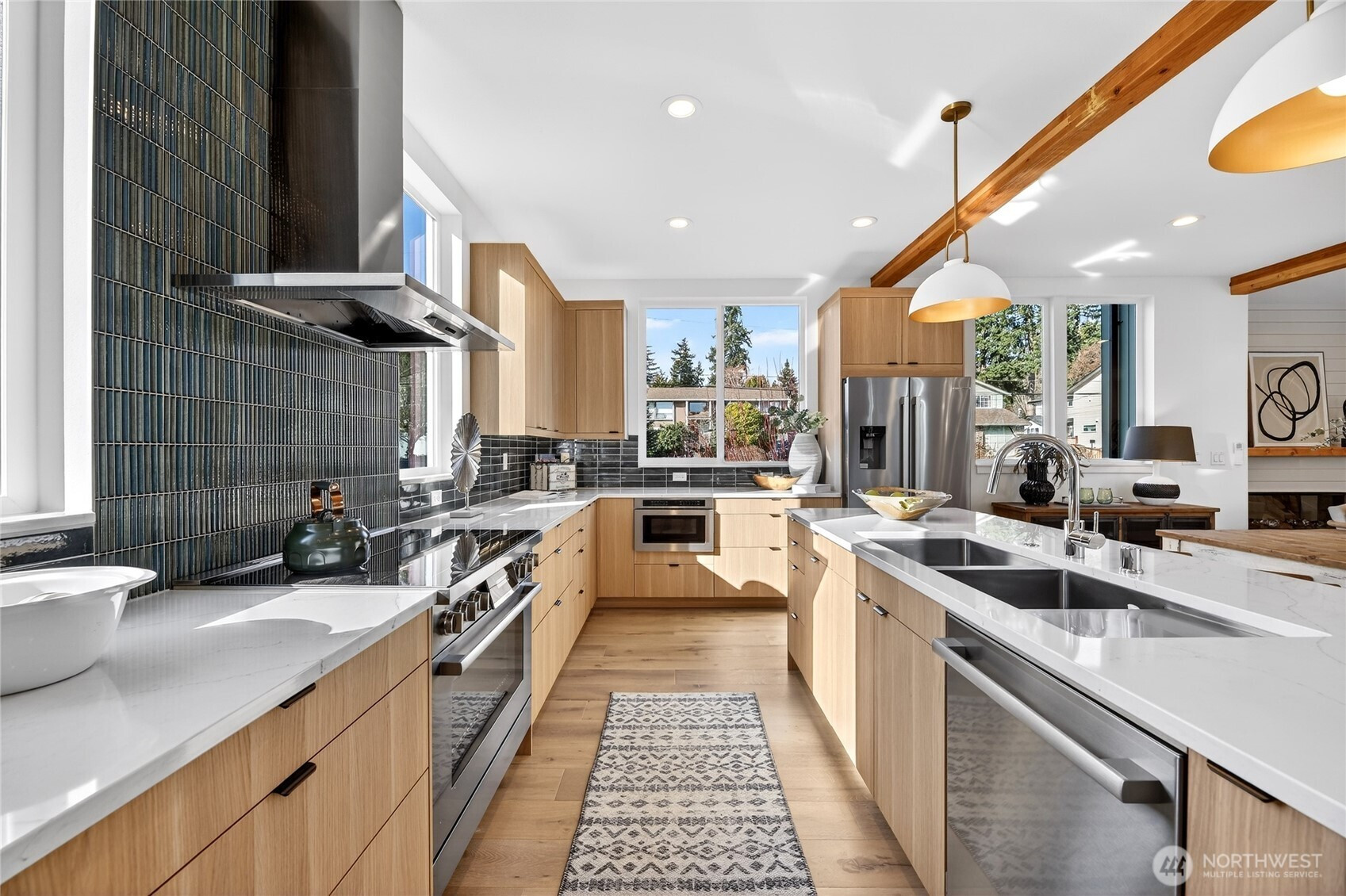 Beautiful spacious new home with abundant natural light throughout. 3 floors of quality with everything you’ve been looking for. Use as a 5 bedroom home or convert the lower level into the recreation room. Open concept floorplan includes true gourmet Chefs kitchen with breakfast bar, high-end appliances, fireplace with built-in shelving, deck off the main floor, beautiful covered view deck for outdoor entertaining, private big primary bedroom with Easterly views of the Cascades and ensuite walk in glass shower with extensive tilework. Washer and Dryer included in sale. Big Private Double-Car Garage with EV Charging!