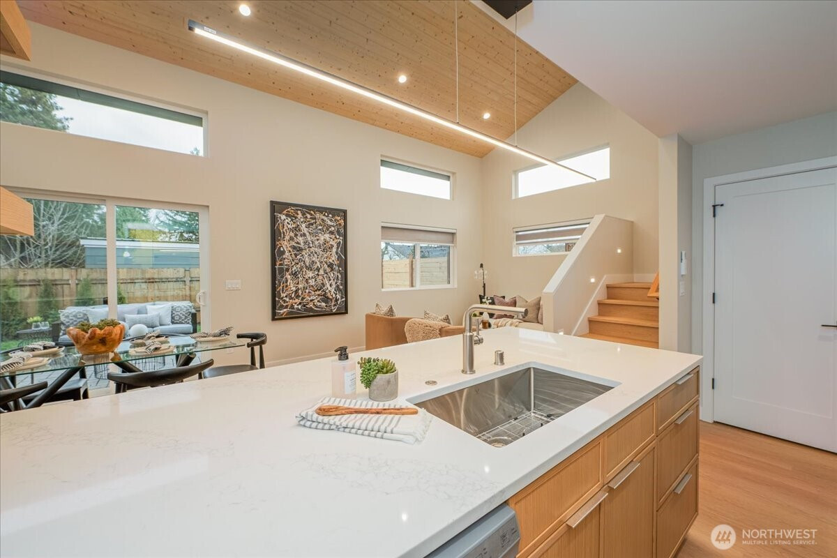 Welcome to this beautifully designed standalone home located in Broadview! Built with privacy and functionality, this NEW 4-Star Built Green modern residence features an open kitchen with quartz countertops, designer cabinetry, breakfast bar seating & cedar-plank ceilings. Upstairs offers a spacious primary suite with spa-like bathroom, second bedroom, full bath and office-loft flex space. Oversized 1-car garage provides secure parking and storage PLUS a fully fenced, oversized private backyard with paver patio. Just minutes from Greenwood, Ballard and access to transit, restaurants and more! This rare gem offers low-maintenance living with all the comforts of a single-family home. This is a one-of-a-kind property… don’t miss it!