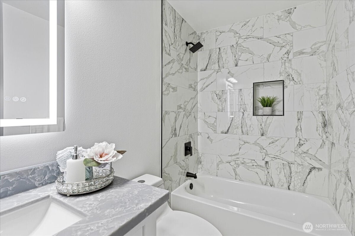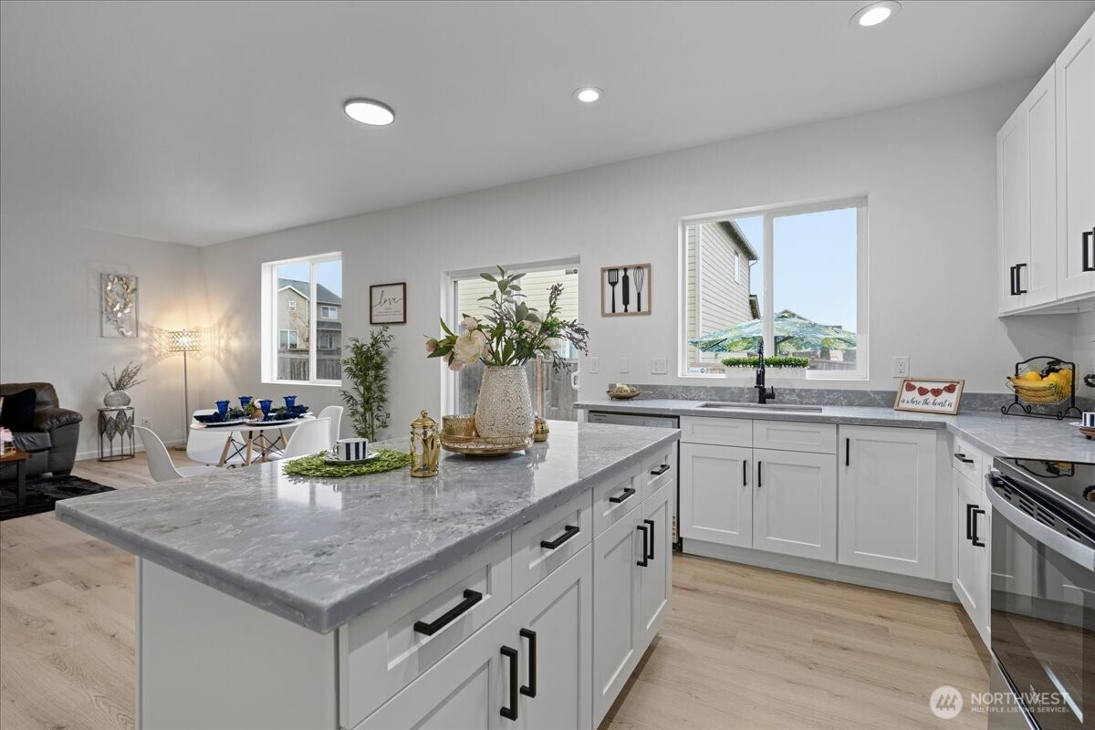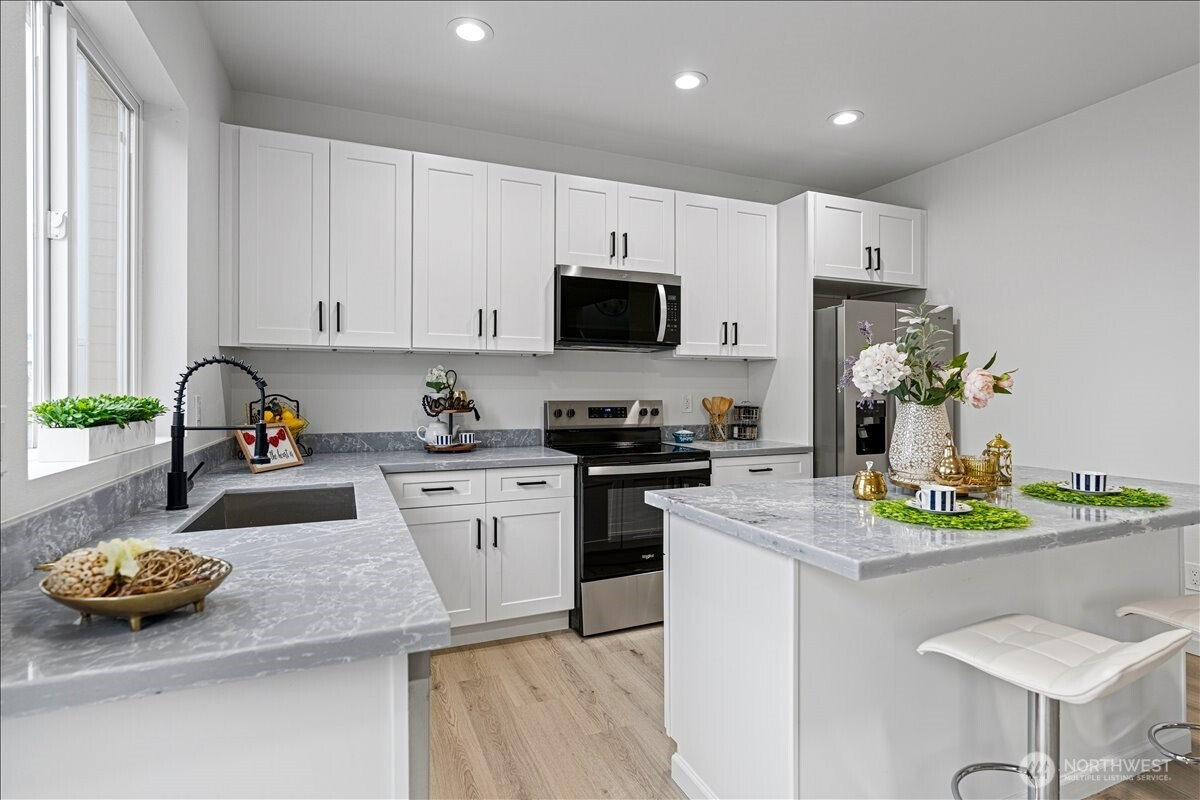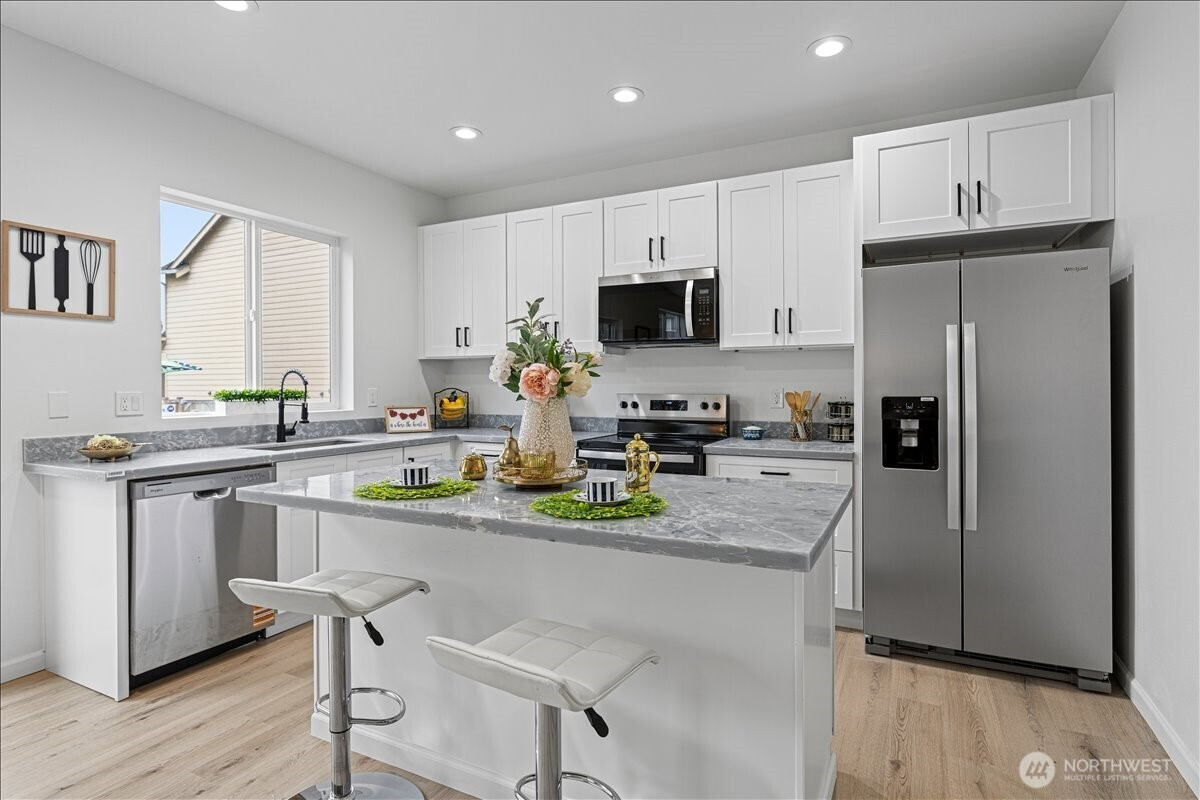 Welcome to this beautifully fully remodeled home in the desirable East Hill neighborhood of Kent! Nestled on a peaceful cul-de-sac, this turnkey residence has been updated from top to bottom with modern finishes and thoughtful design throughout. Temporary 1/0 Rate Buydown paid by preferred lender - Brad Carson at Movement Mortgage brad.carson@movement.com. Step inside to discover a bright, open layout featuring brand-new flooring, fresh interior and exterior paint, designer lighting, and a stunning gourmet kitchen boasting sleek cabinetry, quartz countertops, and stainless steel appliances. The bathrooms have been completely renovated with contemporary tile work and premium fixtures, giving each space a clean and modern feel. Enjoy updated systems and finishes that truly make this home move-in ready. The spacious lot offers room for outdoor living, entertaining, or future personalization. Ideally located near highly-rated schools, parks, shopping, and easy freeway access for commuting, this home checks every box. Don’t miss your chance to own this elegant, fully-transformed home in one of Kent’s most sought-after neighborhoods!
