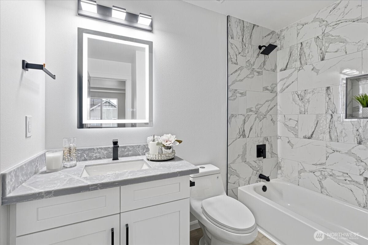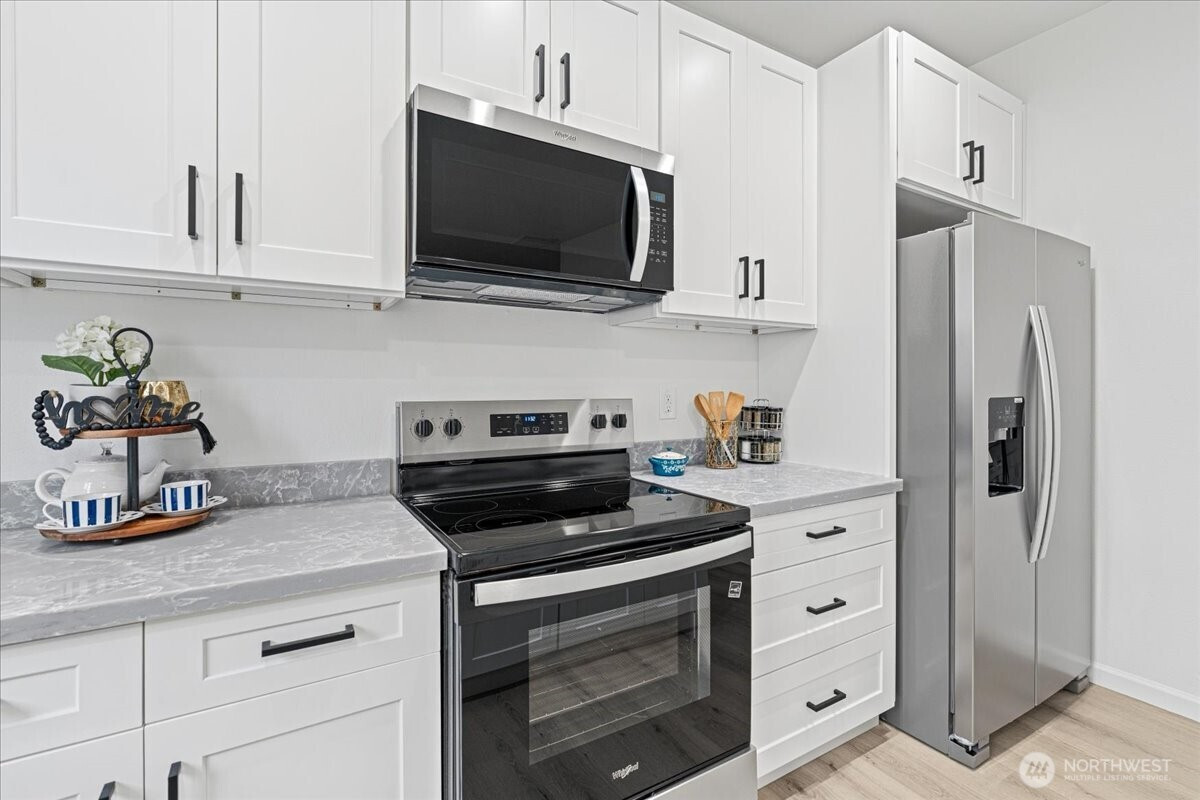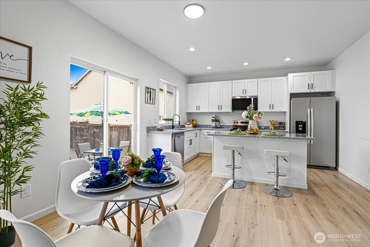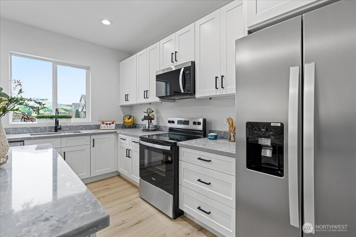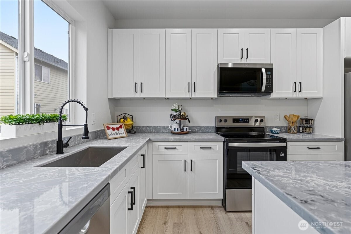 Welcome to this beautifully fully remodeled home in the desirable East Hill neighborhood of Kent! Nestled on a peaceful cul-de-sac, this turnkey residence has been updated from top to bottom with modern finishes and thoughtful design throughout. Temporary 1/0 Rate Buydown paid by preferred lender - Brad Carson at Movement Mortgage brad.carson@movement.com. Step inside to discover a bright, open layout featuring brand-new flooring, fresh interior and exterior paint, designer lighting, and a stunning gourmet kitchen boasting sleek cabinetry, quartz countertops, and stainless steel appliances. The bathrooms have been completely renovated with contemporary tile work and premium fixtures, giving each space a clean and modern feel. Enjoy updated systems and finishes that truly make this home move-in ready. The spacious lot offers room for outdoor living, entertaining, or future personalization. Ideally located near highly-rated schools, parks, shopping, and easy freeway access for commuting, this home checks every box. Don’t miss your chance to own this elegant, fully-transformed home in one of Kent’s most sought-after neighborhoods!