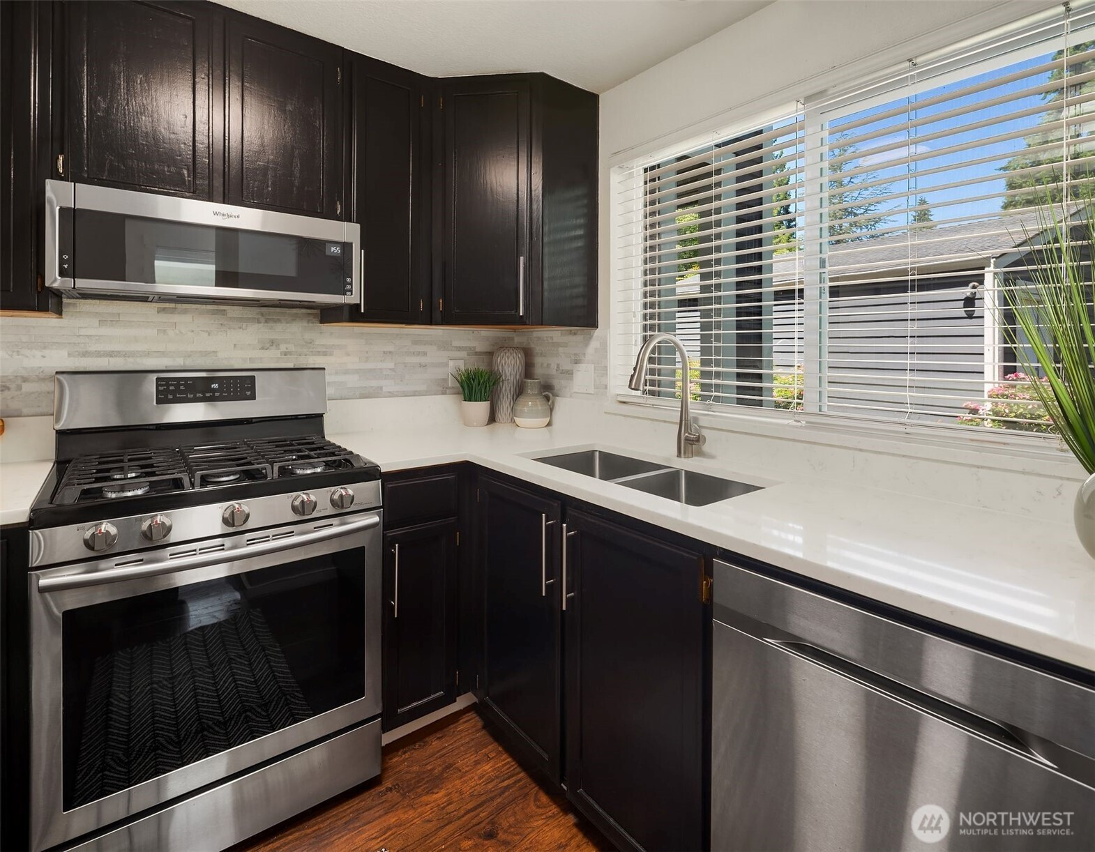 This stylish Kirkland 1BD/1.5 BA townhome blends modern comfort with on-trend design. Soaring ceilings, natural light, & a modern stone fireplace define the open living space. The updated kitchen features quartz countertops, a gas cooktop, & SS appliances. Upstairs, a spacious loft-style primary suite offers a peaceful retreat. Enjoy a sun-filled private patio with a retractable awning, vibrant planters, & Italian string lights for year-round entertaining with friends! Private 2-car garage. Minutes to Google, Kirkland Urban, Met Market, Lake Washington, amazing parks, Kirkland Corridor trail, local shops, & dining with easy access to I-405/520. A rare opportunity you won’t want to miss!!!