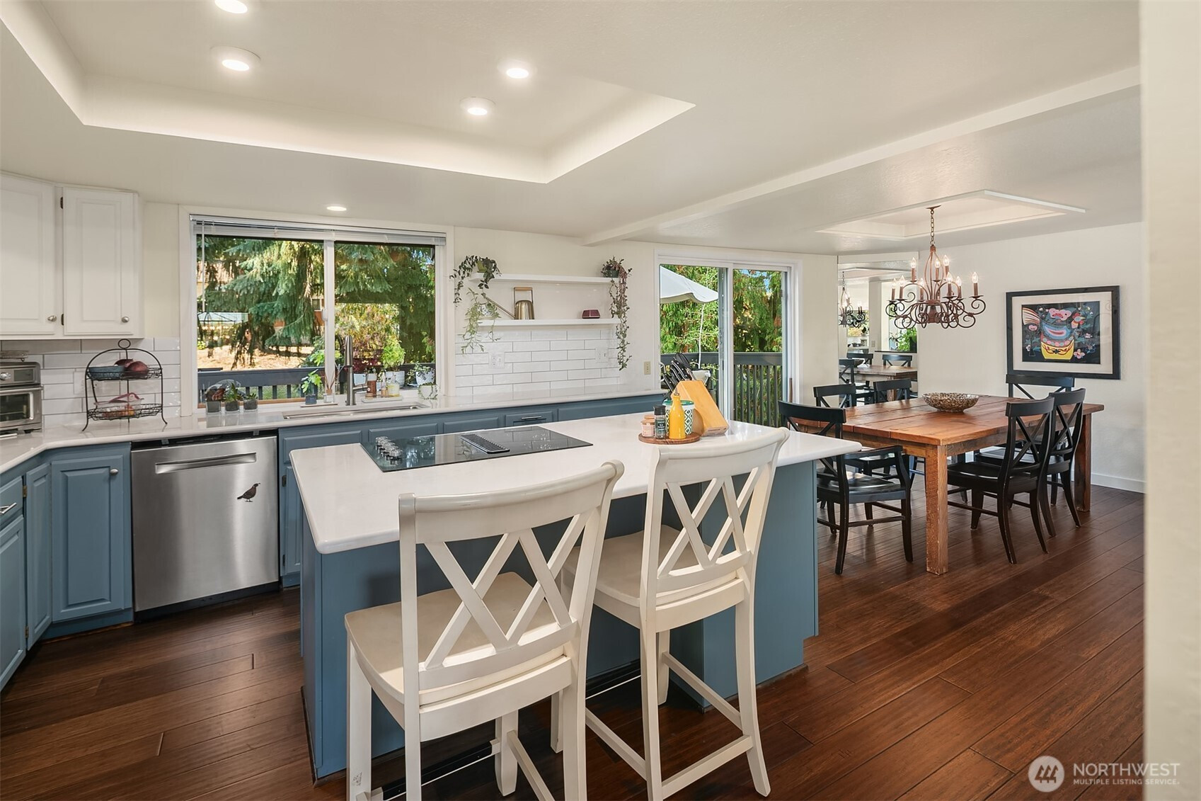 Tucked away in a quiet Seattle cul-de-sac yet close to amenities, this darling updated home offers surprises around every corner. The remastered kitchen features quartz counters, painted cabinets, & engineered flooring throughout the main floor all to accentuate the ideal open-concept for any lifestyle. The sun-filled upstairs family room boasts vaulted ceilings & a cozy fireplace. The primary suite includes a wall of closets & a jetted tub in the ensuite bath. Downstairs offers a spacious great room w/ new carpet, a second fireplace & a versatile layout. A large 4th bdrm, w/ an updated 3/4 bath showcasing granite counters & tile surround shower. Relax, play, garden or BBQ in the flat backyard while enjoying time on the spacious Trex deck.