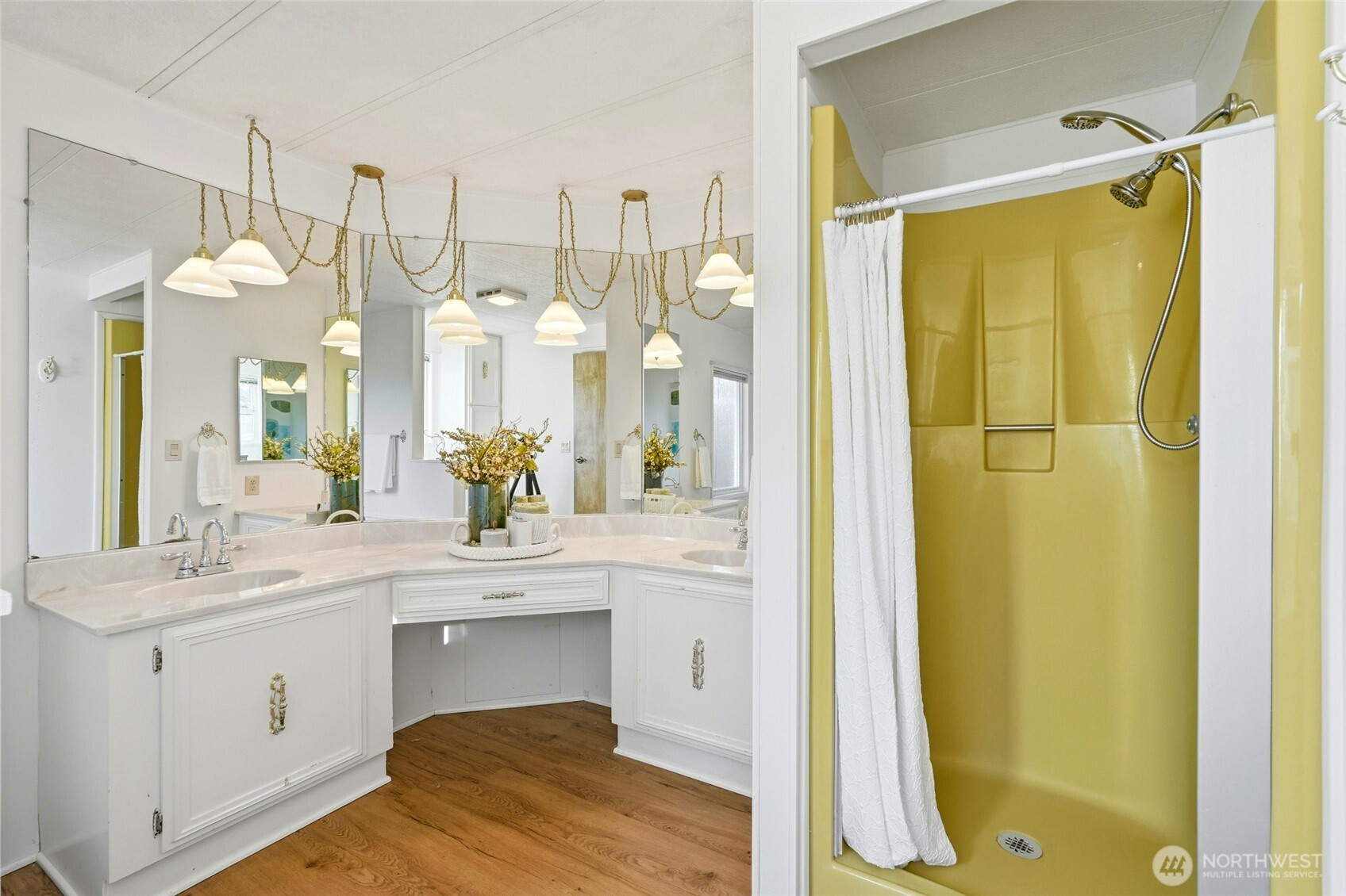 Situated on the largest lot in the neighborhood (1/3 acre), this well-maintained home offers space, privacy, and peace of mind in a desirable 55+ community. Enjoy a fully fenced yard ideal for pets, mature rhododendron landscaping, and a 15x15 shed with 240V power—perfect for hobbies or storage. Major updates include a 15-month-old heat pump (June 2024), newer flooring, exterior paint, and a covered patio with a roof just 3 years old. Water is included in the HOA, with new water lines coming. Community amenities include a swimming pool, clubhouse, and Zippy Fiber. Handicap accessible and move-in ready.