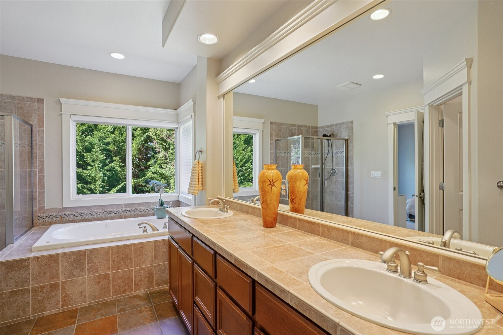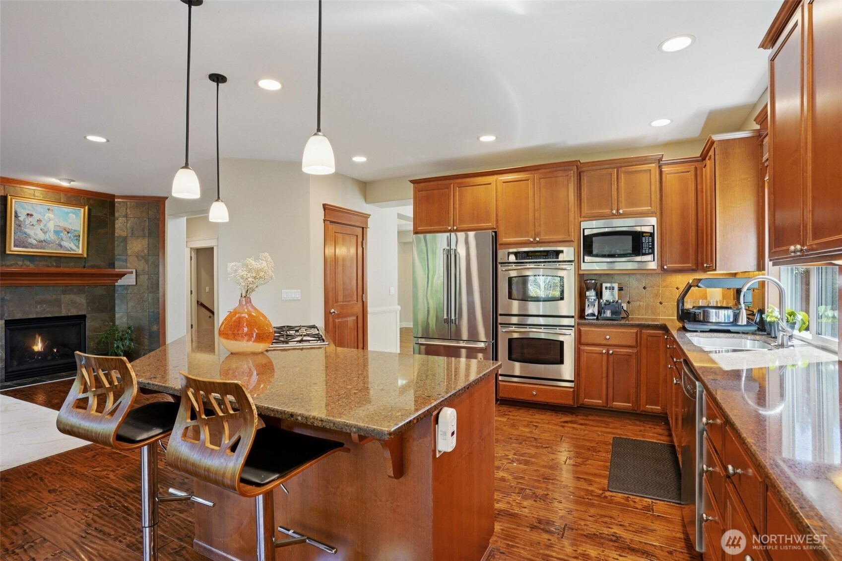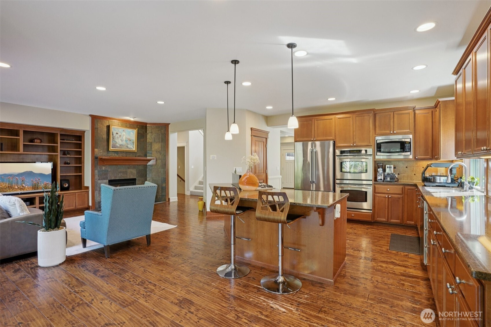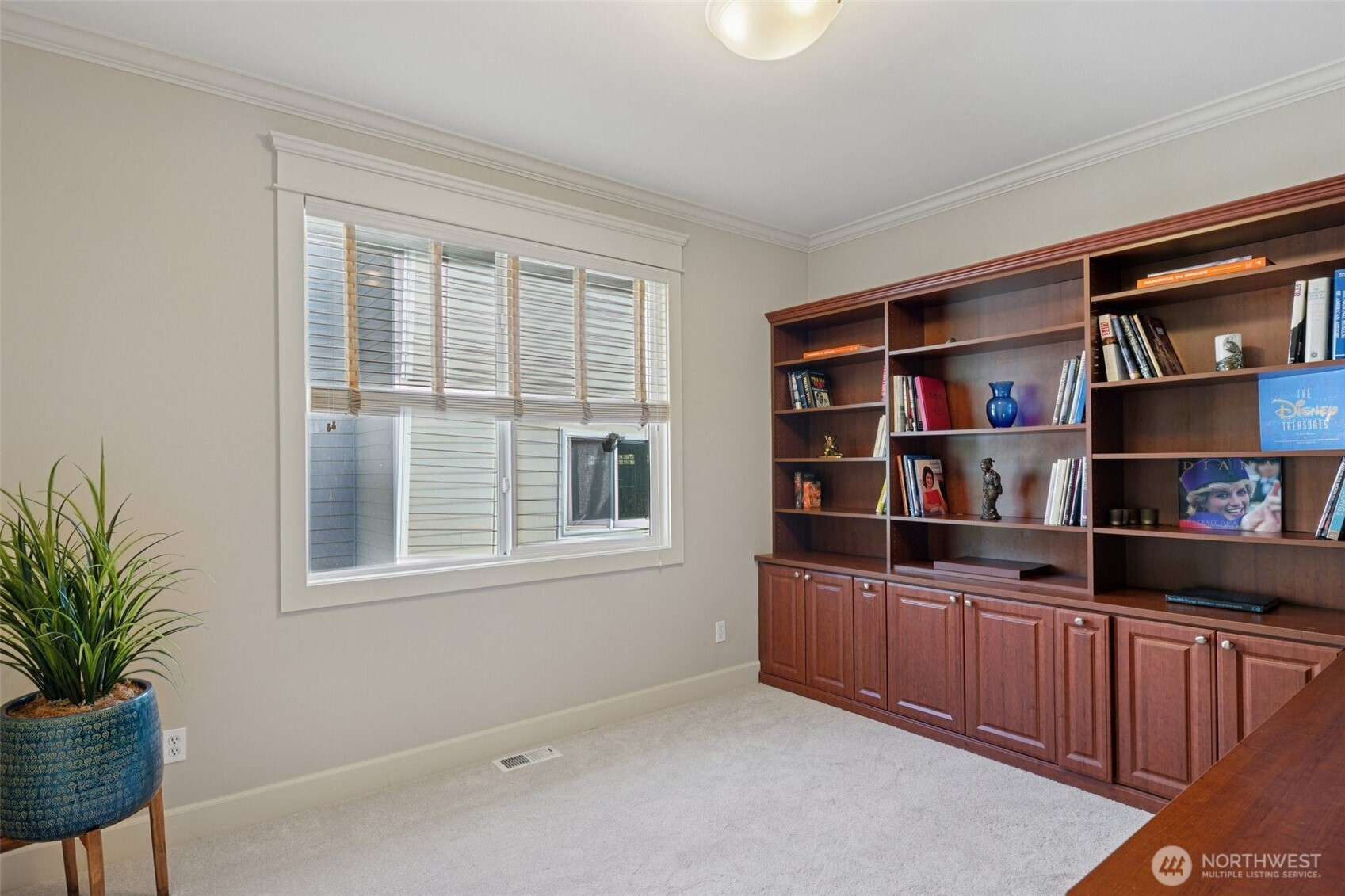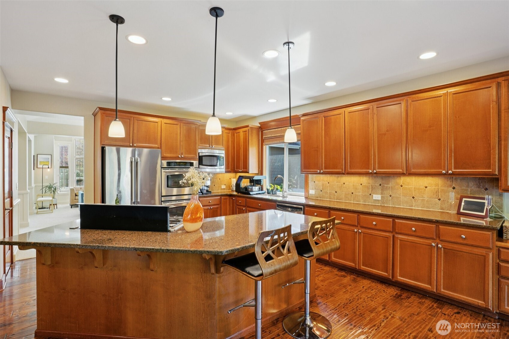 Tucked into the coveted Kensington neighborhood, this Burnstead-built NW Contemporary blends comfort, quality, and thoughtful design. A welcoming entry opens to an airy layout with refined millwork, custom built-ins throughout, and a timeless neutral palette. A separate office and library space provides a quiet, sophisticated sanctuary for remote work or reading. Extra-large windows invite in abundant natural light, enhancing the connection between indoor and outdoor living. The chef's kitchen flows seamlessly into the main living spaces, creating an ideal setting for daily life and gatherings. Generous bedrooms, walk-in closets, and a bright daylight basement — complete with a dedicated media room — provide flexible space for a variety of needs. The main-level primary suite offers a peaceful retreat with privacy and ease. Step outside to a true backyard haven featuring a putting green and meticulously maintained landscaping in both the front and back. Air conditioning and a whole-house generator add year-round comfort to this exceptional home.