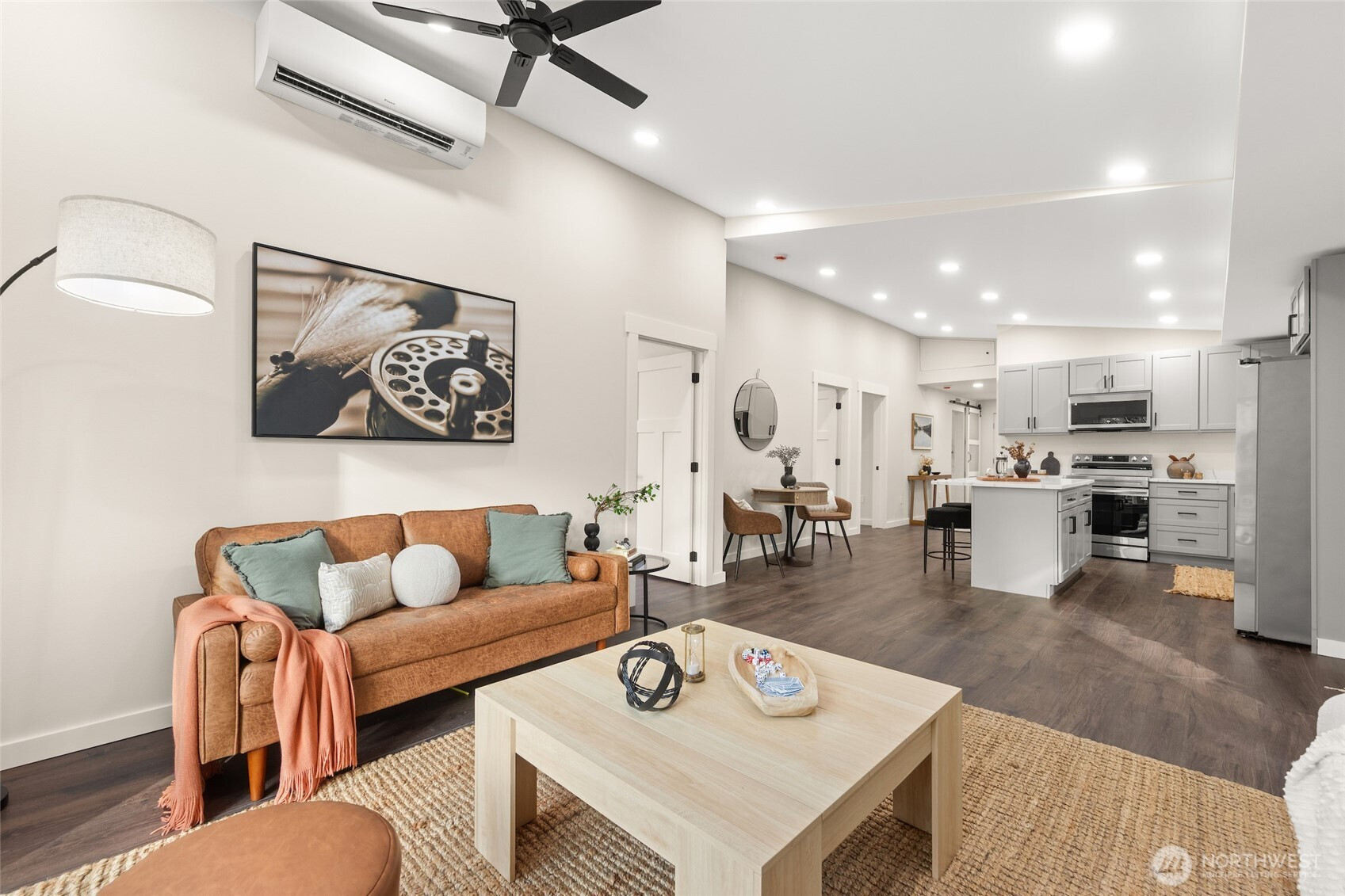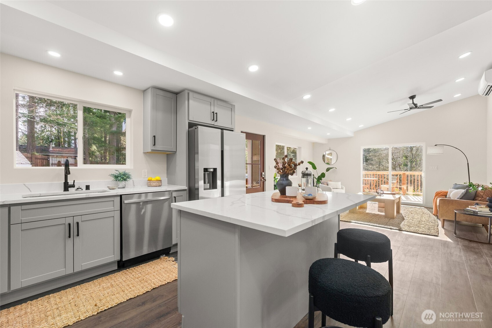 Total WOW factor! Beautifully remodeled 4-bedroom home set on nearly 2 level acres, offering the perfect blend of modern comfort & peaceful country living. This home has been thoughtfully updated with high-end finishes, a contemporary, cohesive design, and brand new appliances throughout, creating a truly move-in-ready experience. The open floor plan feels efficient & bright, allowing natural light to flow freely from one area to the other. The modern kitchen is anchored by a stunning peninsula that defines the space without closing it off, while doubling as prep space and dining. The living room is arranged for comfort without excess. The vaulted ceiling instantly adds a sense of openness, making the space feel larger & more inviting. Sliders provide natural light as well as access to the front deck, perfect for outdoor entertaining! The spacious primary bedroom has enough room to support both comfort & future flexibility of adding a 1/2 or 3/4 bath. Each bedroom has its own mini-split to provide regulated heating & cooling. The spa-inspired bath feels luxurious & boasts a generous walk-in shower with stunning ceramic tiles running floor to ceiling for a seamless look. The free-standing tub becomes the room's focal point, more like a piece of art than a fixture! Outside, enjoy ample parking, finished outbuilding w/electric & heat, RV pad complete w/hookups & separate electric. Plenty of room for gardens or future expansion. A turn-key home that has it all, and so much more!