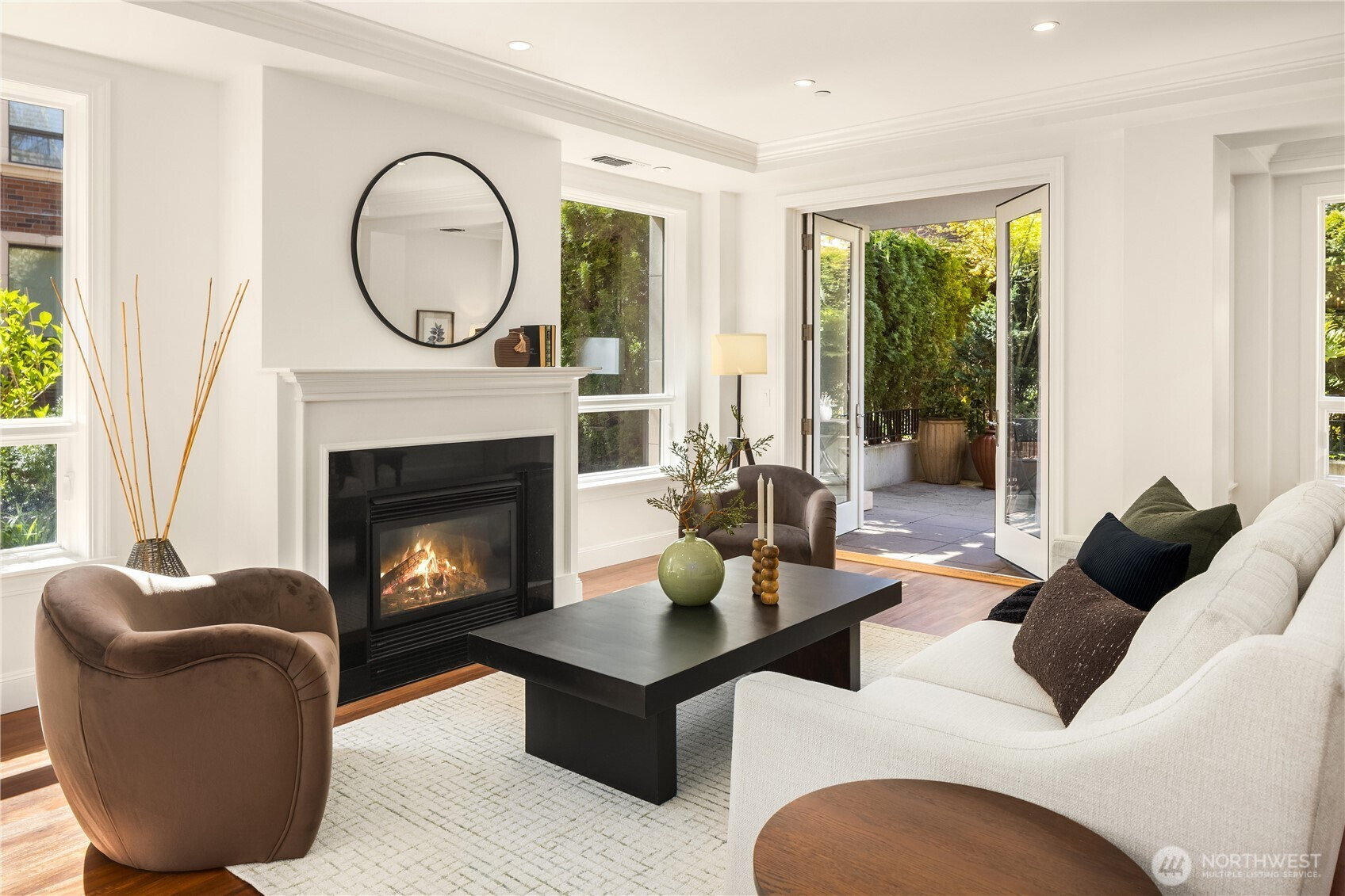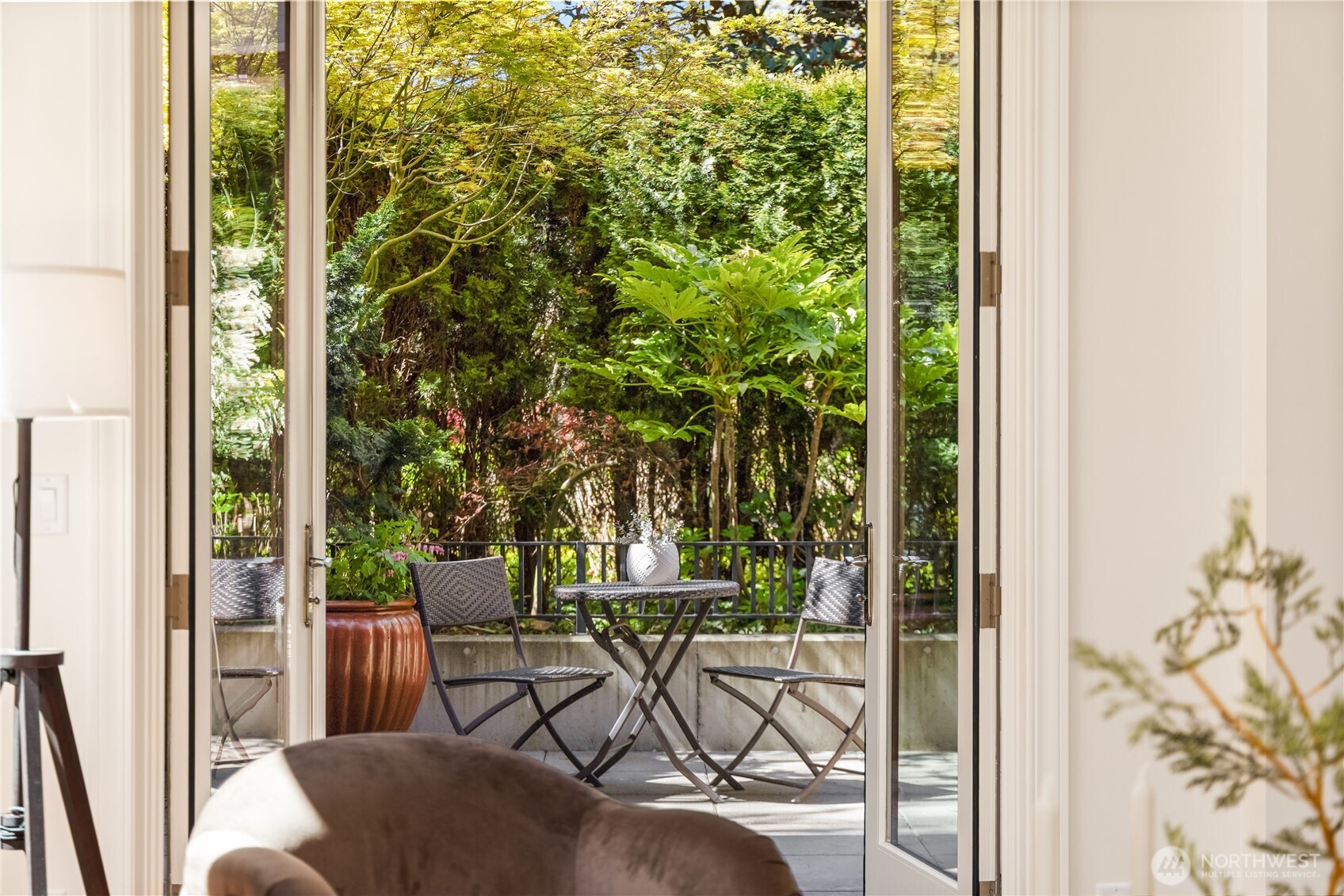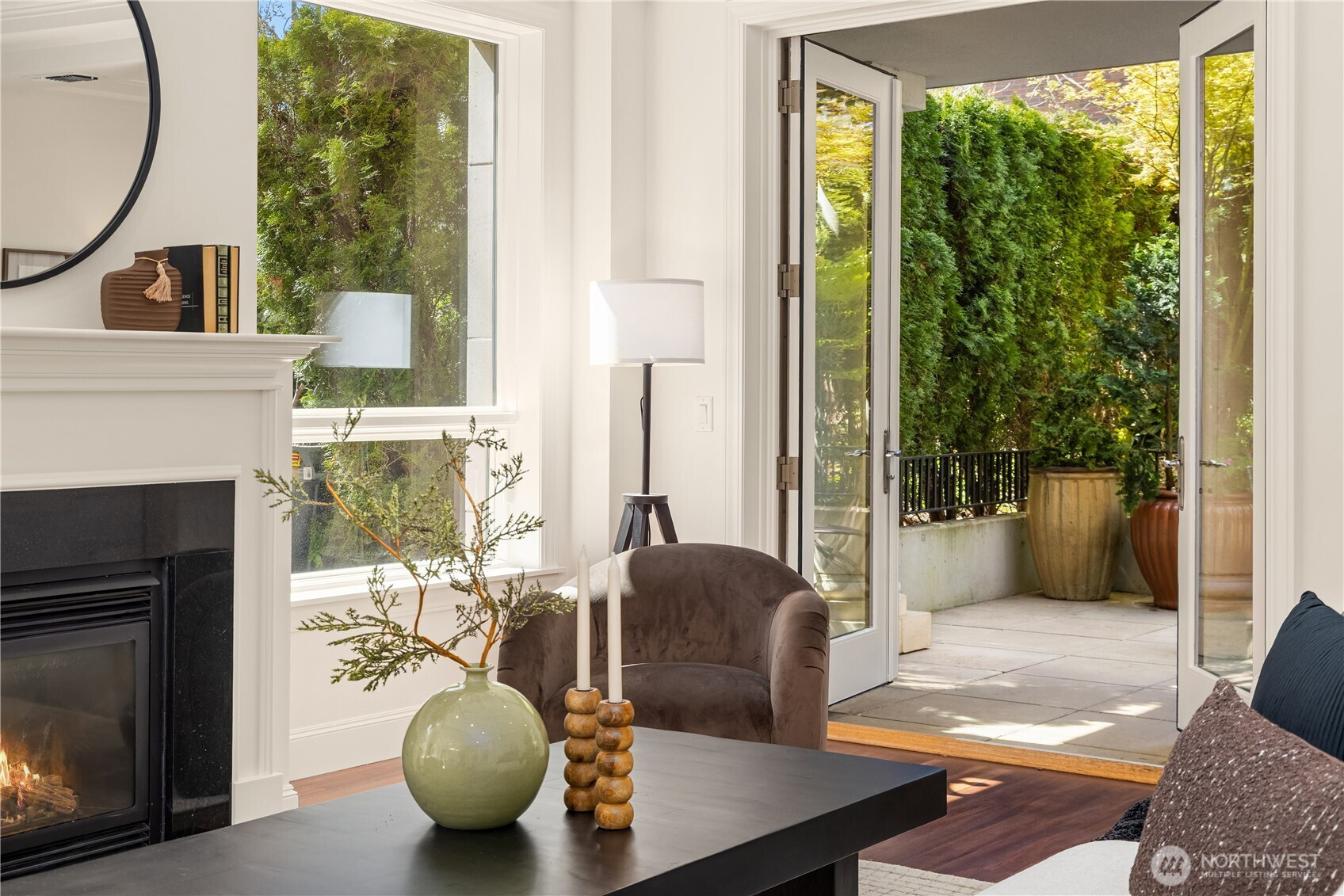 Harvard & Highland // Offering a garden-level residence within the secure and architecturally cohesive Harvard & Highland, ideally positioned on the north slope of Capitol Hill. The interiors are defined by a clean, functional layout with hardwood flooring, a well-appointed kitchen with stone surfaces and gas range, and open living and dining spaces that connect seamlessly to two private patios. Framed by mature landscaping, the outdoor spaces provide a rare sense of privacy and a true extension of the home within Seattle’s urban core, with enough scale and coverage to function as usable, day-to-day living areas. The primary suite is quietly situated with a walk-in closet and en suite bath, complemented by a secondary bedroom suitable for guests or a dedicated workspace. Both rooms are positioned with separation from the main living areas, supporting a practical and comfortable layout. Set within a gated, well-maintained building with classic brick and stone detailing, the residence reflects a level of construction and design consistency that is increasingly uncommon in newer product. The building’s scale and ownership profile read as stable and established, with a clear emphasis on long-term maintenance and cohesion. Positioned just above the city core, the location offers immediate access to Lake Union, downtown Seattle, and South Lake Union, while maintaining a quieter, more residential environment.
