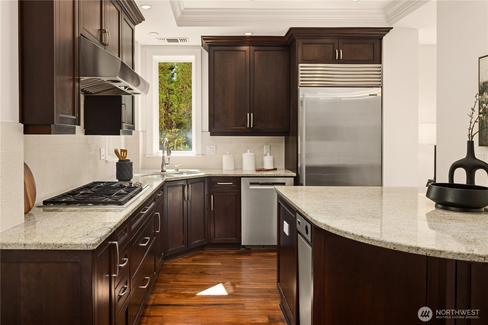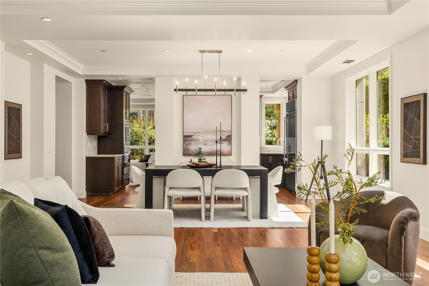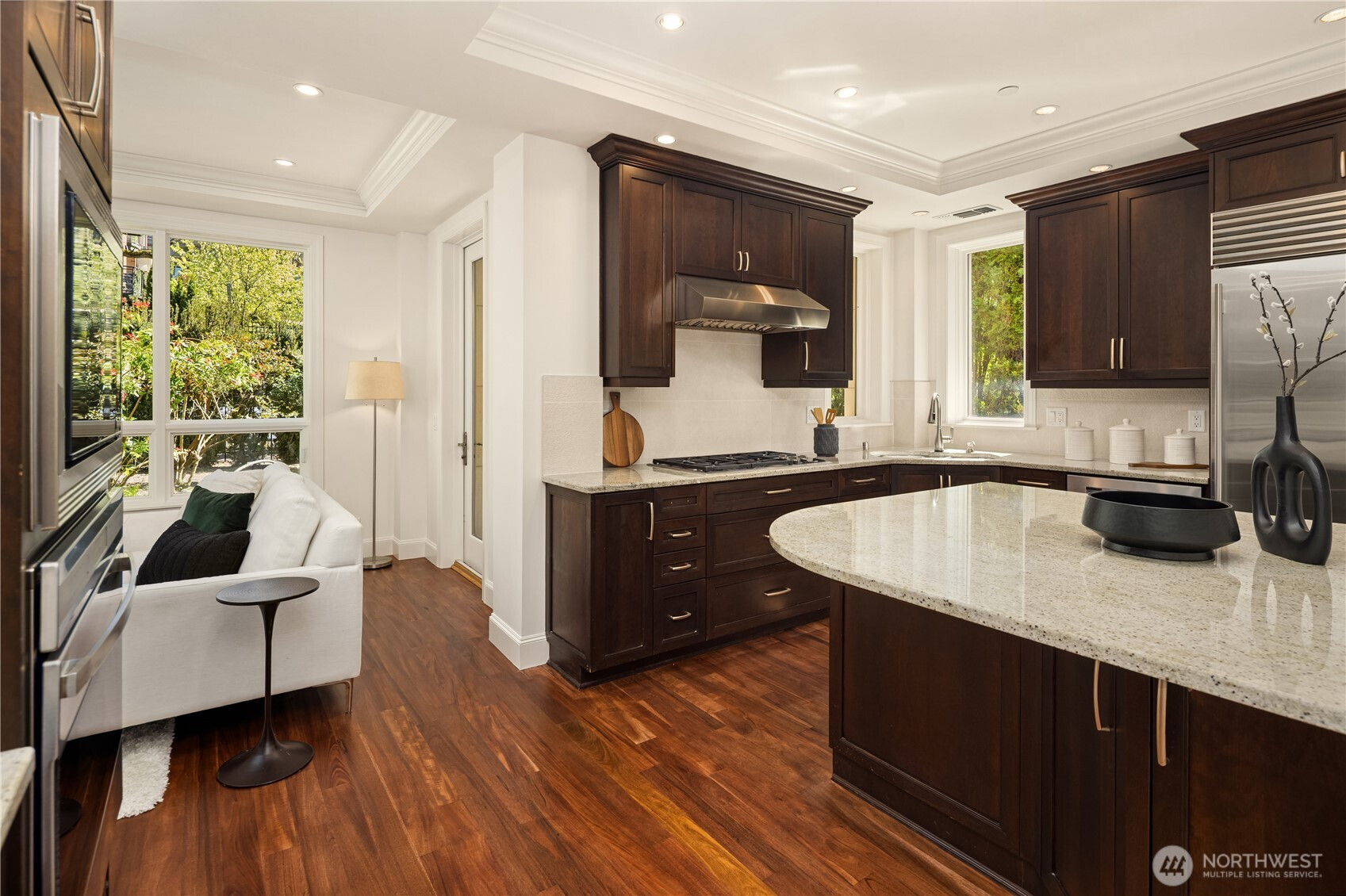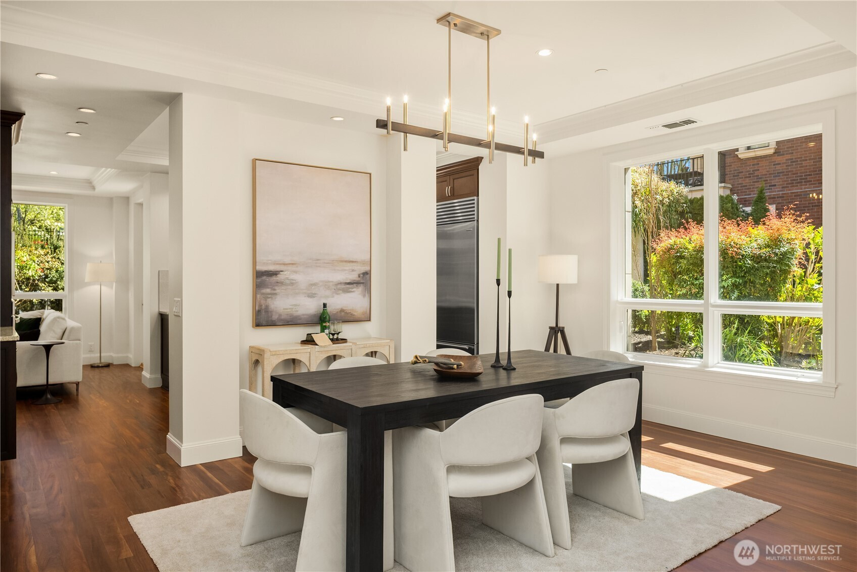 Harvard & Highland // Offering a garden-level residence within the secure and architecturally cohesive Harvard & Highland, ideally positioned on the north slope of Capitol Hill. The interiors are defined by a clean, functional layout with hardwood flooring, a well-appointed kitchen with stone surfaces and gas range, and open living and dining spaces that connect seamlessly to two private patios. Framed by mature landscaping, the outdoor spaces provide a rare sense of privacy and a true extension of the home within Seattle’s urban core, with enough scale and coverage to function as usable, day-to-day living areas. The primary suite is quietly situated with a walk-in closet and en suite bath, complemented by a secondary bedroom suitable for guests or a dedicated workspace. Both rooms are positioned with separation from the main living areas, supporting a practical and comfortable layout. Set within a gated, well-maintained building with classic brick and stone detailing, the residence reflects a level of construction and design consistency that is increasingly uncommon in newer product. The building’s scale and ownership profile read as stable and established, with a clear emphasis on long-term maintenance and cohesion. Positioned just above the city core, the location offers immediate access to Lake Union, downtown Seattle, and South Lake Union, while maintaining a quieter, more residential environment.