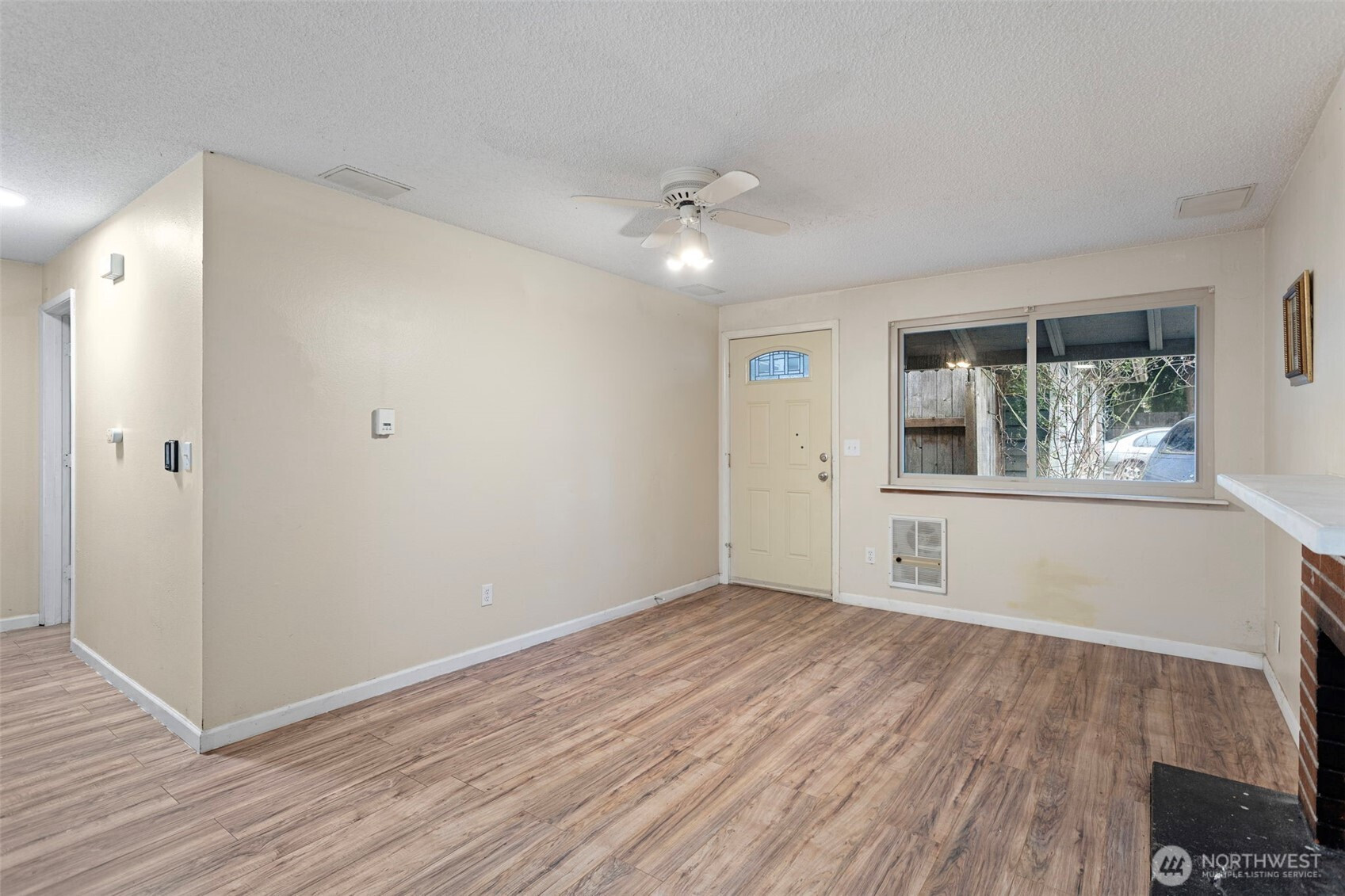 Steps from Green River College—perfect for rental income or owner living. This versatile 4 bedroom, 1.75 bath rambler offers 1,140 sq ft of single-level comfort on a private corner cul-de-sac lot. Features include laminate flooring, a wood-burning fireplace, and appliances included. Primary suite plus three additional bedrooms provide flexibility for work, guests, or roommates. Attached garage adds storage and parking. Move-in ready with room to add your finishing touches and build equity. Convenient location close to schools, parks, shopping, and transit.