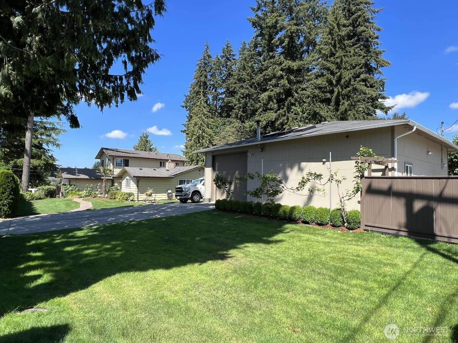 Beautiful property, situated in great area of Kent East Hill. Fully remodeled, move-in ready Custom Home located in NR2 zoning with excellent multifamily and ADU potential. This 2,400 sq ft home features 5 bedrooms, 3 custom bathrooms, and a European-inspired design throughout. Updated kitchen includes granite countertops, full backsplash, and heated tile floors. The property offers a unique outdoor setting with an orchard, vineyard, and vegetable garden. Includes a 1,200 sq ft detached building with new roof and full utilities (1/2 bath, office, storage) —previously used as an office, and business headquarters with ADU or Guest House potential. Two-lot subdivision possible. Additional features: whole-house generator, new heat pump, sprinkler system, Trex deck, 3 sheds, RV dump, and ample parking. The House was previously AFH licensed (WABO approved), ready for re-licensing. Great opportunity for residential living, rental income, or business use.