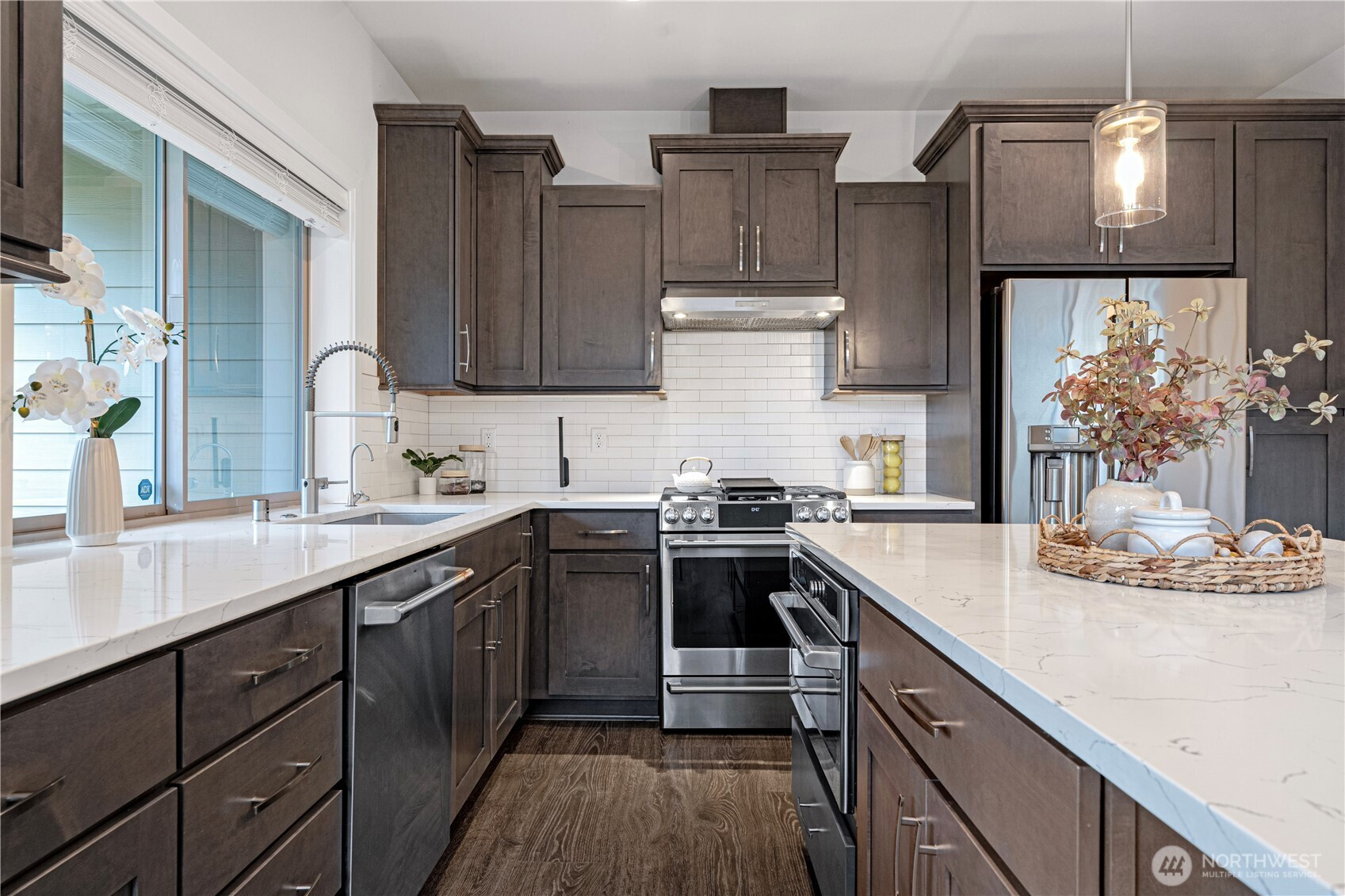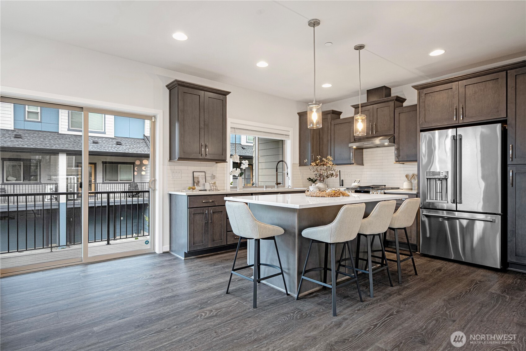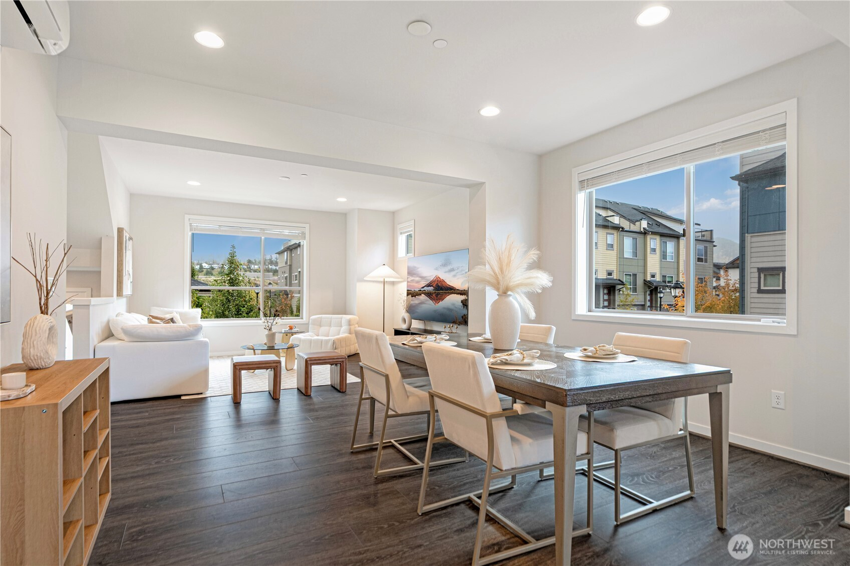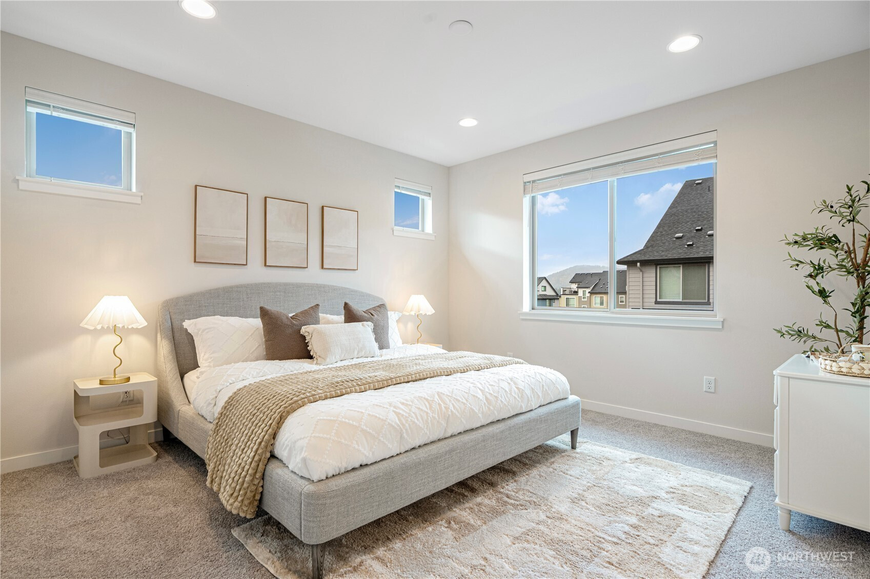 Welcome to this exceptional end-unit townhome in Westridge Community at Issaquah Highlands! Enjoy breathtaking sunsets, & the surrounding mountains from this spacious and light-filled 4-bed, 4.5-bath home. The open-concept main level features a gourmet kitchen w/ SS appliances & Quartz countertop , seamlessly flowing into inviting living, dining & deck. Upstairs, retreat to luxe primary suite w/walk-in closet & 2 generous bedrooms. The top-floor bonus rm opens to a private rooftop sundeck. Lower level offers a large office/guest en-suite extending to a patio. Large side by side 2-car garage with EV charger & storage space. Quick access to shopping, dining, parks and I-90. No rental cap.