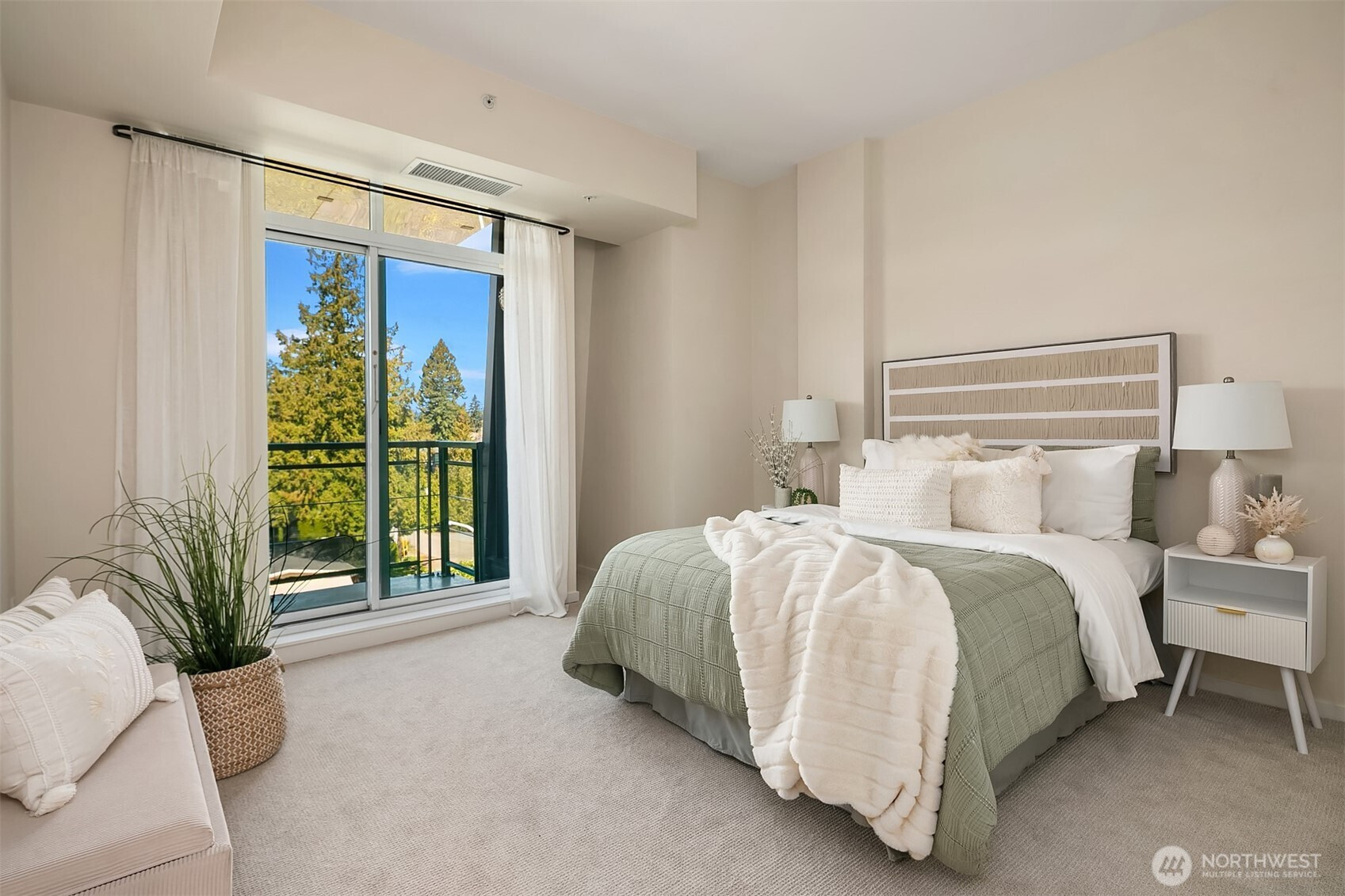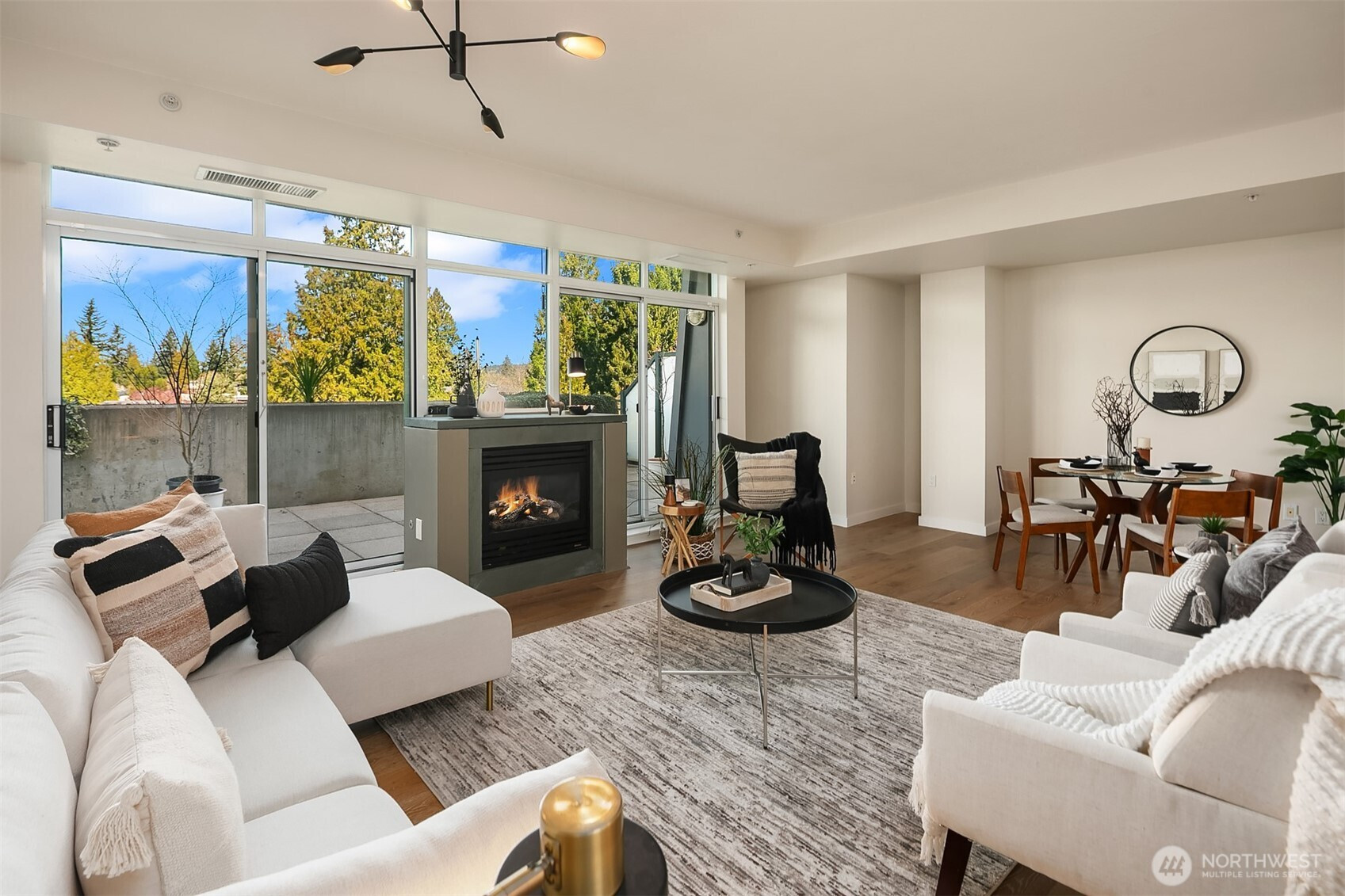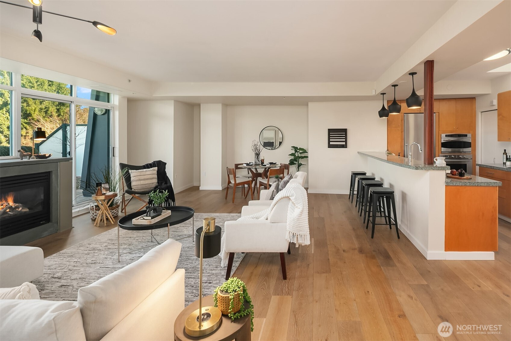 Stunning Palazzo penthouse offering exceptional light, space, and modern comfort. Floor-to-ceiling windows and a dramatic skylight fill the living spaces with abundant natural light. Thoughtfully designed Kitchen with a gas cooktop, built-in oven, granite countertops, and a walk-in pantry. Open concept living w beautiful hardwoods, gas fireplace and opens to an expansive private terrace (approx 400 sq ft) with territorial views is perfect for seamless indoor-outdoor living and entertaining. Conveniently located bathroom off living space. Both bedrooms feature brand new carpet and are situated on the upper level, each offering a private en-suite bathroom, ample closet space and its own balcony. Secure garage with two parking spaces and extra storage. Premium amenities w a full-time concierge, business center, and fitness center. No rental cap. Walking distance to shops, parks, restaurants and everything Downtown Bellevue has to offer!