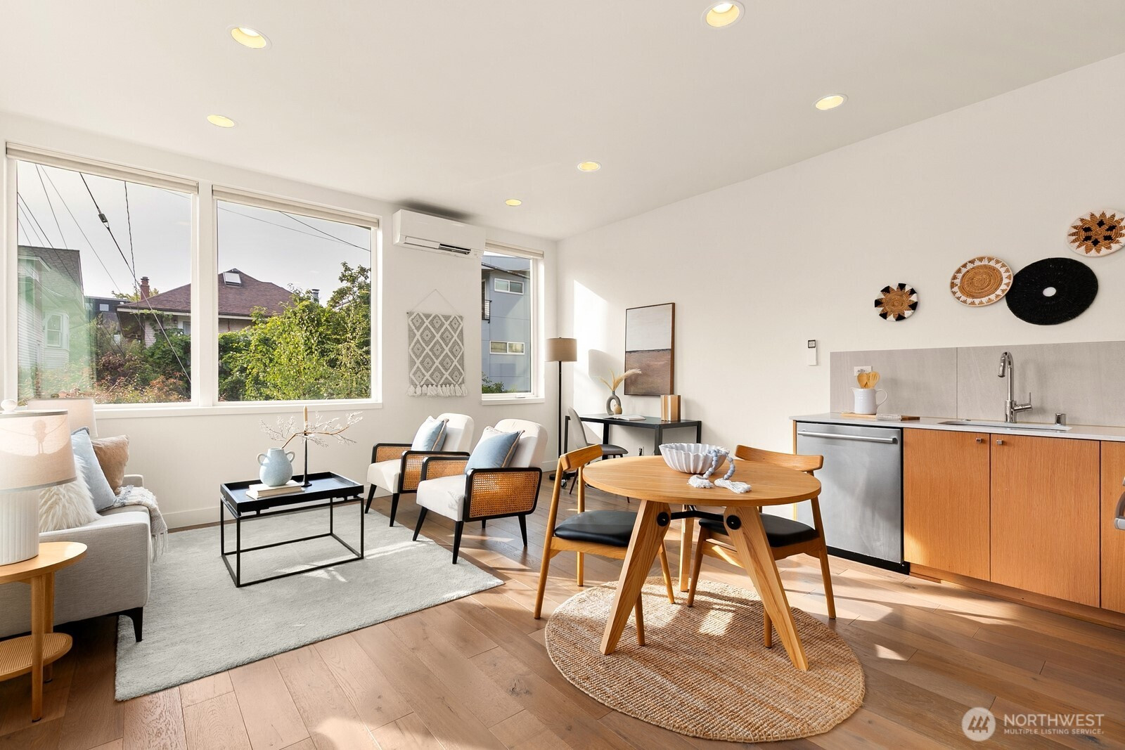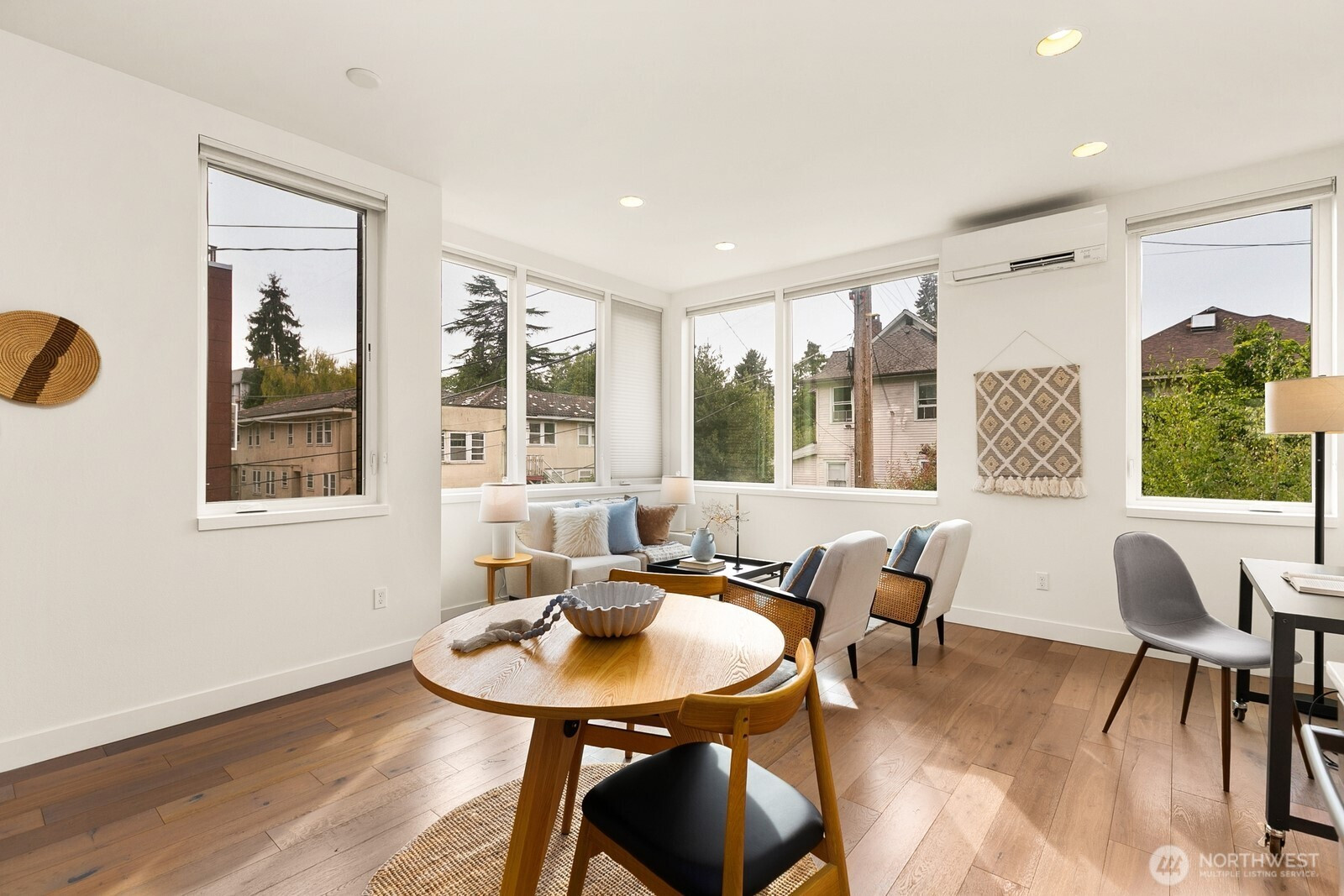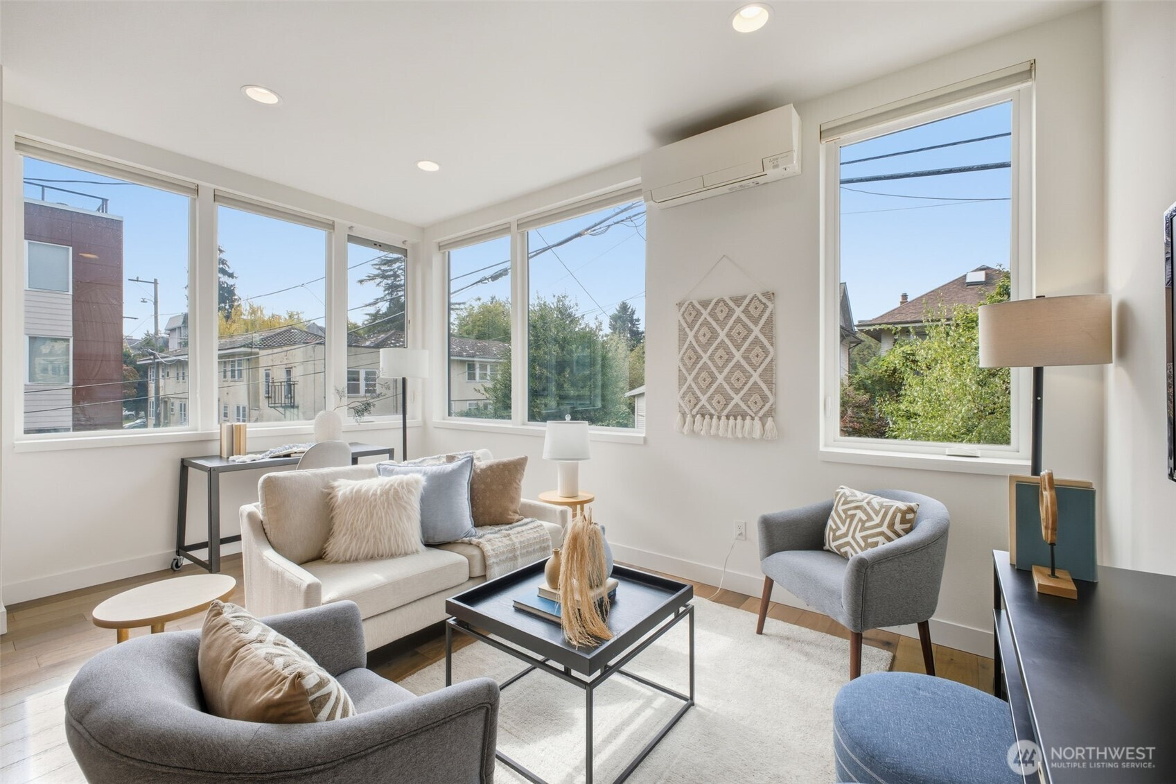 Live in the heart of Cap Hill in this move-in ready home filled w/light & a 93 walk score close to shops, great dining, parks & nightlife galore. There's a larger bdrm w/en suite bath on the entry level to use as a full-time bdrm, 2nd office, or guest suite. Up to your main living, dining & kitchen spaces oversized for your imagination to spread out. In your modern kitchen you'll find Bosch stainless appliances, caesarstone countertops & an open vibe. Then up to your Primary suite w/a huge en suite bath w/heated floors & walk-in closet. Make sure to enjoy the epic views from your entertaining rooftop w/addt'l storage. Stay cool/warm w/mini-splits on top two levels. You'll also find excellent storage throughout this home w/no HOA dues!