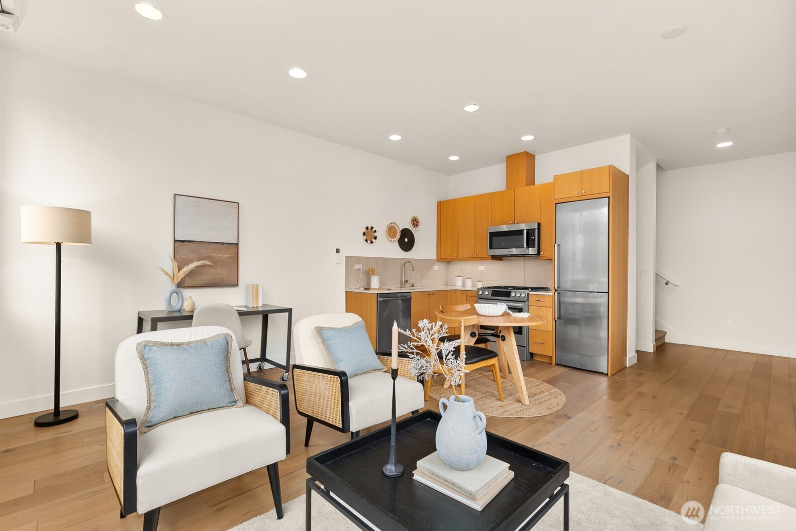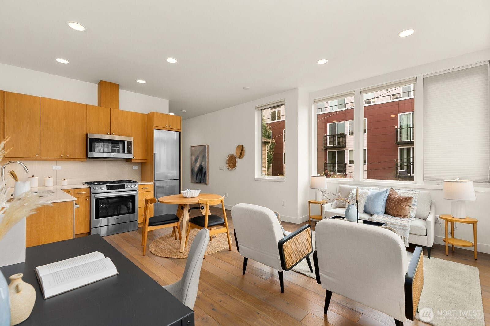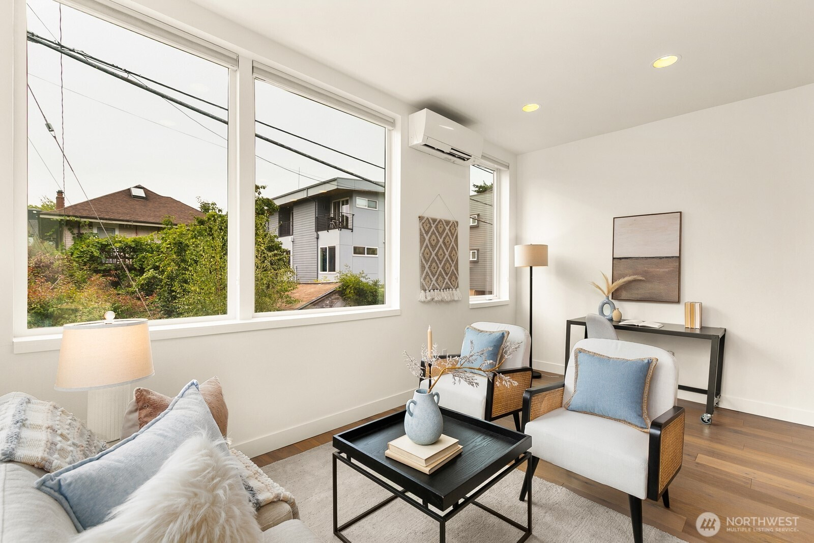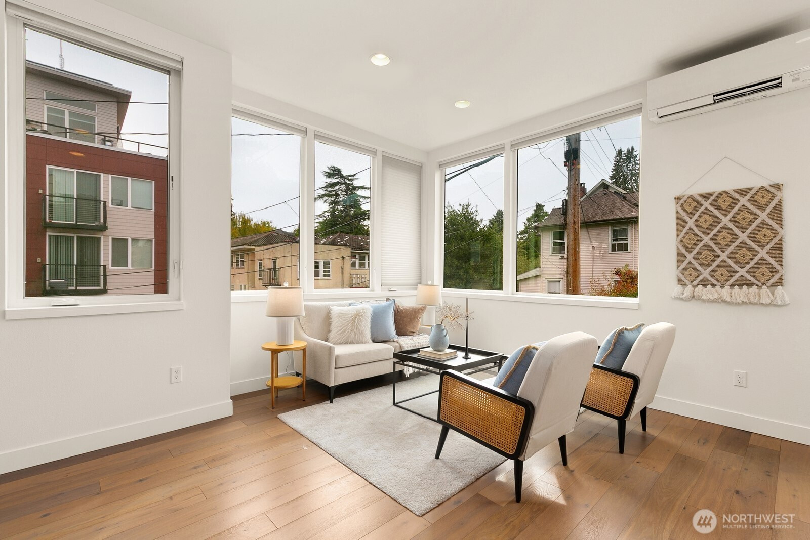 Live in the heart of Cap Hill in this move-in ready home filled w/light & a 93 walk score close to shops, great dining, parks & nightlife galore. There's a larger bdrm w/en suite bath on the entry level to use as a full-time bdrm, 2nd office, or guest suite. Up to your main living, dining & kitchen spaces oversized for your imagination to spread out. In your modern kitchen you'll find Bosch stainless appliances, caesarstone countertops & an open vibe. Then up to your Primary suite w/a huge en suite bath w/heated floors & walk-in closet. Make sure to enjoy the epic views from your entertaining rooftop w/addt'l storage. Stay cool/warm w/mini-splits on top two levels. You'll also find excellent storage throughout this home w/no HOA dues!
