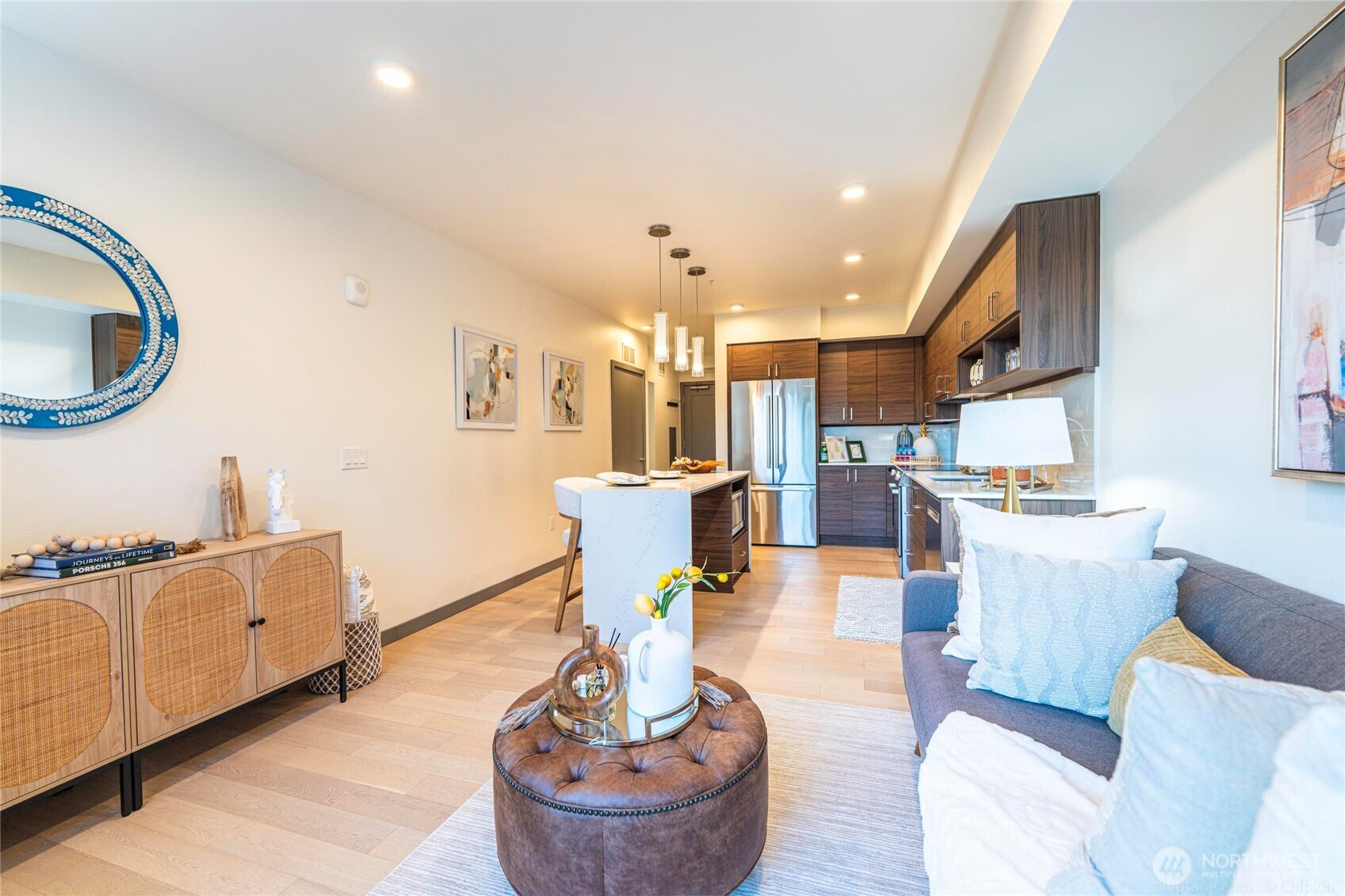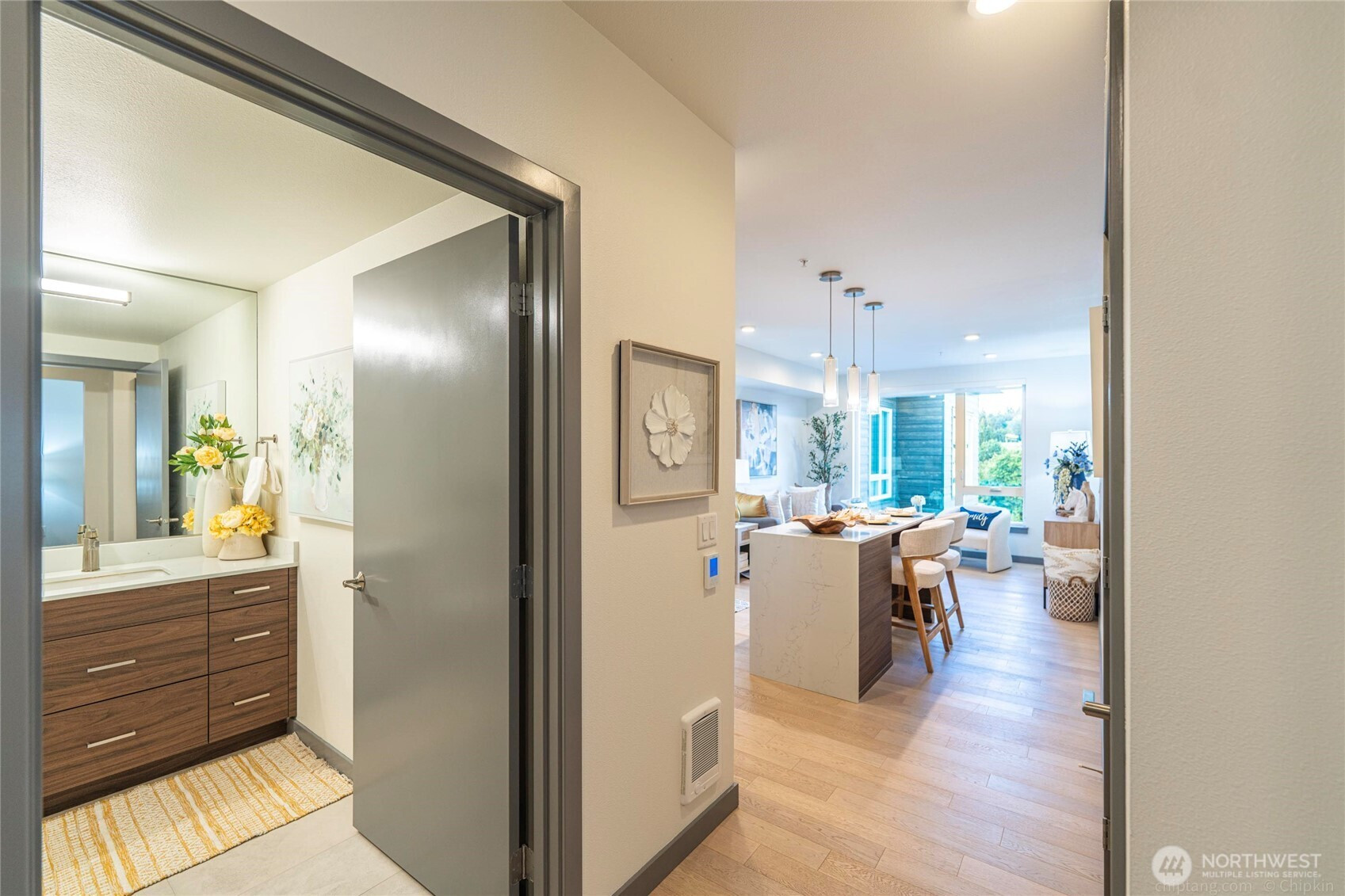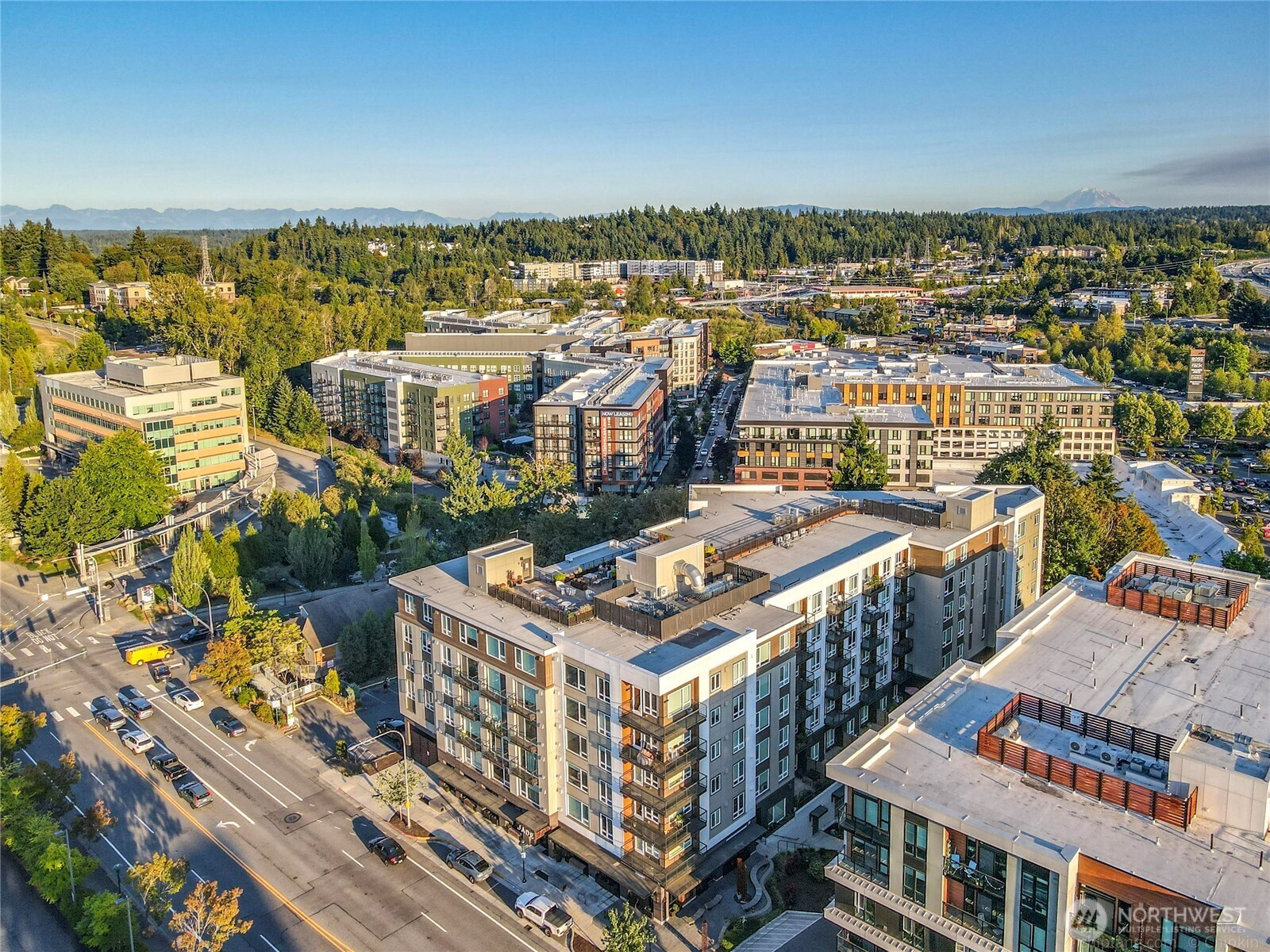 Welcome to Jade, your amazing urban oasis in Kirkland. This stunning east facing TOP FLOOR unit features soaring 9-ft ceiling, high-end appliances & an airy atmosphere. The modern interior boasts sleek finishes & contemporary design. Perfect for both relaxation & entertaining. Abundance of natural light streaming in through the large window. Located in a vibrant neighborhood, this home is ideal for those seeking the perfect blend of comfort & social living. Enjoy resort-style amenities: clubroom, gym, view rooftop deck, concierge, package lockers, dog wash, bike storage, EV charging. The Village at TotemLk & Evergreen Medical Ctr, Park/Ride off 405 is steps away, major tech hubs GOOG, META, AMZN, MSFT. Top Lake Washington school district.