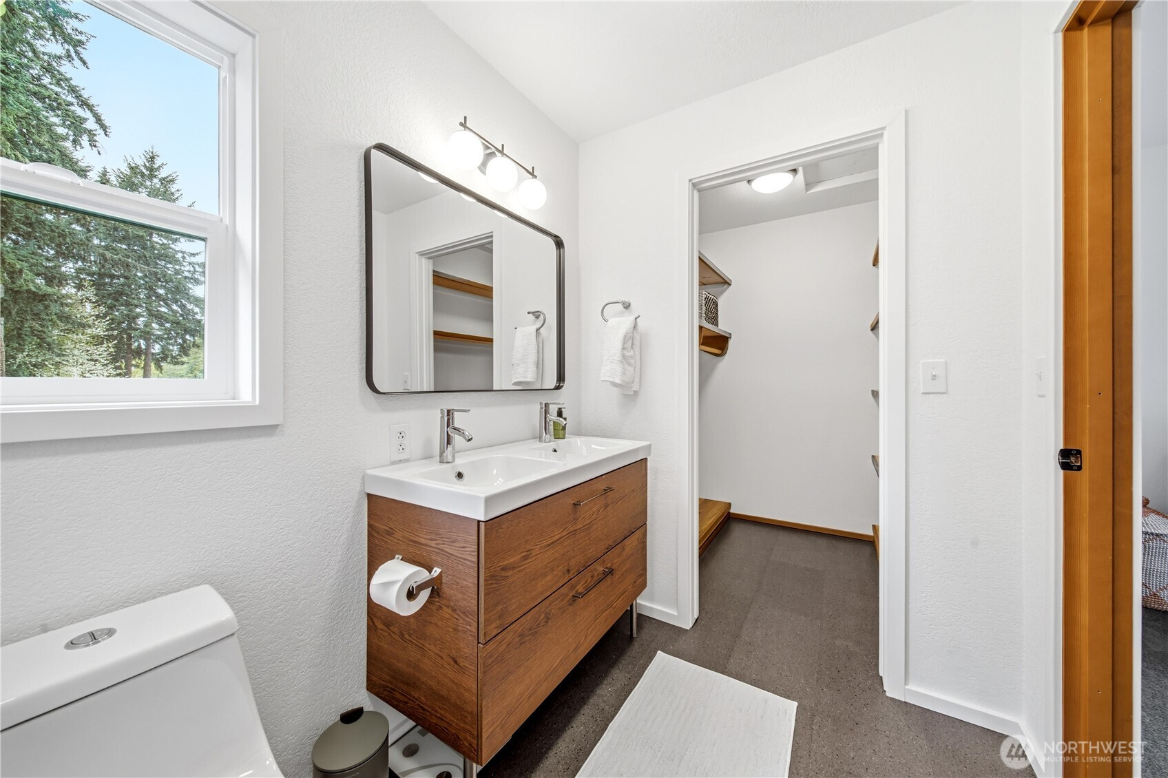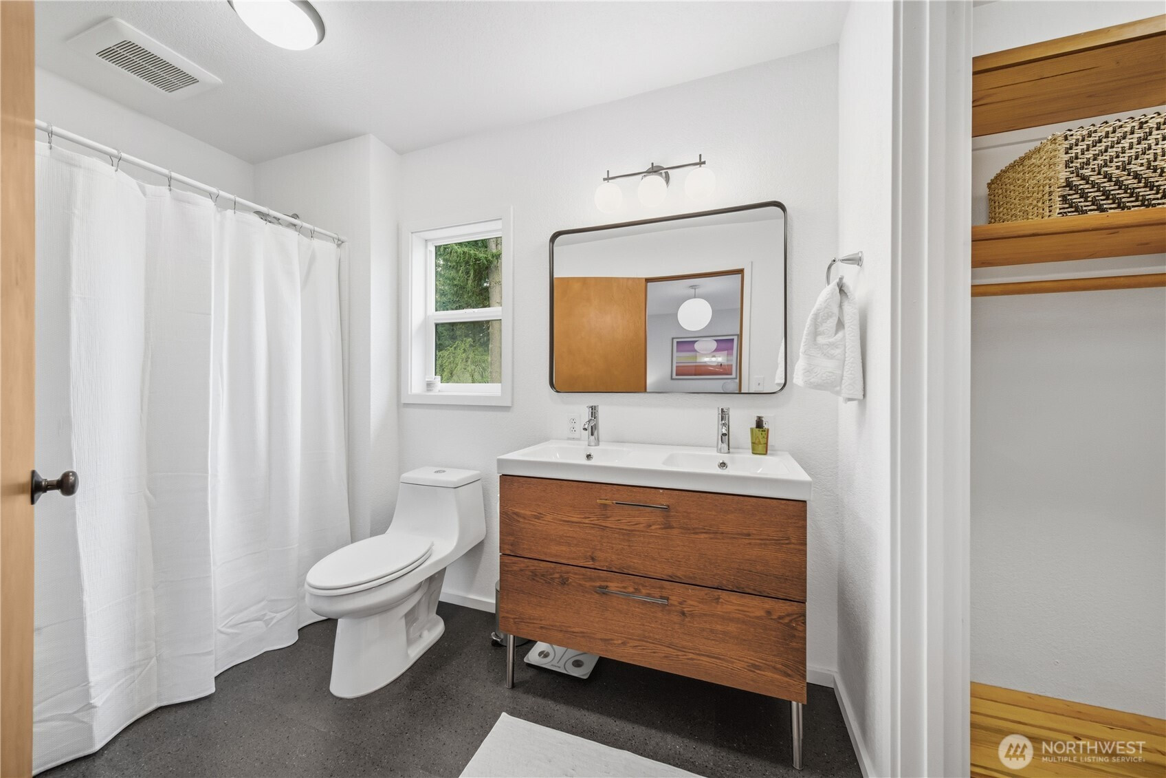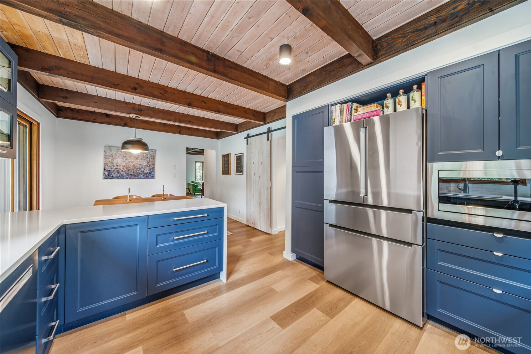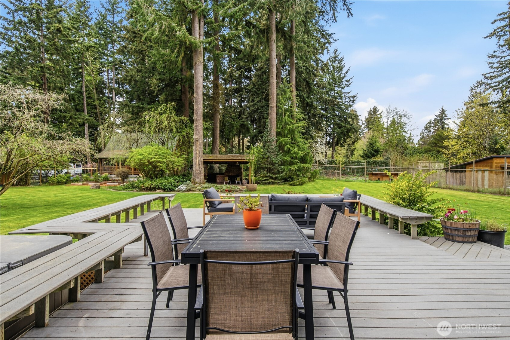 Mid-century modern Vashon retreat blending island living with elevated design. This 3 bed, 3 bath home offers 2,380 sq ft is in immaculate condition with vaulted wood beamed ceilings, warm architectural lines, and seamless indoor-outdoor flow. Set on a large, private, park-like double lot surrounded by mature trees, curated landscaping, garden beds, and a fully fenced backyard. Entertain on the expansive deck or host grilling sessions and fireside chats at the covered backyard BBQ area. Relax in the hot tub on the back deck, and host friends weekends away with a private guest suite on the main floor. A detached studio features wood-burning stove and vinyl wood plank flooring. Ideal for creative space, gym or yoga, or whatever else you can dream up. The expansive kitchen features a chefs dream of counter space, built-ins, and high end appliances with in a well crafted design. Wake up each day in you large primary suite with spa bathroom and large closet with built-ins and head over to be inspired in your forest view office. Built for comfort, privacy, and connection to nature. Just minutes from the ferry to Seattle, local shops, dining, and all that Vashon has to offer. An exceptional balance of tranquility, style, and convenience. Homes like this don’t happen often.