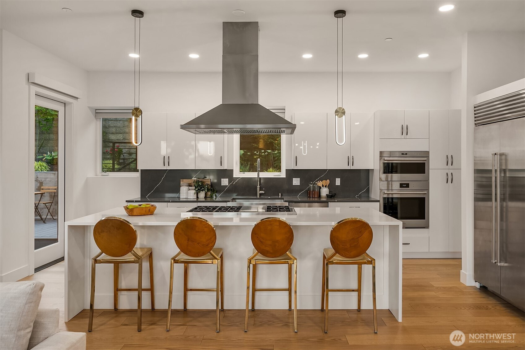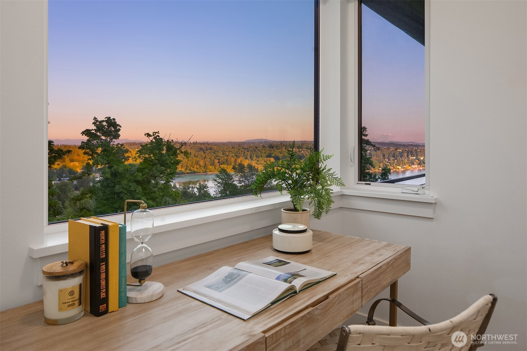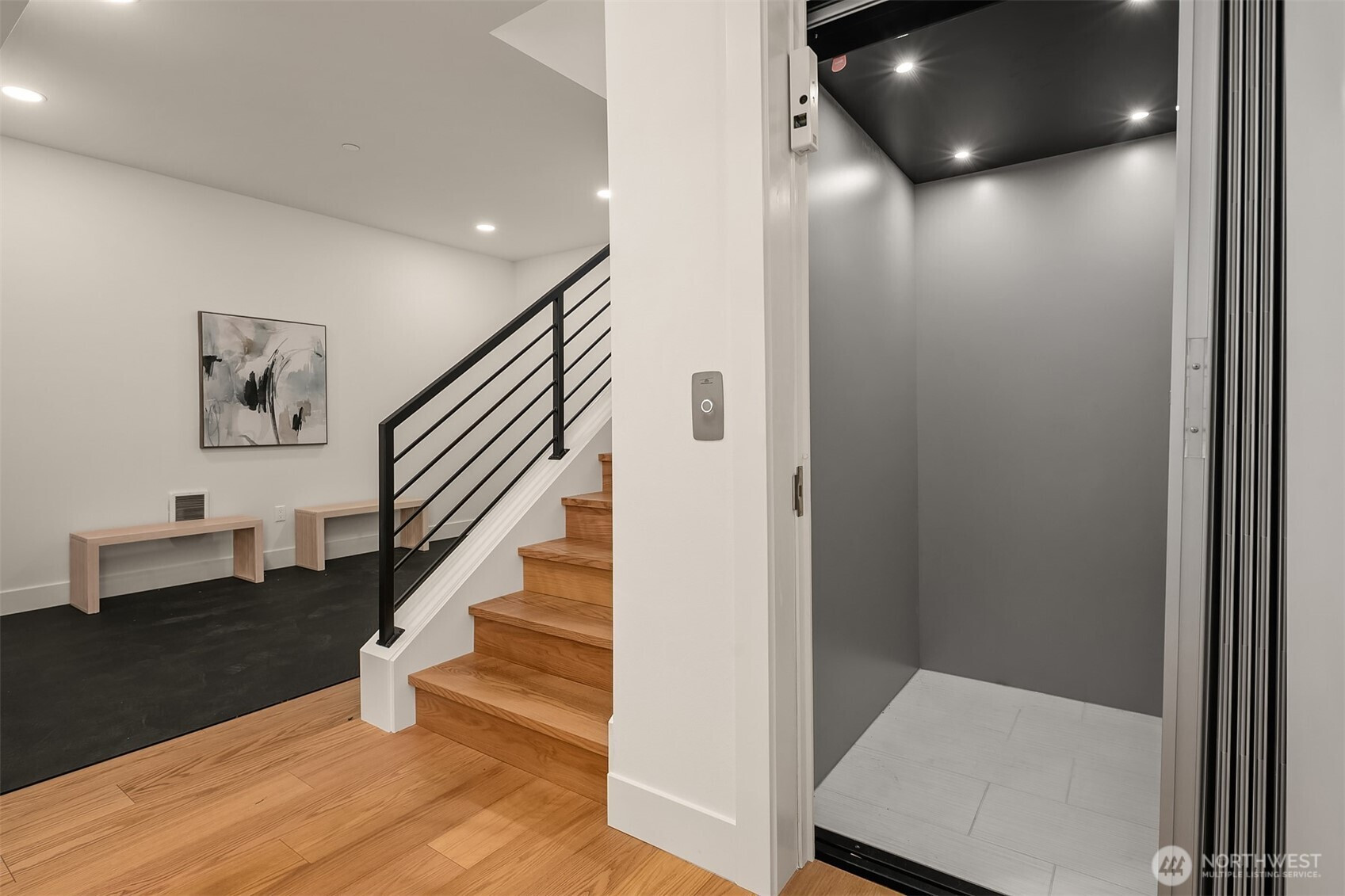 Perched near the peak of Kirkland’s coveted Goat Hill, this modern view home by Foundation Development blends luxury and convenience. Enjoy sweeping Lake, Mount Rainier, and City vistas from multiple levels, including the two expansive covered decks that create seamless indoor-outdoor living. The private elevator ensures effortless access, including a versatile ADU with second kitchen. Details include upgraded landscaping in the front and rear, security cameras, and Deeded access to a private beach on Lake Washington just moments away. With contemporary design, premium finishes that include Wolf/Sub-Zero appliances, and a location that captures both privacy and proximity, this home is a rare find for those seeking refined Northwest living.