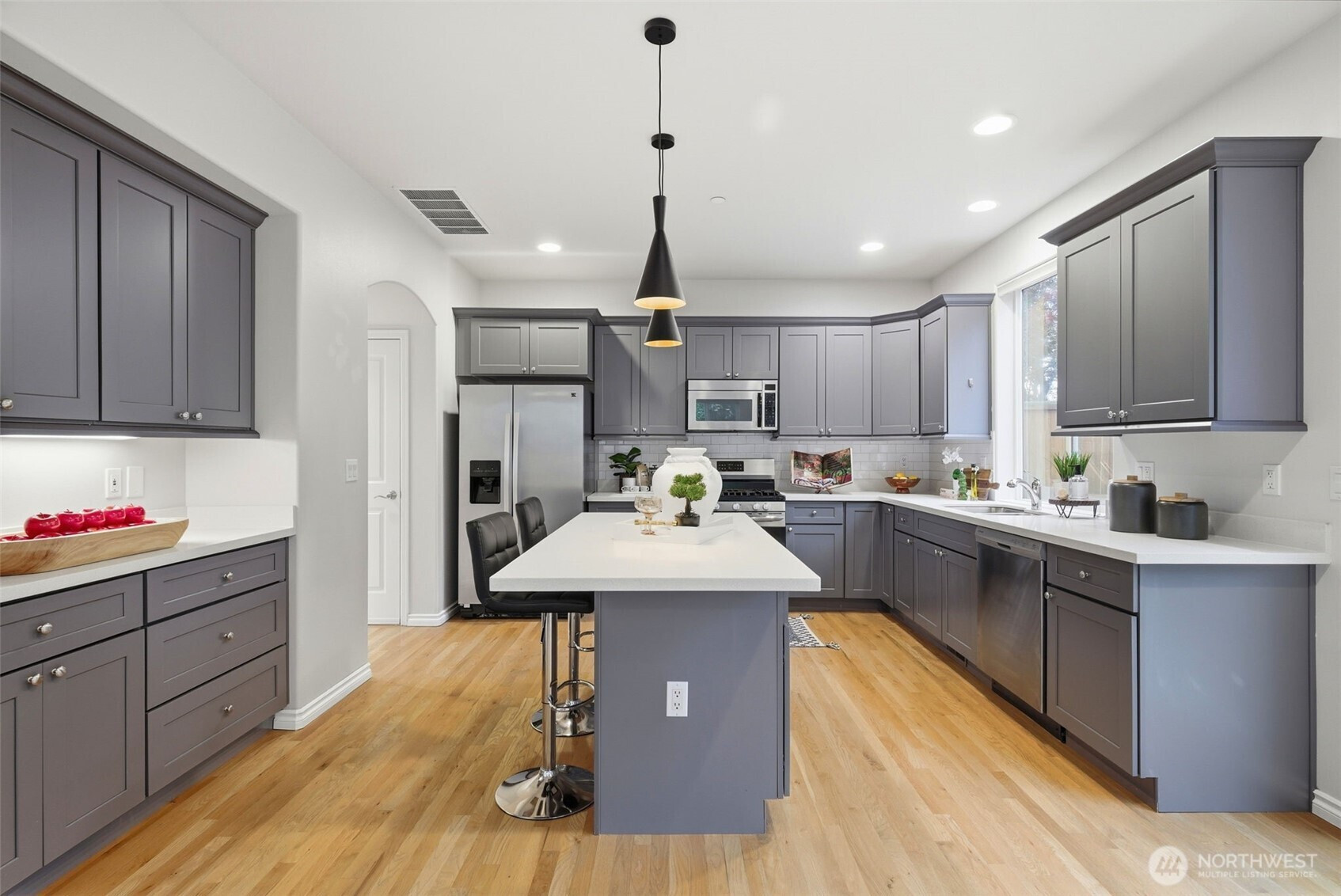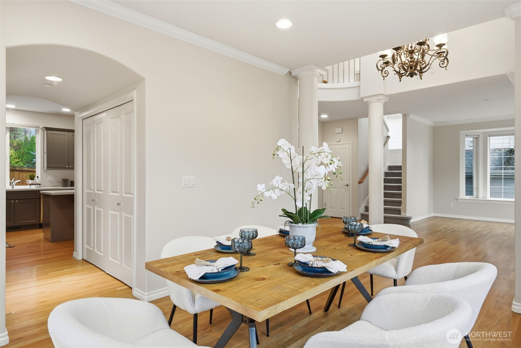 Rare southern Finn Hill opportunity—moments from open meadows, estate homes, and scenic Lake Washington and Mount Rainier viewpoints. Tucked on a quiet cul-de-sac in Finn Hill’s most sought-after southern enclave, this exceptional 4-bedroom, 2.5-bath home offers ~2,570 sq ft of refined, light-filled living. Thoughtfully designed and impeccably maintained, it features warm hardwoods, abundant natural light, and elegant, well-proportioned interiors that balance everyday comfort with elevated style. The open-concept kitchen and family room with fireplace create a seamless space for both relaxed living and effortless entertaining, while expansive windows invite in natural light and frame serene territorial views. Upstairs, the primary suite is a peaceful retreat with spa-like ambiance and a peekaboo Lake Washington view. Additional bedrooms offer flexibility for guests, offices, or evolving lifestyle needs. Low-maintenance grounds provide privacy and ease, complemented by a two-car garage and ample storage. A rare opportunity for expansion awaits below, where a substantial unfinished lower level offers exceptional potential to create additional living space tailored to your vision, unlocking meaningful long-term value. Located in one of Kirkland’s most desirable neighborhoods, this home delivers the feel of nearby estate living in a more efficient, livable footprint—just minutes from parks, beaches, top-rated schools, and Eastside tech hubs.