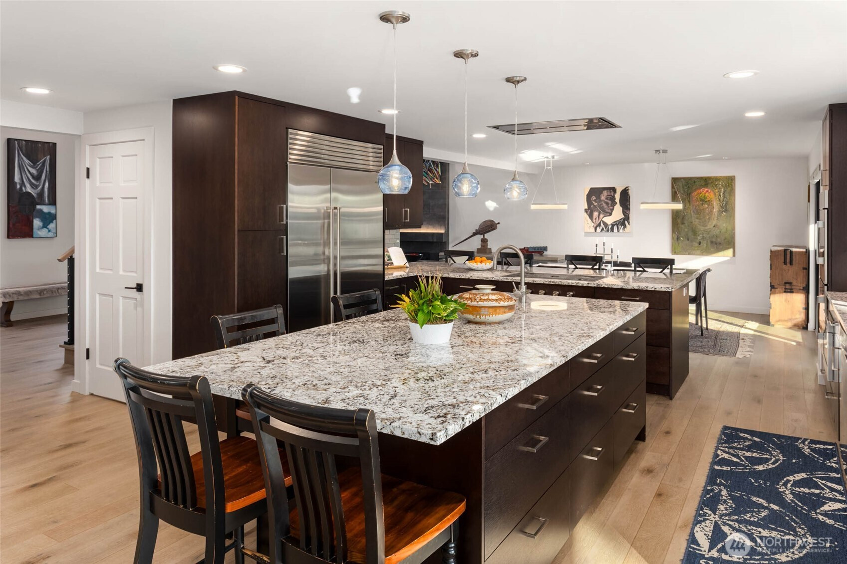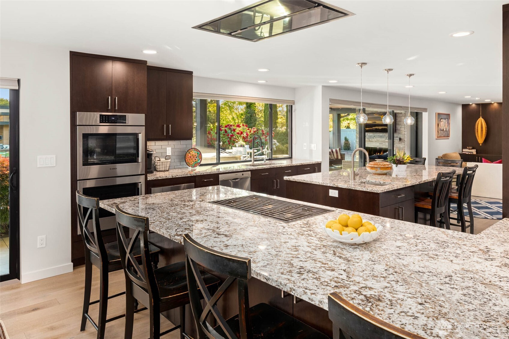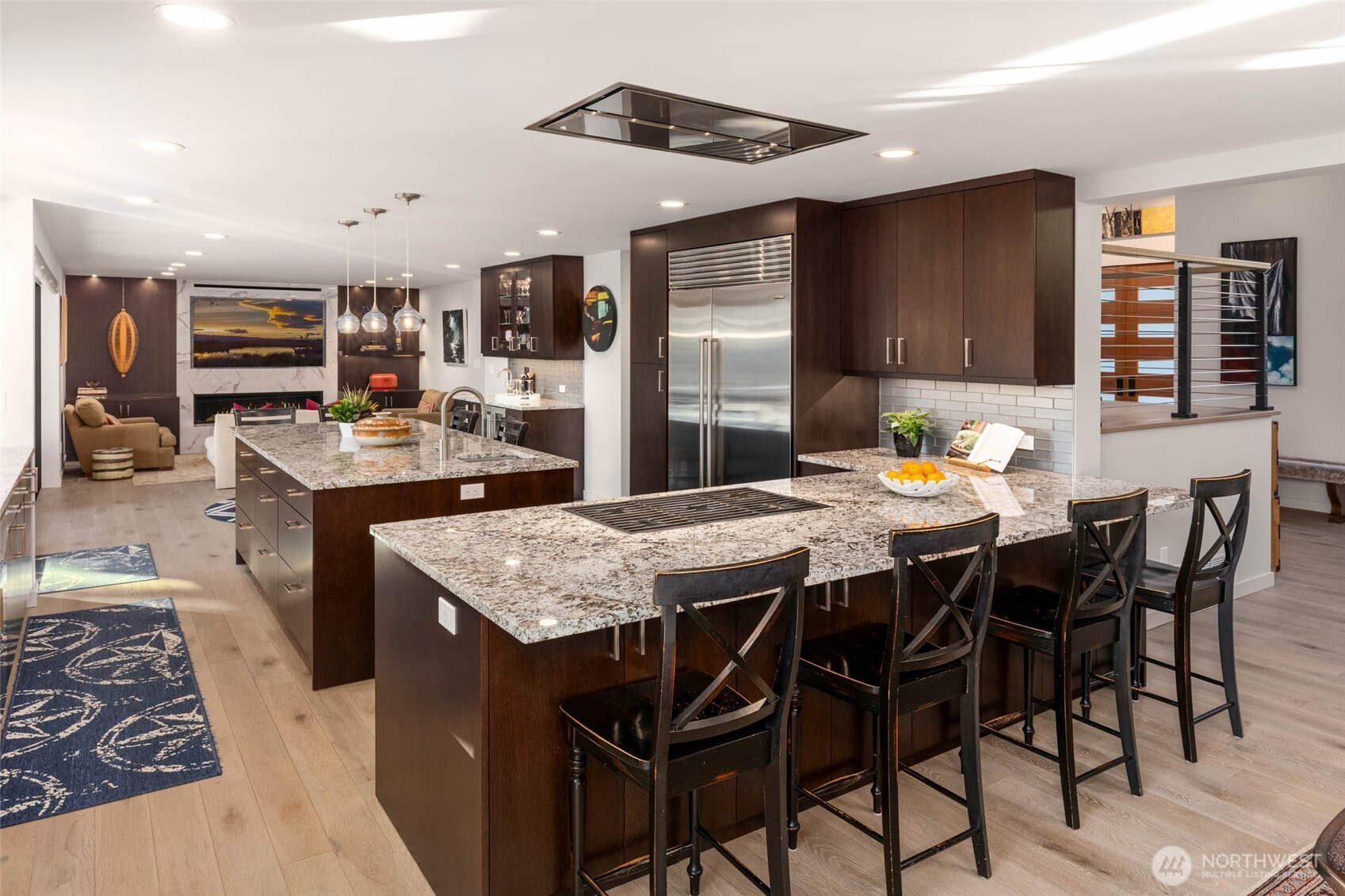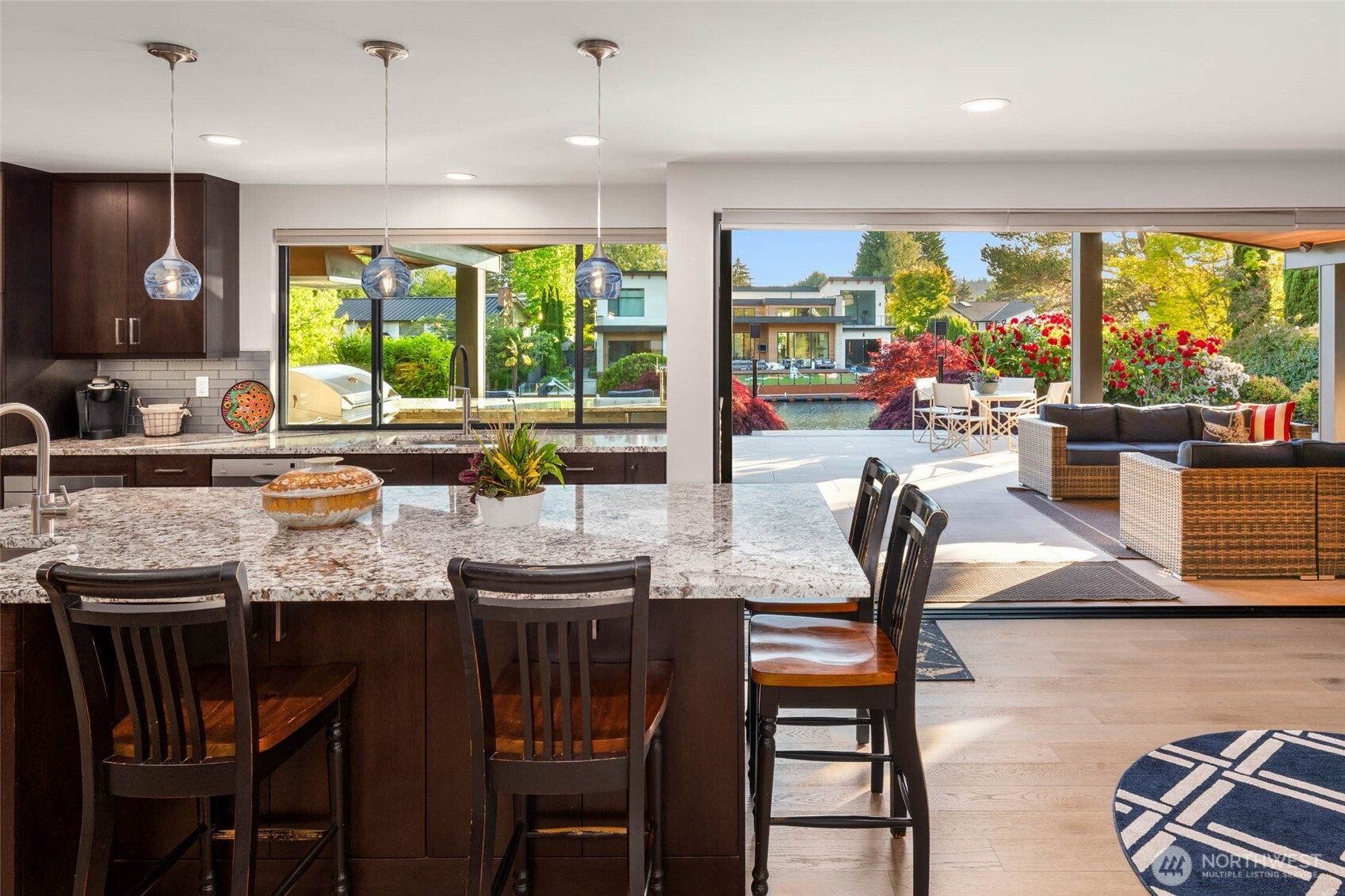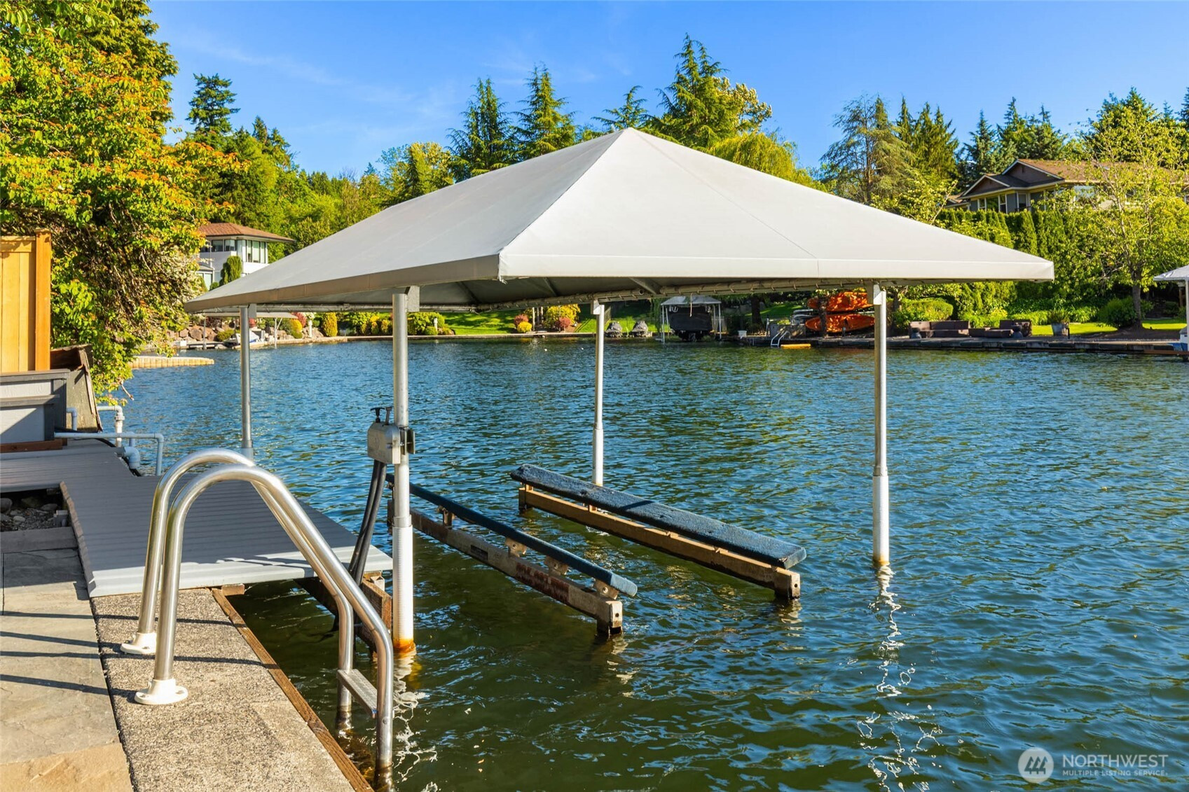 An exceptional opportunity to own a premier canal-front residence in the highly coveted Newport Shores community, offering protected deep-water moorage and an unparalleled connection to waterfront living with direct access to Lake Washington. Perfectly positioned with sought-after southwest exposure, this home captures abundant natural light. Thoughtfully designed to blend modern sophistication with effortless comfort, the residence showcases refined interiors, clean architectural lines, and timeless, high-quality finishes throughout. The 15’ LaCantina multi-slide door frame tranquil water views, while open-concept living spaces create a seamless transition between indoor and outdoor environments. The main living areas are designed for both elevated entertaining and everyday living, flowing gracefully to an impressive outdoor retreat at the water’s edge. Here, a covered living space features a built-in kitchen and fireplace—ideal for year-round enjoyment—whether hosting gatherings or relaxing in a peaceful, waterfront setting. With direct canal access, enjoy a true boating lifestyle from your private dock with deep-water moorage—perfect for morning paddles, afternoon cruising, or evenings spent arriving by boat to nearby dining. Every element of this home has been curated to deliver a balance of luxury, functionality, and connection to its natural surroundings—offering a rare opportunity to experience one of the Eastside’s most desirable waterfront communities.