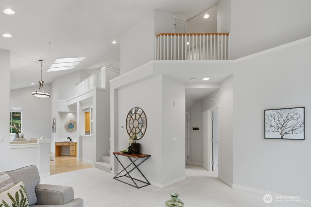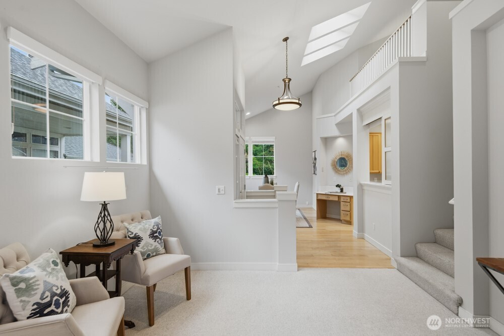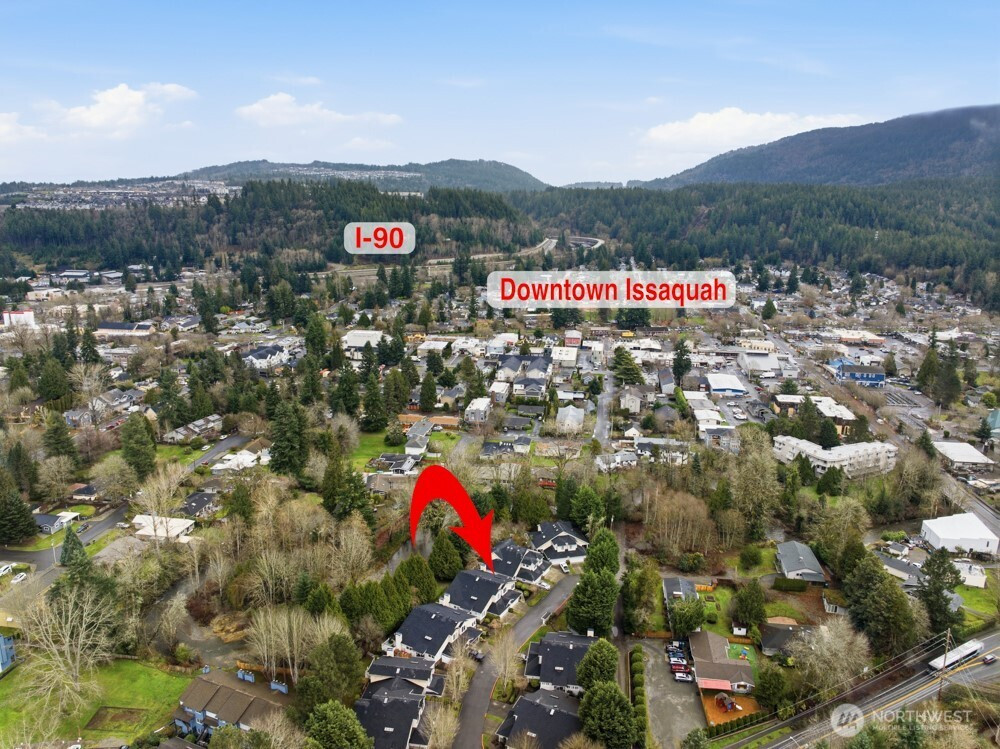 Perfectly Private & Bright with peaceful views & sounds of Issaquah Creek! This spacious & lovingly maintained 1,859 SF, 3 Bedrm/2.25 Bath TH features vaulted ceilings, an open floor plan & skylights that bring warmth to every corner. Privacy & views from an en-suite primary on the main with dual closets & from a bright living room that opens to a peaceful patio & lawn where you can relax while watching the salmon run. Upstairs, there's a spacious loft area & 2 more bedrooms with walk-in closets. Newer roof, A/C & furnace for yr-round comfort & the convenience of a roomy 2-car garage. Coho Run is GATED living at its best in the heart of downtown Issaquah. Enjoy the peace of a well-kept community w/easy urban access and a tranquil backdrop!