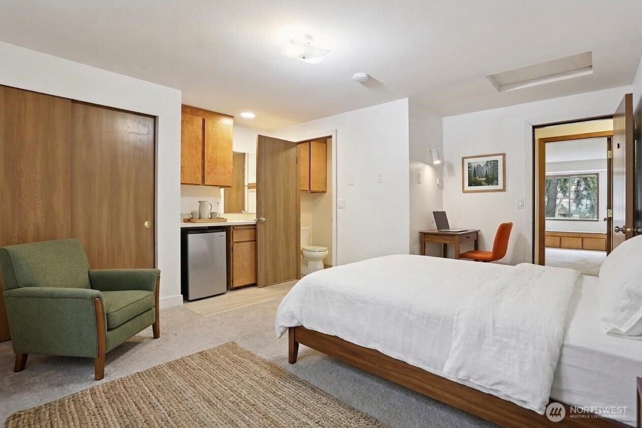 Unprecedented cash flow potential in the heart of Kirkland's booming Rose Hill! Located on a cul-de-sac, this solidly built custom property offers an incredibly versatile layout. The expansive floorplan features a bright 2140 sqft main floor with 2-bed+bonus room; four independent 250 sqft ensuite studios upstairs; and a 900 sqft 2-bed basement apartment ADU built new in 2021. This is the ultimate 'house-hack' - live comfortably on the large main floor while the upper and lower units subsidize your mortgage, use it for multi-generational living, or maximize cash flow as a fully rented investment. In addition to the 2-car lofted garage, 5 additional off-street parking spots can easily accommodate multiple occupants. Seller is a licensed real estate broker in Washington. Photos have been virtually staged. Features recently updated hard flooring, custom solid wood kitchen cabinets with sliding drawer pantry in the main, walk-in primary closets, and ample storage throughout the house. Perfectly positioned near the upcoming Sound Transit Stride BRT station (I-405 Exit 18) and Kirkland's newly rezoned Station Area, poised for massive high-tech and commercial growth. Moments to Costco, dining, parks, and award-winning Lake Washington schools. Massive long-term upside in a prime location.