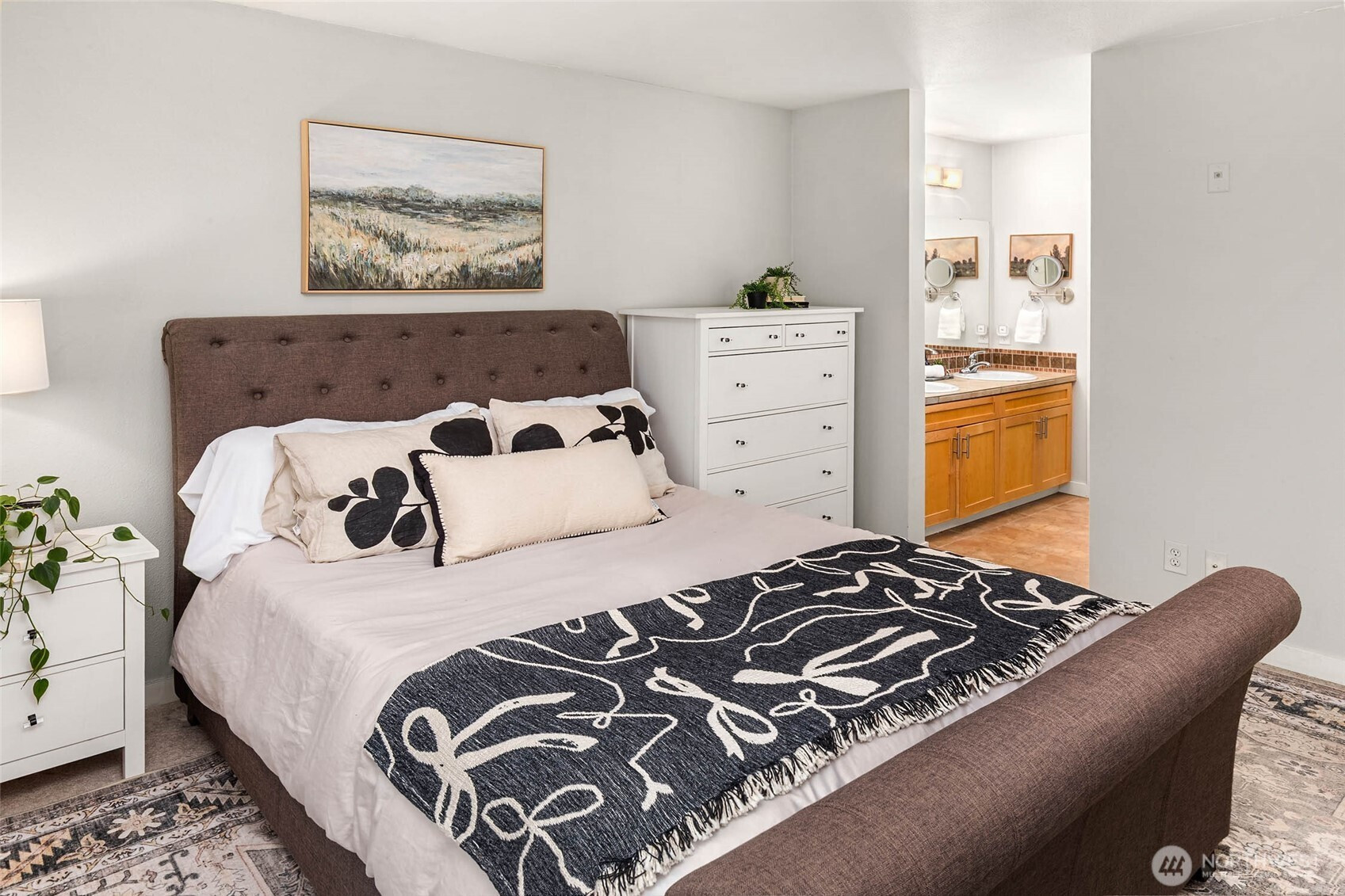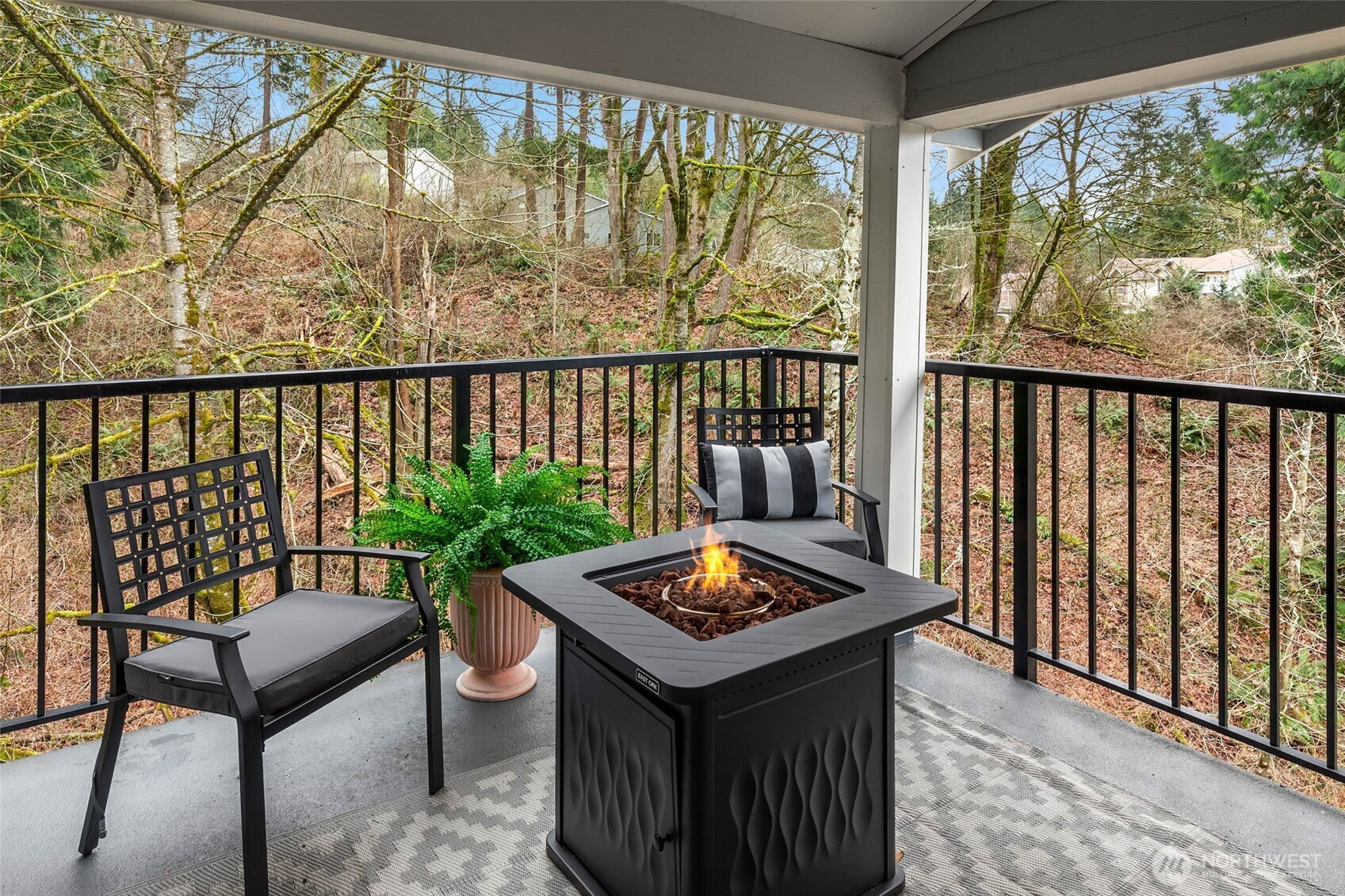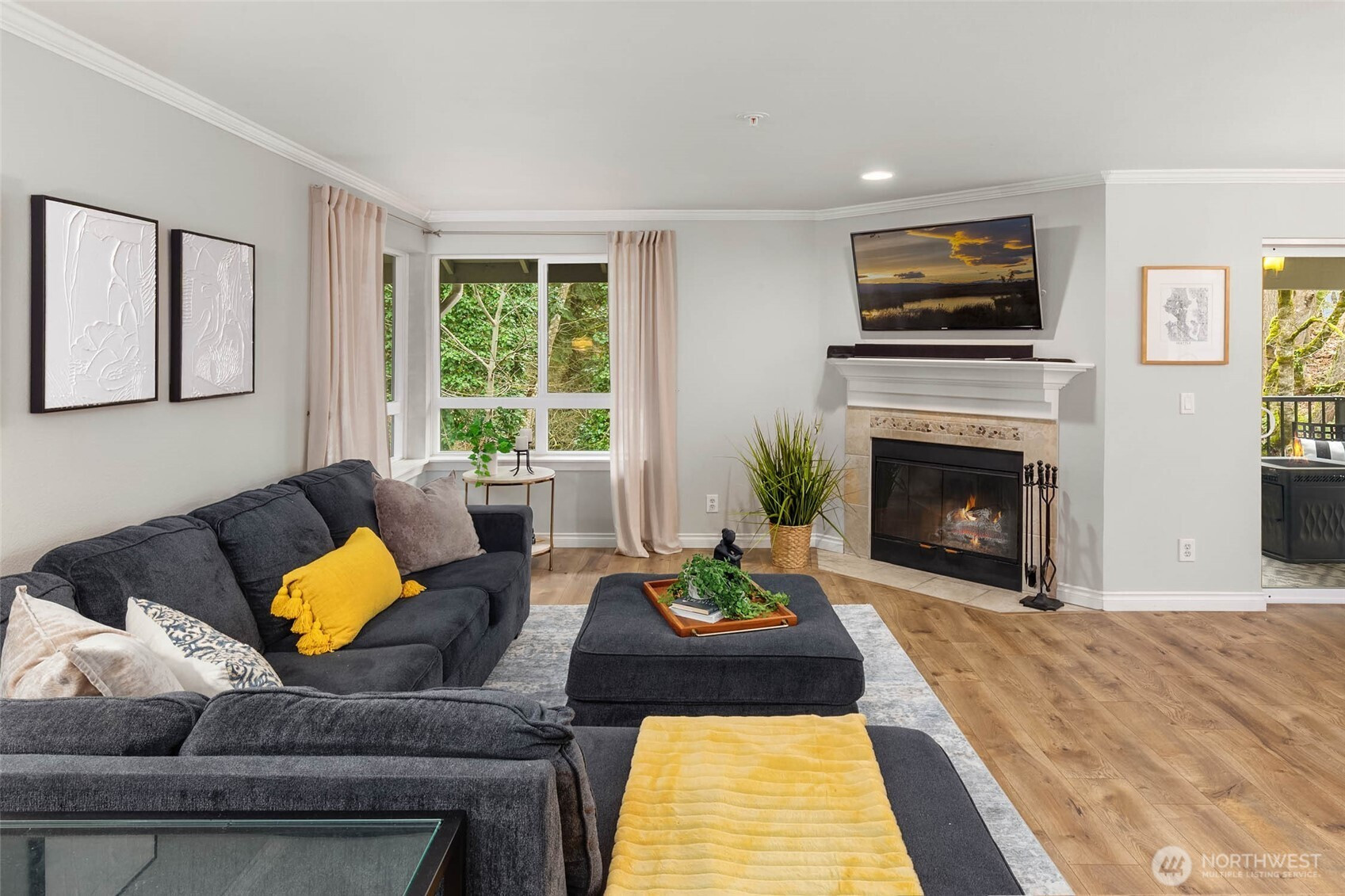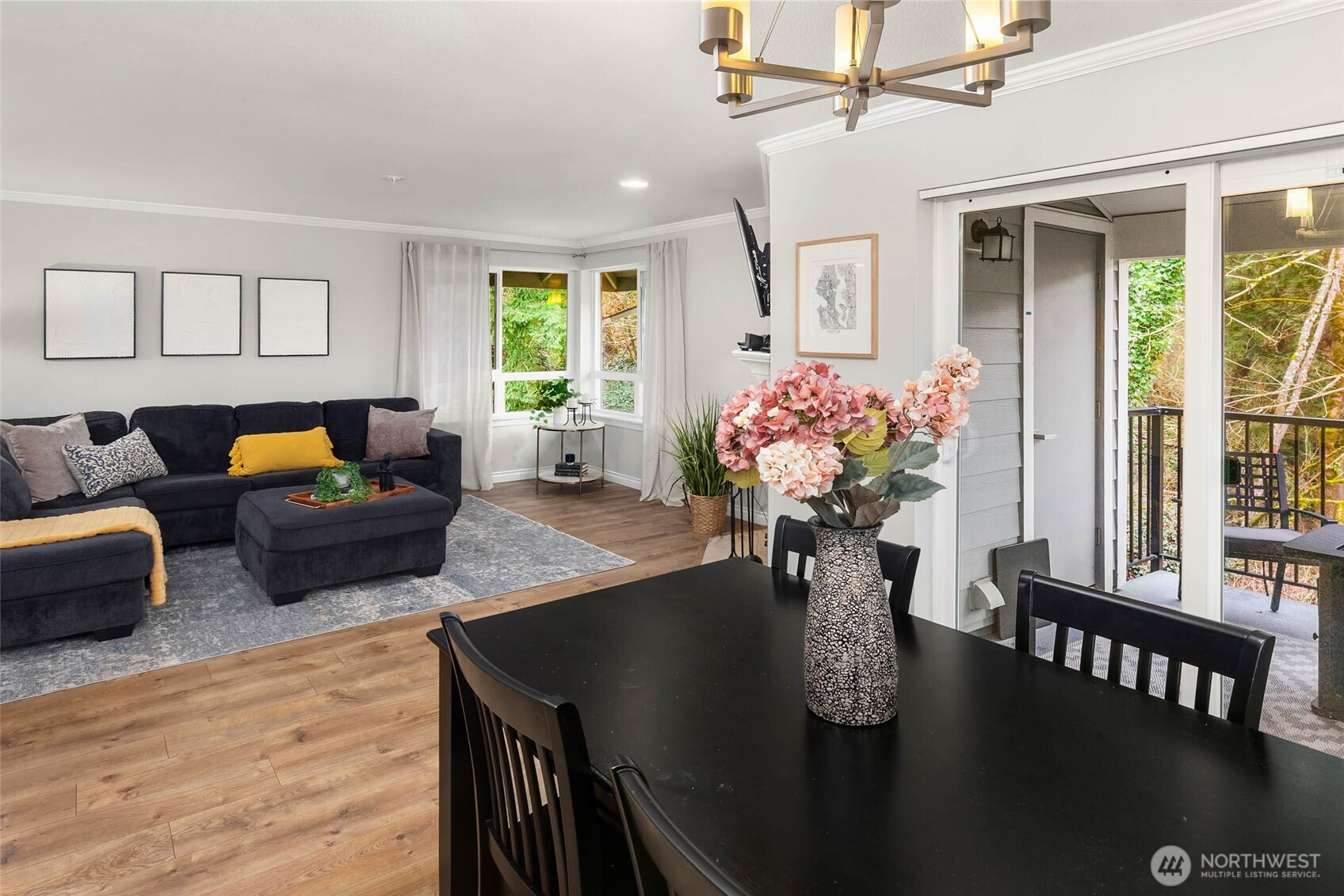 Top-floor corner unit condo in Bothell's highly desirable Northshore School District! No rental cap! This beautifully updated 2-bedroom home offers privacy, natural light, & an ideal open-concept floorplan.Enjoy west-facing territorial views & vibrant sunsets from the oversized front balcony - perfect for dining al fresco. A second covered patio backs to a protected greenbelt, delivering rare serenity, bird-song mornings, & year-round privacy. Interior features include hardwood floors, crown molding, granite slab countertops, & stainless steel appliances. The spacious kitchen shines with ample cabinet storage, generous counter space, pantry-style organization, & a large eat-up bar for entertaining. Bright living & dining areas are wrapped in windows for abundant natural light. Smart split-bedroom layout with bedrooms on opposite sides for maximum privacy - ideal for guests, work-from-home office, or roommate flexibility. Extra storage throughout plus your own private 1-car garage. Resort-style community amenities include a full fitness center, outdoor pool, & hot tub. Prime commuter location near I-405 and SR-522 with easy access to downtown Bothell, Woodinville, Kirkland, & Redmond, plus shopping, dining, & parks. Move-in ready Bothell condo with luxury finishes, dual patios, sunset views, greenbelt setting, unbeatable convenience. Low-maintenance living with great storage, greenbelt privacy, a sunset balcony, & tons of guest parking makes this Bothell condo a standout.