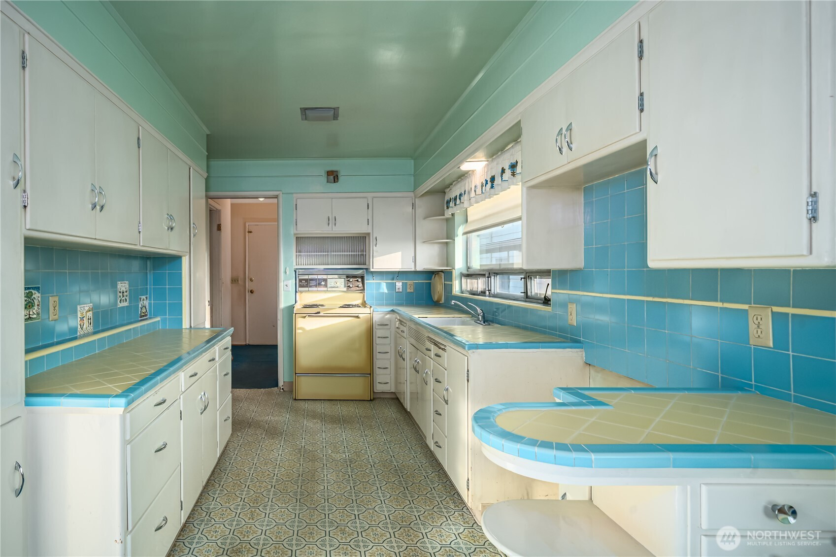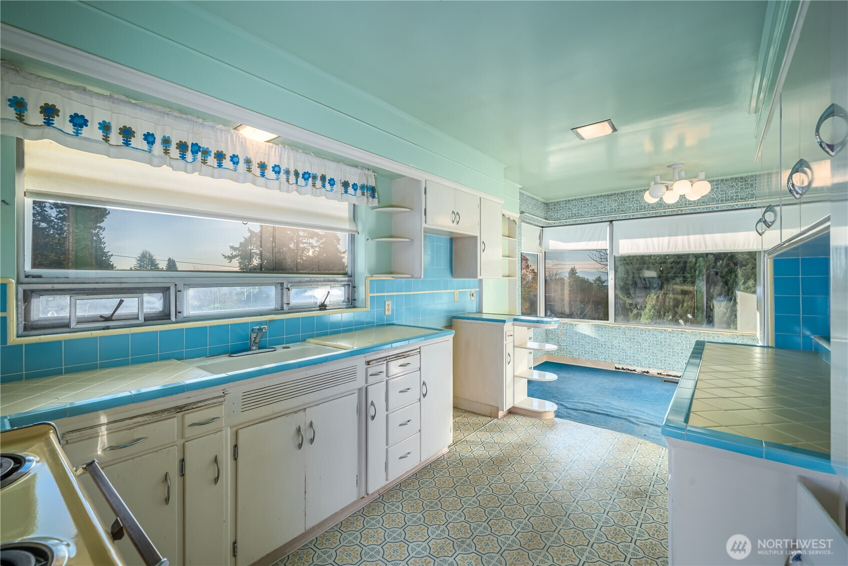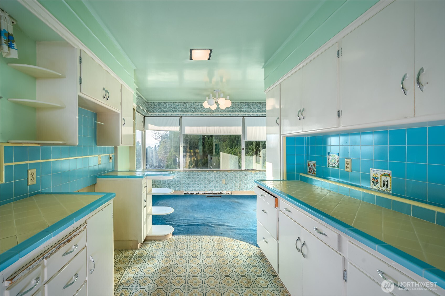 Presenting a large Mid-Century Modern home on a lovely lot in Broadview! Mostly in original condition, the home needs bathroom, kitchen, & lower level renovations. It's structurally sound w/ a strong foundation, framing, roof & siding. The excellent design positions the large living room, dining room, primary bedroom & deck towards the light & privacy of the backyard. Red Oak floors, large windows, beautiful original tile, & the attached two car garage complete the main level. Great ceiling height in the basement, 4th bedroom & 2nd kitchen potential, & separate entrances are optimal to create an ADU/MIL. Adding a 2nd story offers Mountain & Sound view potential. Easy access to retail, schools, & Carkeek Park complete this rare opportunity!