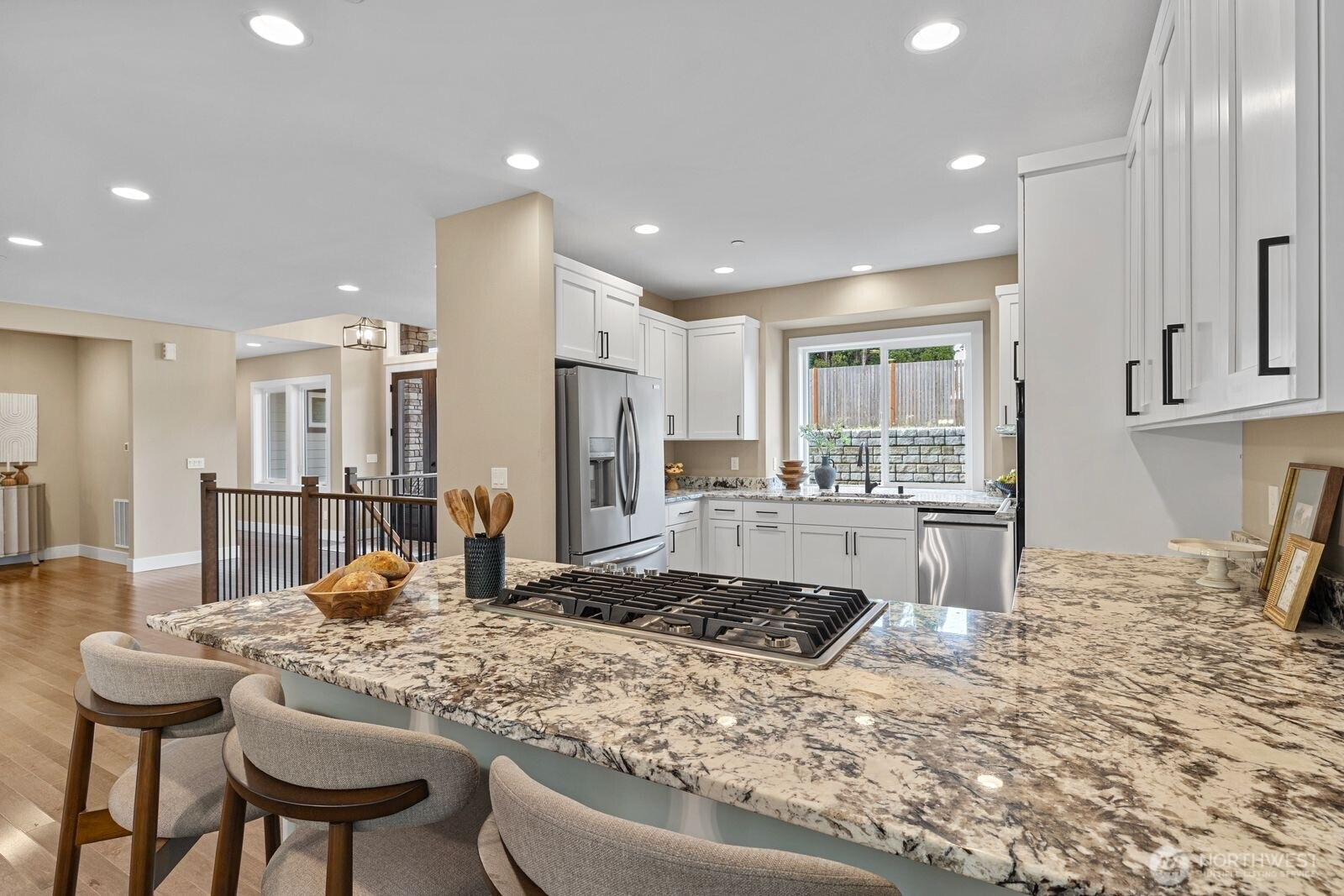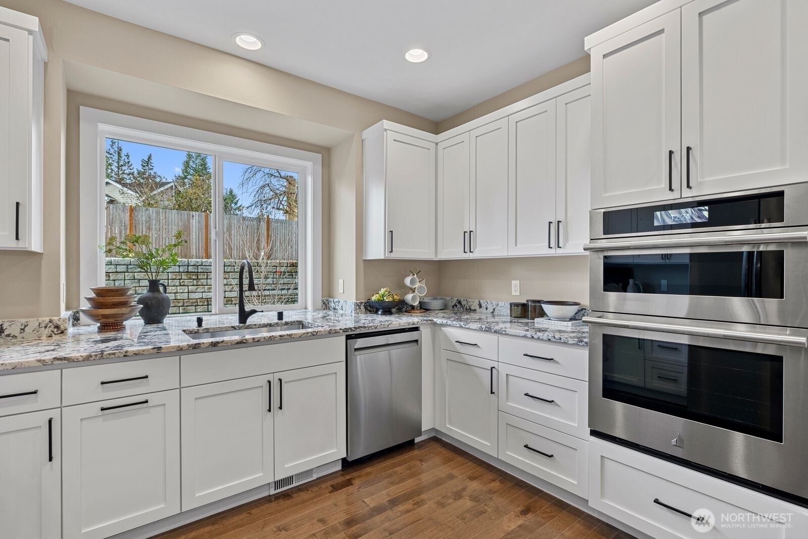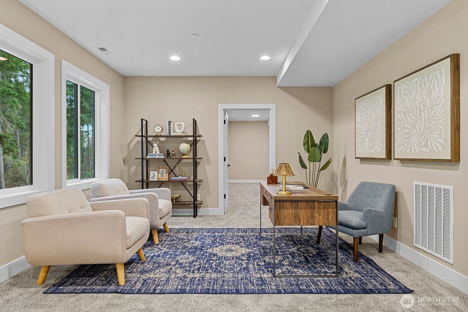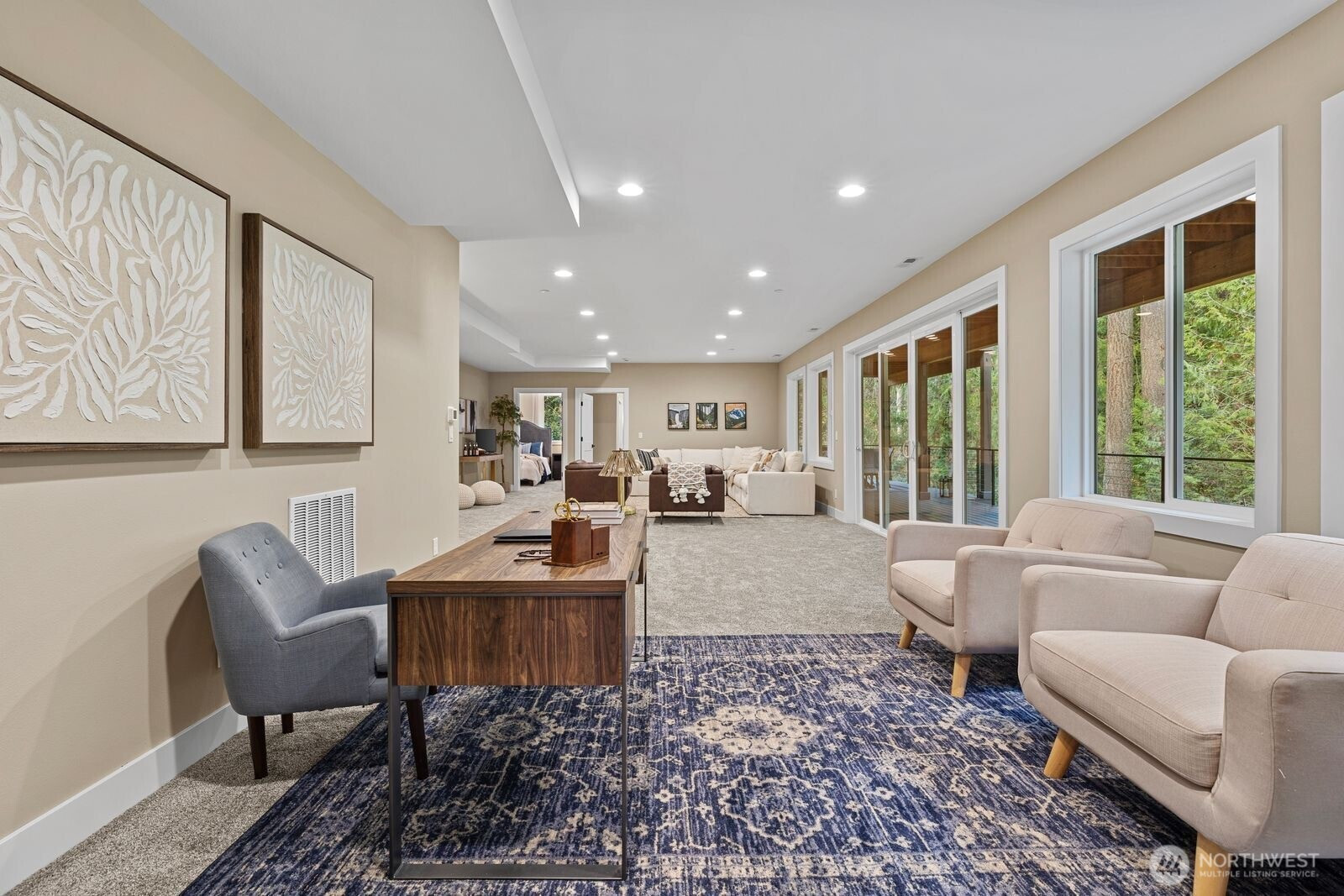 A striking blend of luxury and nature, this Newcastle retreat rests on 2.16 acres of pristine, protected forest. Expansive windows frame the landscape while hardwood floors and designer finishes enhance the main living spaces. Oversized sliders in the living & dining areas open to a covered deck w/ sweeping wooded views—an unforgettable backdrop for everyday living. The primary suite indulges w/ a spa-inspired bath & generous walk-in closet. The lower level features a massive bonus room w/ the option to add a wall to create a 4th bedroom w/ a walk-in closet. Granite counters, SS appliances, custom cabinetry, RV parking, low-maintenance landscaping, & a private drive complete this rare offering just minutes from Bellevue, Seattle, & Sea-Tac.